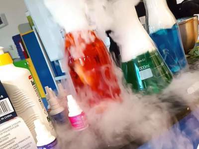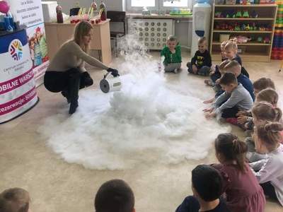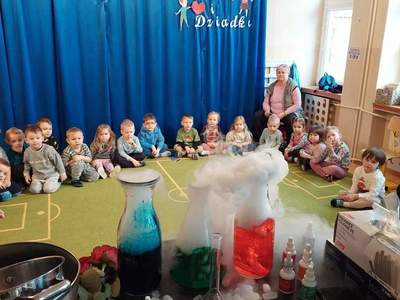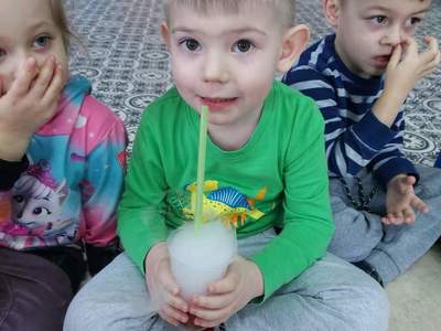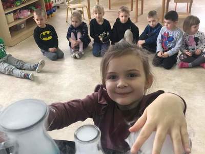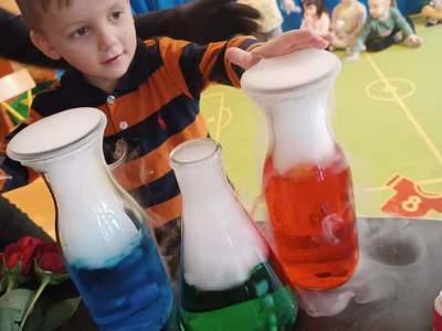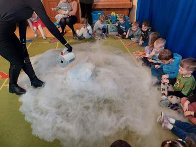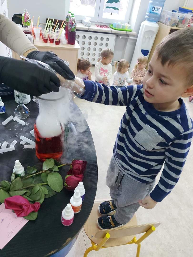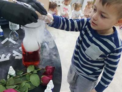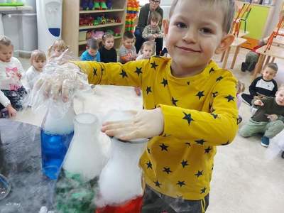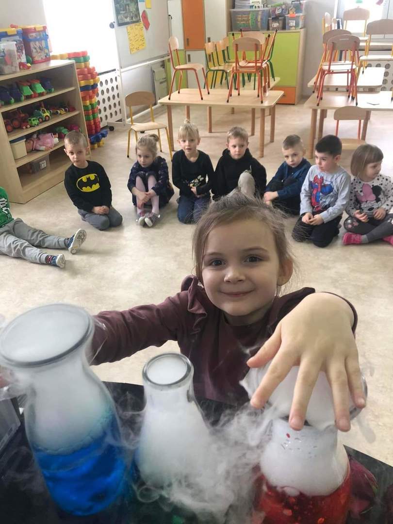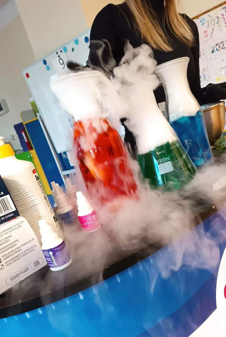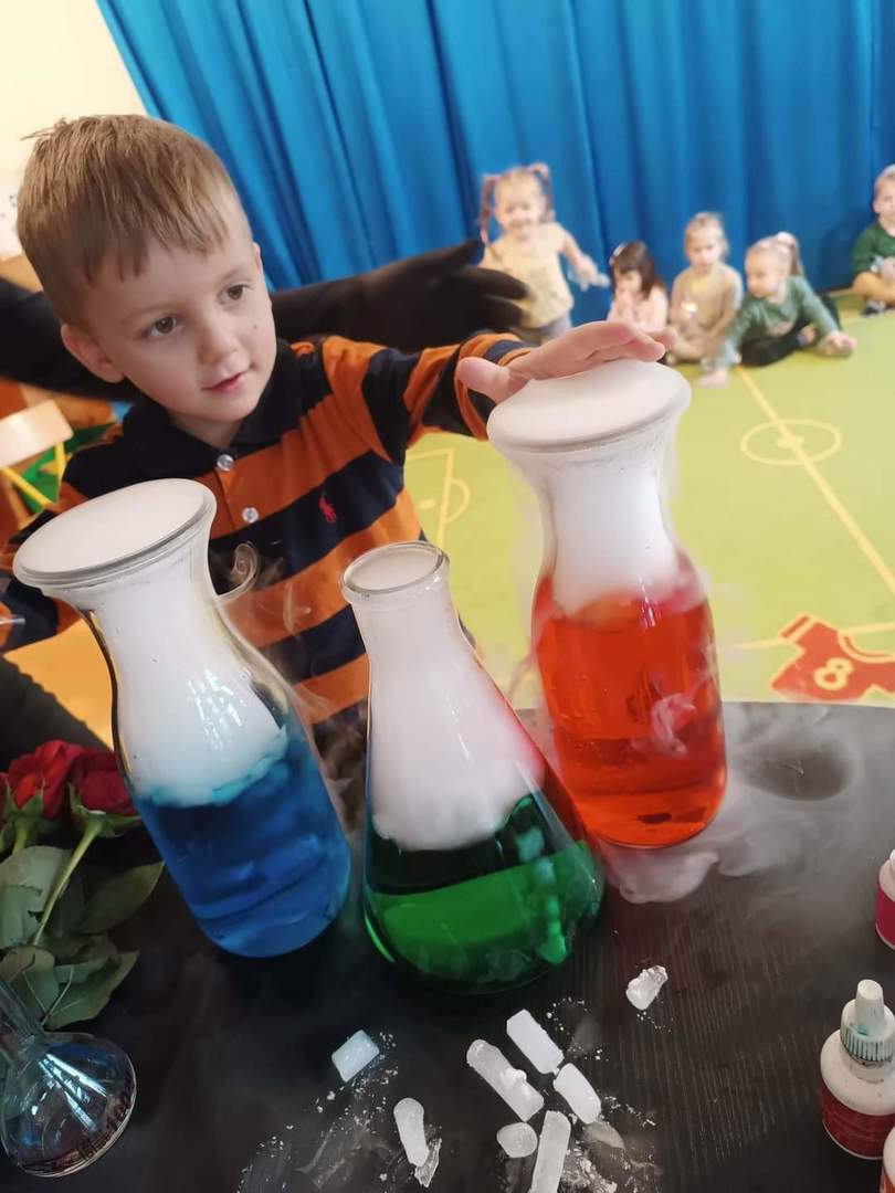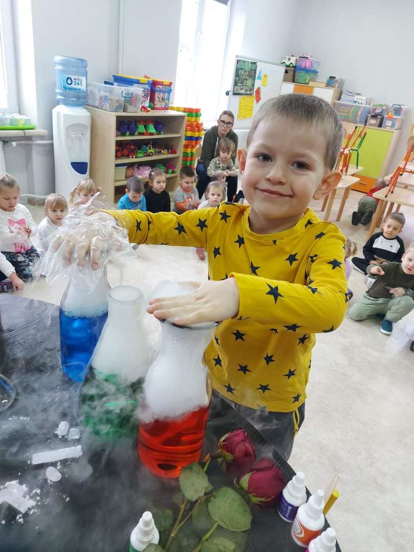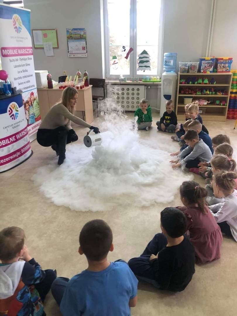 Warsztaty "Suchy Lód - Dymiące Show" 🥼🥽🧪⚗ W tamtym tygodniu Nasze przedszkolaki brały udział w bardzo ciekawych warsztatach, dotyczących suchego lodu. Przedszkolaki dowiedziały się m.in.: ✅ co to jest suchy lód ✅ jaka jest jego temperatura ✅ czy może się on topić jak prawdziwy lód Następnie dzieci uczestniczyły w eksperymentach, wykorzystując suchy lód, barwniki, wodę o różnych temperaturach, płyn do naczyń, róże, sok itd. Dzieci były bardzo zaciekawione wydobywaj