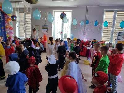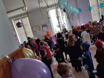Atrakcji ciąg dalszy... Bale Karnawałowe 🥳😁🕺💃 W czwartek i w piątek w naszym przedszkolu odbyły się dwa fantastyczne bale karnawałowe. Jeden z nich był w Stylu Disco🎊🎵🎈🤹♀️, natomiast drugi zapraszał do Krainy Lodu❄⛄❄ Dzieci zachwyciły nas wspaniałymi strojami, a uśmiechy nie schodziły im z twarzy 😊 To chyba były najbardziej wyczekiwane dni przez naszych przedszkolaków 😁 Na balach nie zabrakło konkursów i zabaw tanecznych, co świetnie zintegrowało