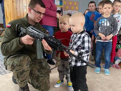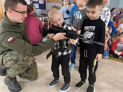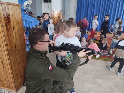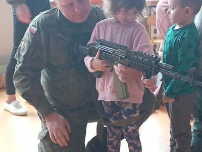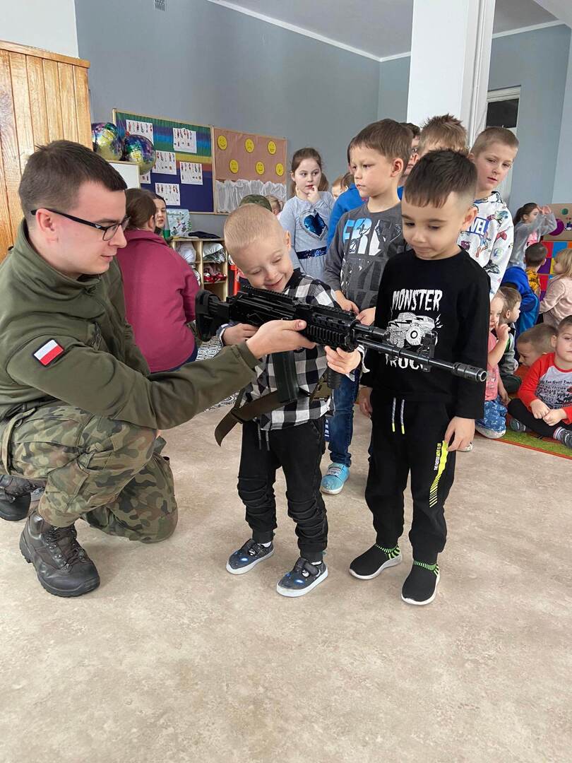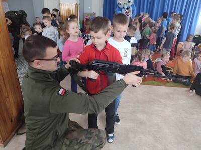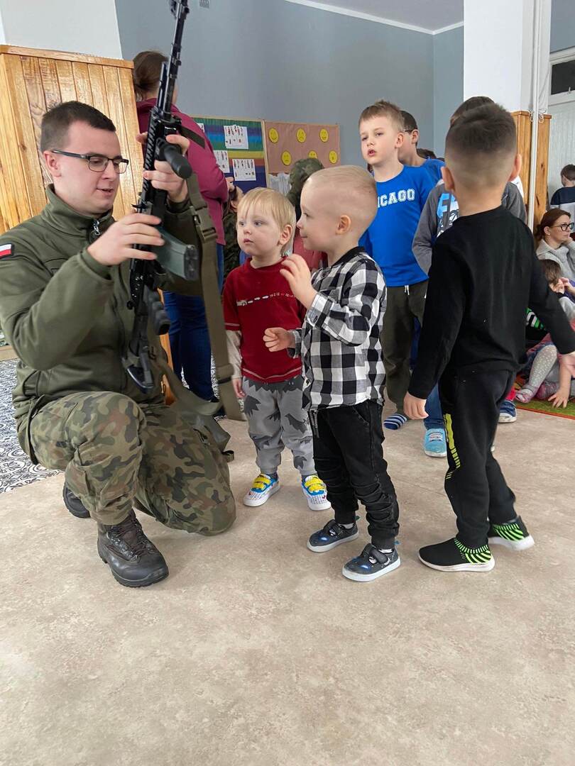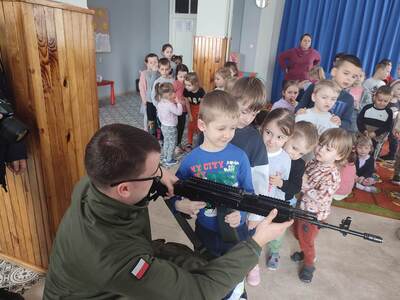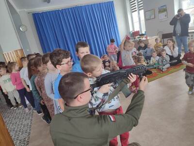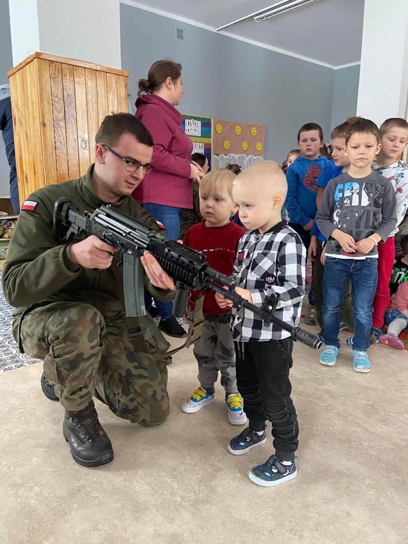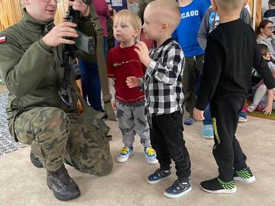 W naszym przedszkolu odwiedzili nas żołnierze z Centrum Rozpoznania i Wsparcia Walki Radioelektronicznej im. gen. bryg. Jana Kowalewskiego Nasi goście w bardzo ciekawy sposób opowiedzieli naszym podopiecznym, na czym polega ich praca, czym zajmują się żołnierze oraz jak trudna i ważna jest ich służba dla Ojczyzny. Zaprezentowali także różne elementy umundurowania. Dzieci z ogromnym zaciekawieniem słuchały oraz zadawały wiele pytań.