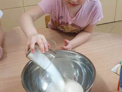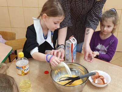 Dziś grupa ⭐5a Gwiazdeczki⭐ świętowali Dzień Muffinek😀, a ze świętą Wielkanocne za pasem nazwali je Babeczkami Wielkanocnymi, które można włożyć do koszyczka i poświęcić wraz z innymi produktami 😊 Dzieci własnoręcznie przeszły każdy etap przygotowania babeczek. Zabawy było co niemiara. Degustacja która nastąpiła po obiedzie była słodkim zwieńczeniem tego dnia 🥰🥧🍩