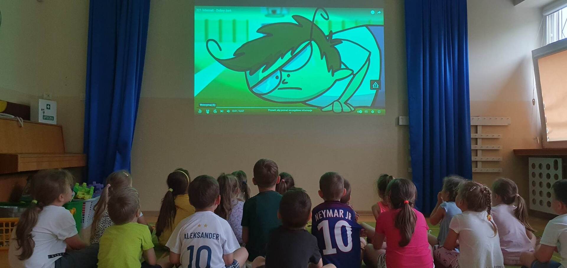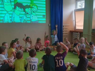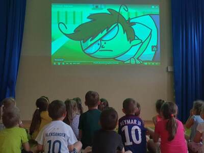 Dzisiaj dzieci z grupy Gwiazdki w ramach programu profilaktyktycznego "Bajkowa profilaktyka" obejrzały krótki film pt "321 Internet dobry żart". Po prezentacji filmu odbyła się rozmowa następnie dzieci próbowały nazywać emocje towarzyszące głównemu bohaterowi.