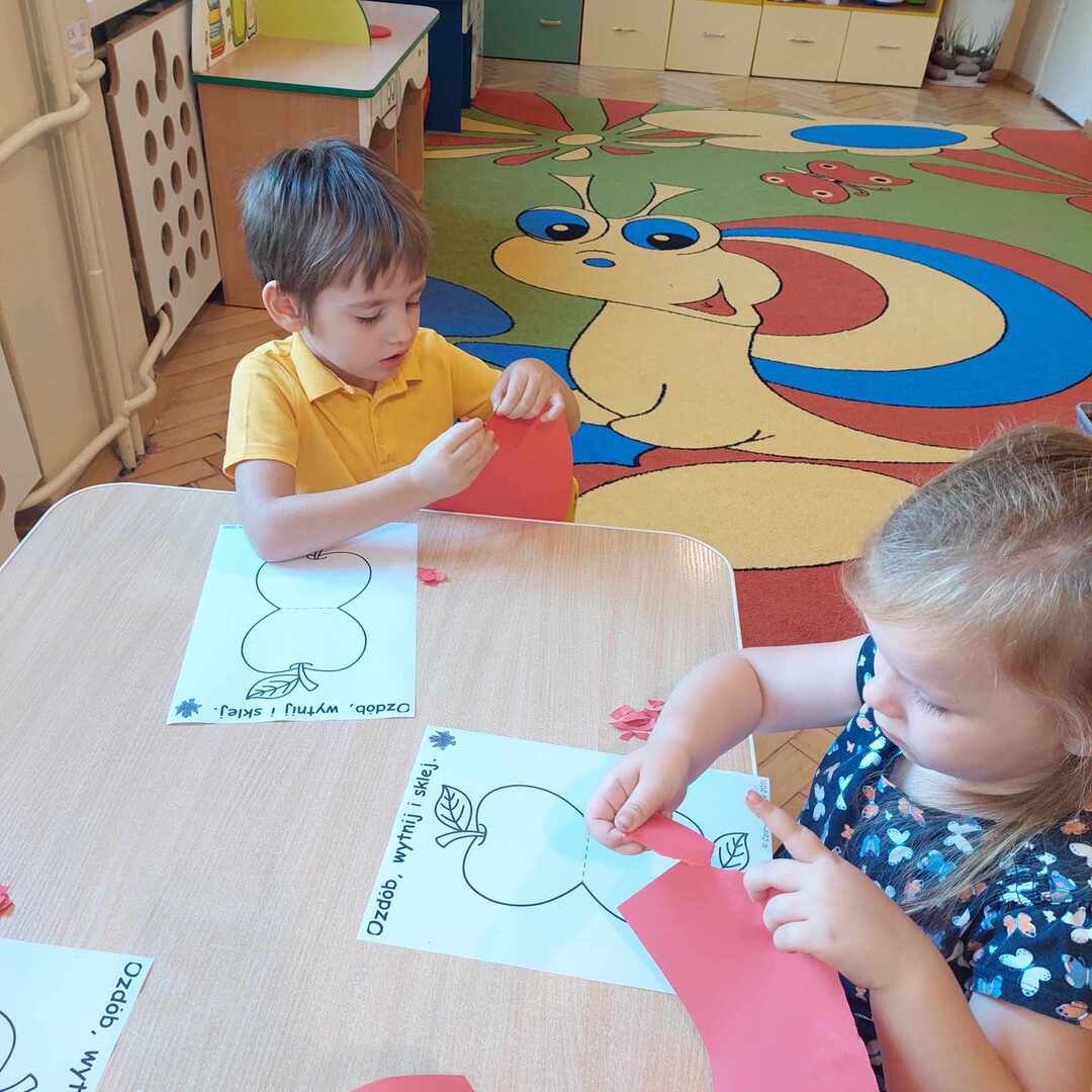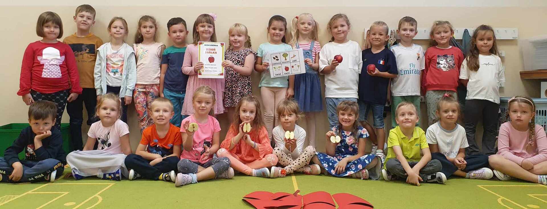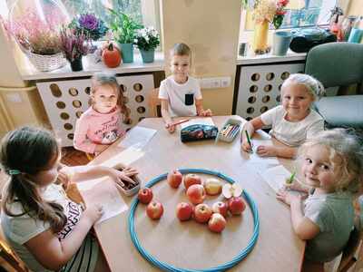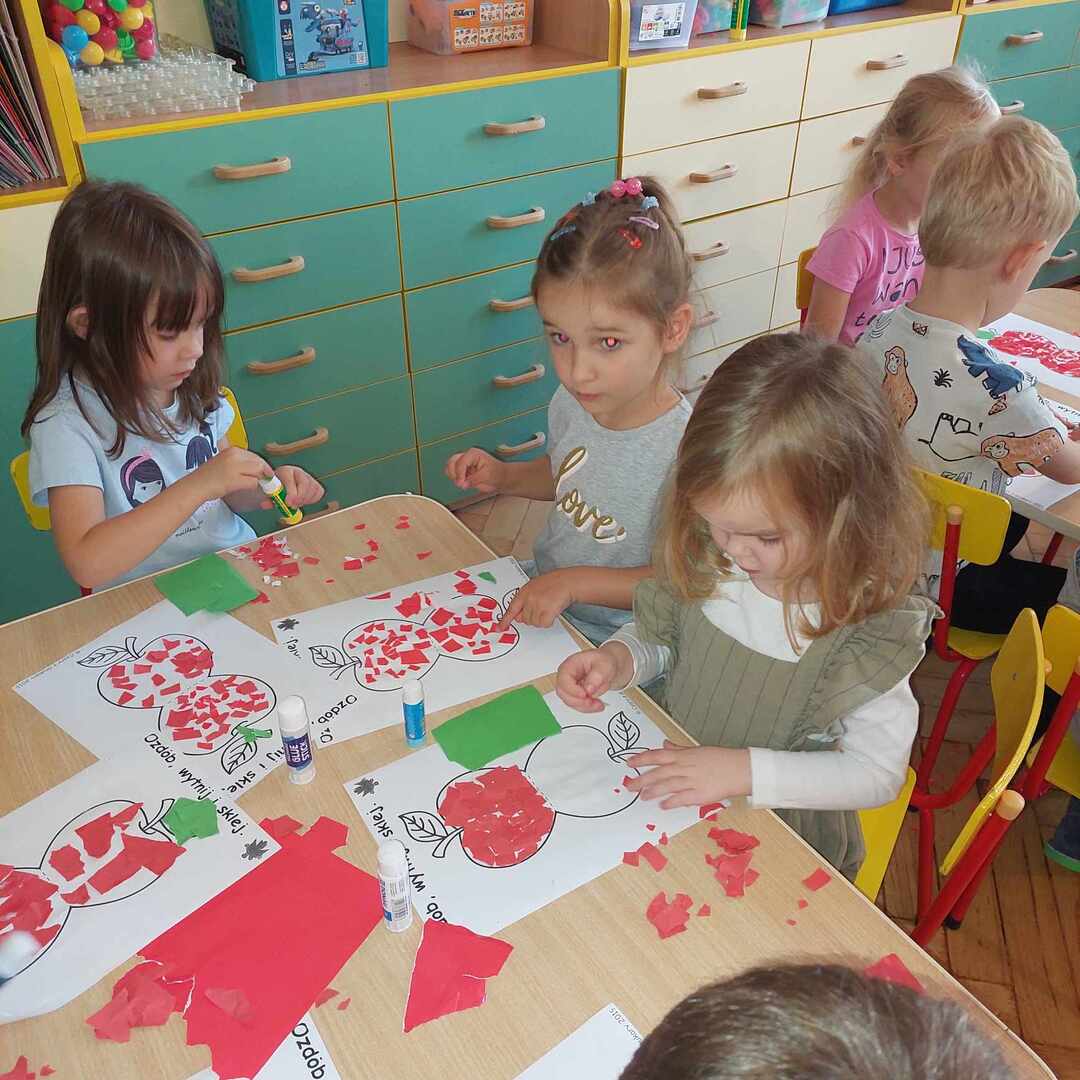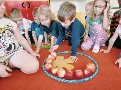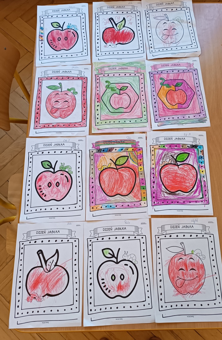 馃崕馃崗DZIE艃 JAB艁KA 馃崗馃崕 w naszym przedszkolu by艂 wyj膮tkowy - dzieci pozna艂y wiele ciekawostek na temat jab艂ek, rozpoznawa艂y kszta艂ty, kolory i smak, dowiedzia艂y si臋 jakie s膮 walory zdrowotne jab艂ek oraz wykona艂y prac臋 o tematyce jab艂ek. Grupa Poziomek zamieni艂a si臋 w ma艂ych kucharzy i upiek艂a ciasto z jab艂kami. 馃崗馃崕Nie zabrak艂o równie偶 ta艅ców, zagadek i dzia艂a艅 matematycznych.馃崕馃崗