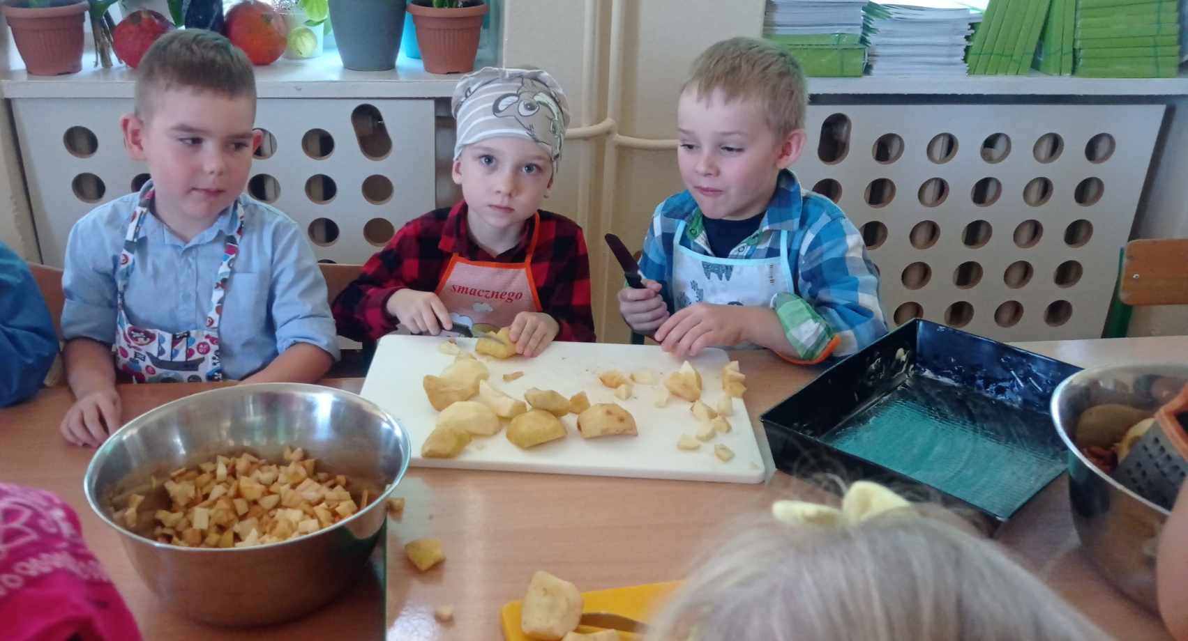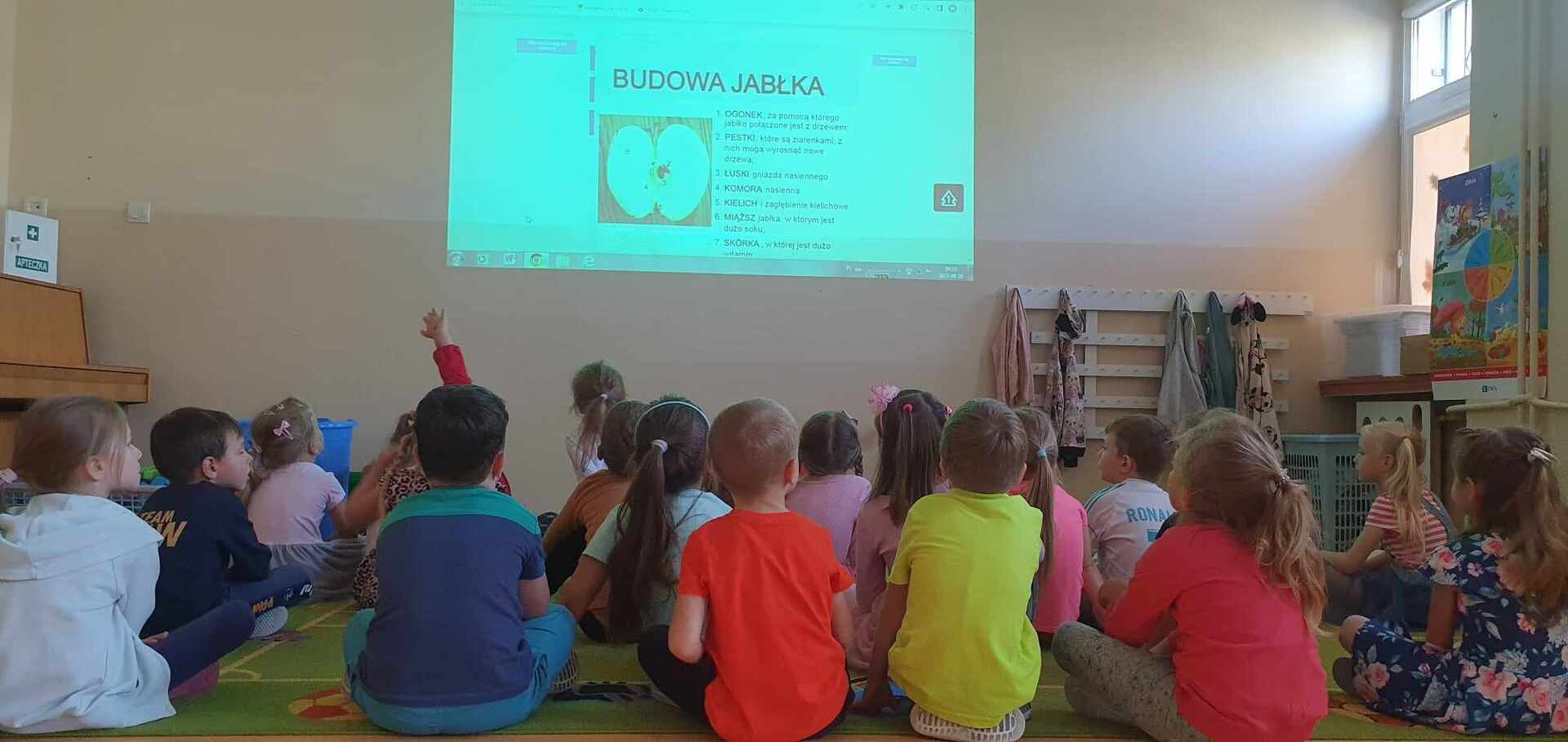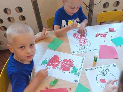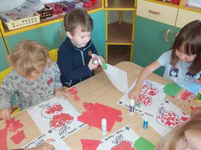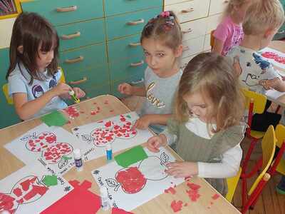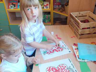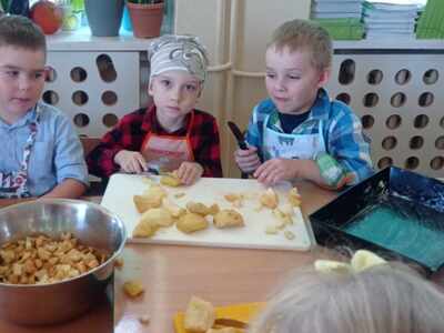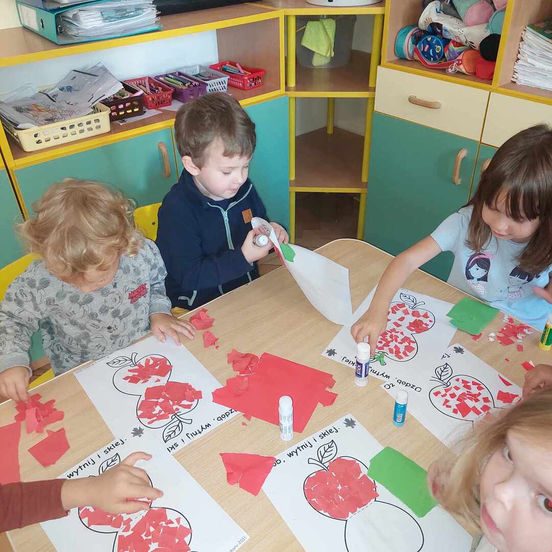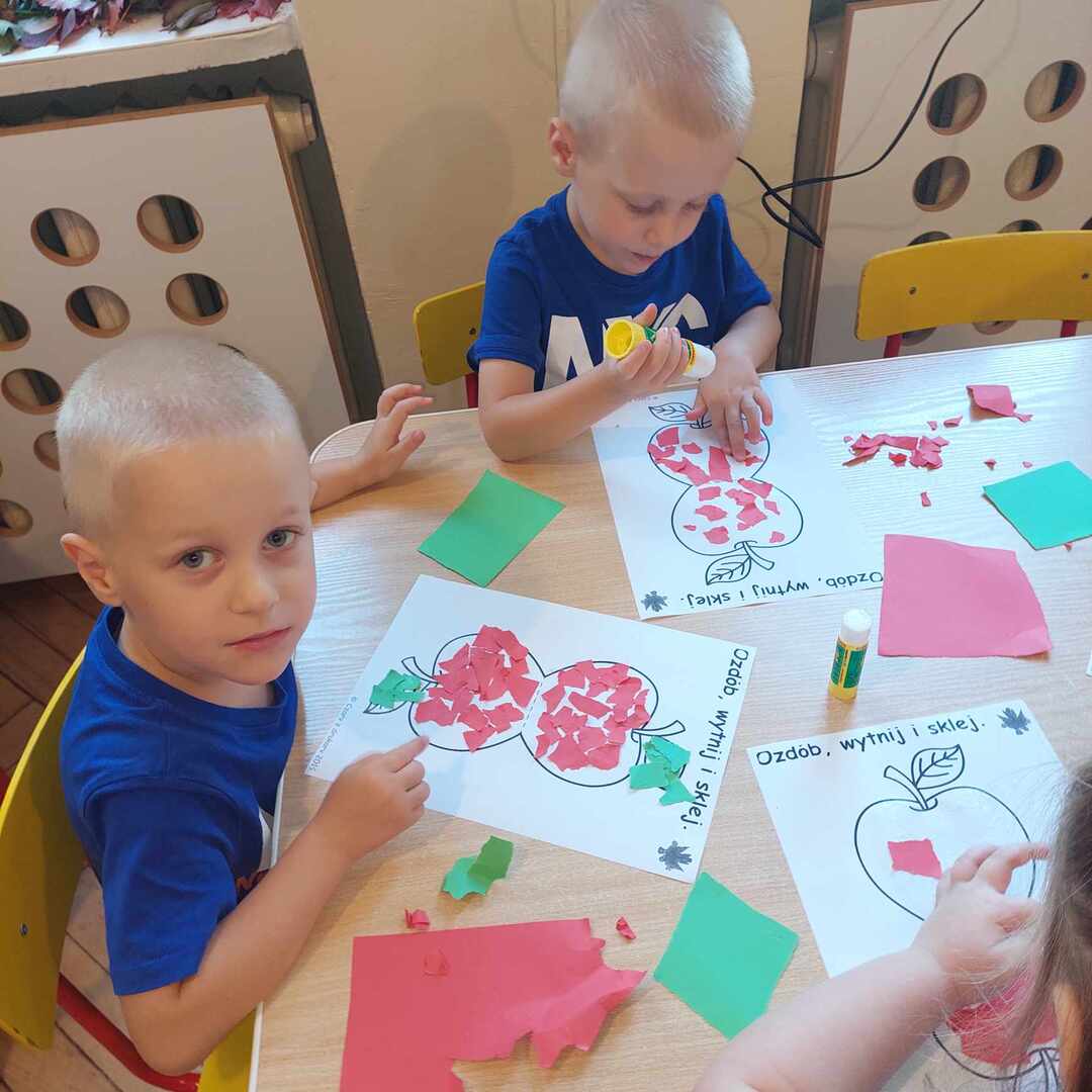 馃崕馃崗DZIE艃 JAB艁KA 馃崗馃崕 w naszym przedszkolu by艂 wyj膮tkowy - dzieci pozna艂y wiele ciekawostek na temat jab艂ek, rozpoznawa艂y kszta艂ty, kolory i smak, dowiedzia艂y si臋 jakie s膮 walory zdrowotne jab艂ek oraz wykona艂y prac臋 o tematyce jab艂ek. Grupa Poziomek zamieni艂a si臋 w ma艂ych kucharzy i upiek艂a ciasto z jab艂kami. 馃崗馃崕Nie zabrak艂o równie偶 ta艅ców, zagadek i dzia艂a艅 matematycznych.馃崕馃崗