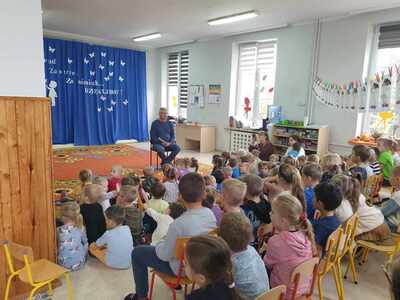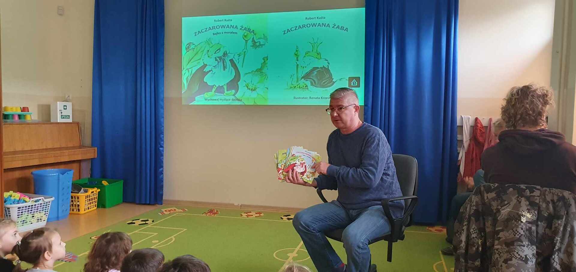 Dziś w przedszkolu gościł Pan Robert Kuśta radomski bajkopisarz, autor książeczek dla dzieci „Bajki z morałem”. Czytanie dzieciom bajek z morałem skłania je do myślenia. Treść bajek zachęca do zadawania pytań, na które dzieci same muszą sobie odpowiedzieć.