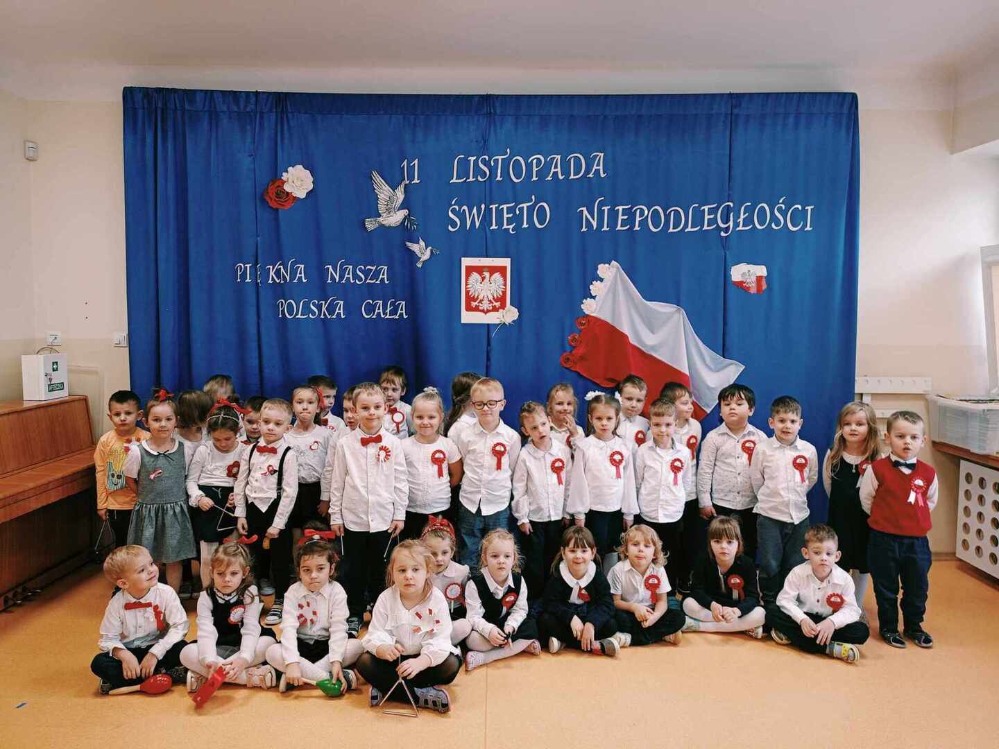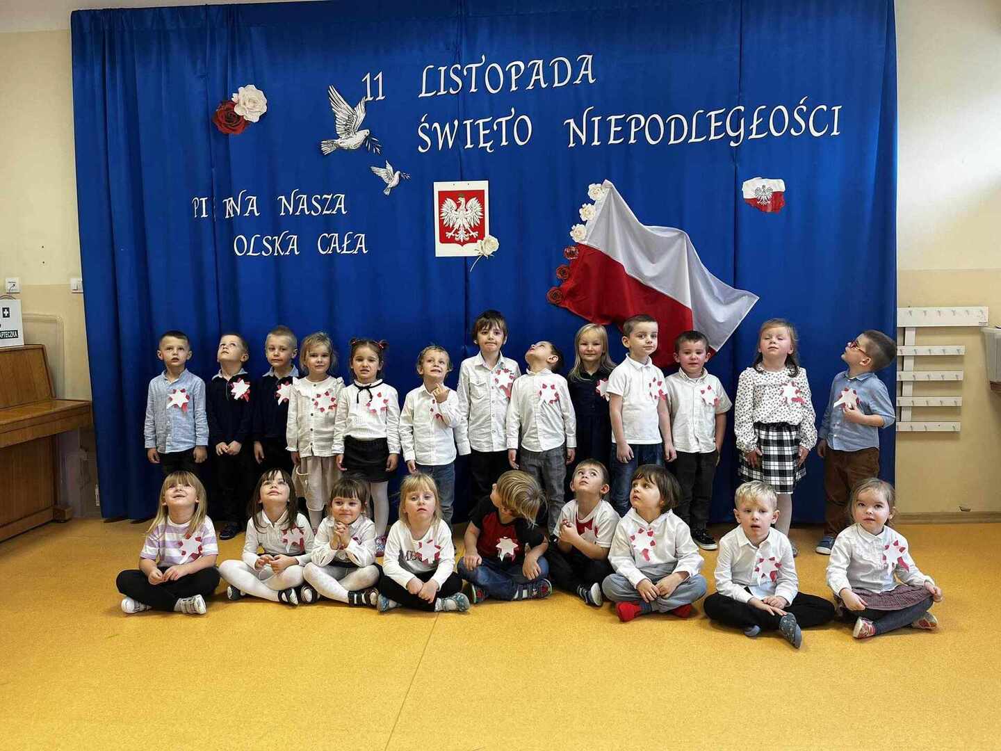 W przedszkolu od najmłodszych lat uczymy dzieci patriotyzmu, przywiązania do swojej Ojczyzny, do ziemi rodzinnej, wpajamy szacunek dla polskich symboli. Dlatego 10 listopada odbyła się uroczysta akademia z okazji Narodowego Święta Niepodległości. Wszystkie przedszkolaki w tym ważnym dniu wyglądały odświętnie i uroczyście.