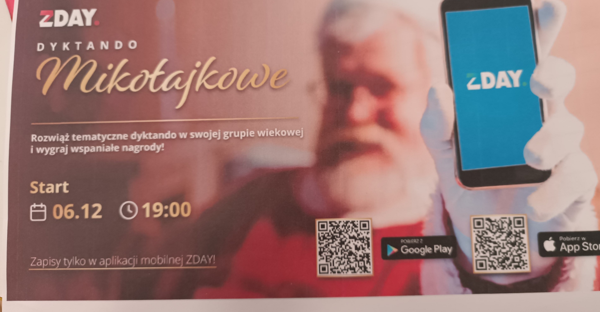 Ogłaszamy Mikołajki na Dyktanda.pl - dla małych i dużych entuzjastów poprawnej polszczyzny! Chcesz, żeby prezent trafił do Ciebie? Wystarczy 6 grudnia o godzinie 19:00 rozwiązać świąteczne dyktando w aplikacji ZDAY. Mikołaj pamięta o wszystkich i do udziału zaprasza zarówno Nauczycieli oraz Rodziców! Podobno w worku z prezentami kryją się książki z autografem autora i atrakcyjne gadżety!