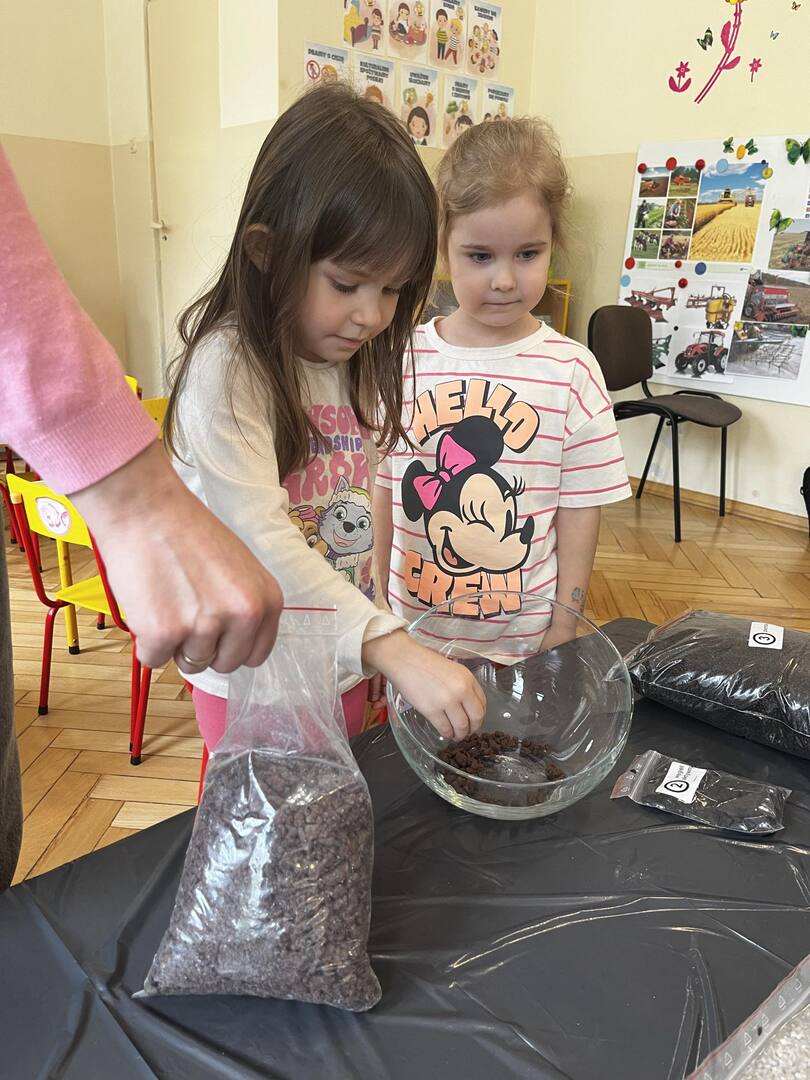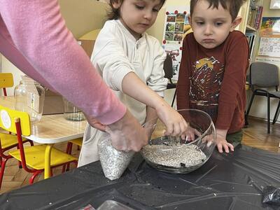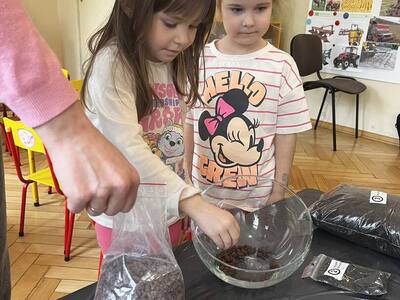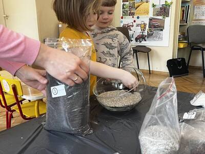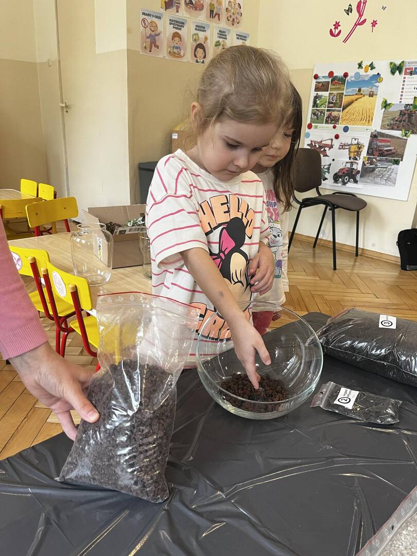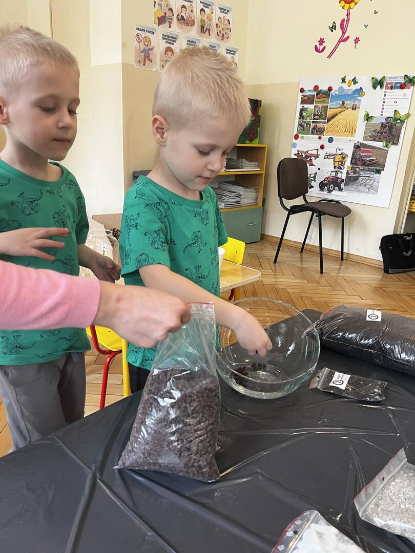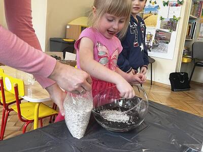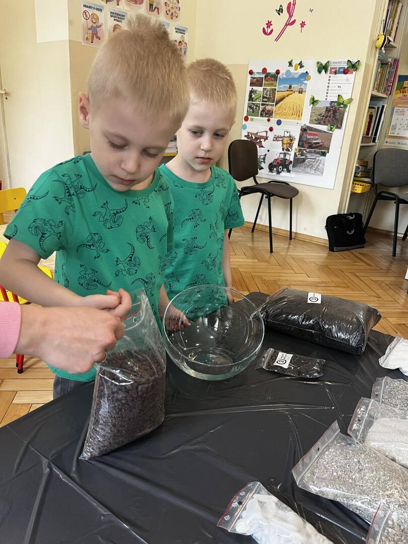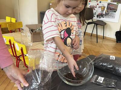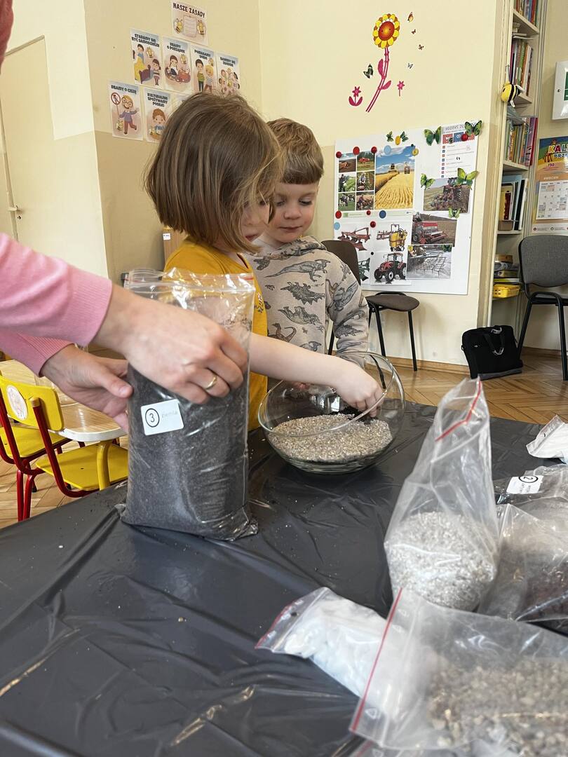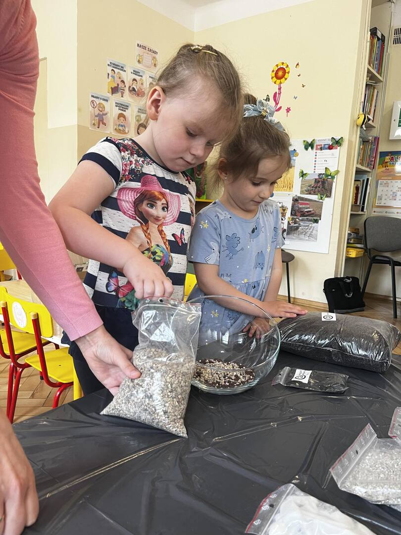 Udział w tworzeniu lasu wzięli wszyscy, każde dziecko dołożyło starań, żeby stworzyć kompozycje z ozdobnych kamyczków, żwiru, ziemi i roślinek.