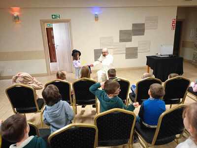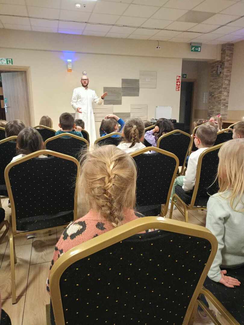 Bia艂oksi臋偶nik ze szko艂y magii i czarodziejstwa. Dzi艣 opowiada艂 o swoich przygodach dzieciom, gdzie odkrywa艂 tajemnice lekcji magii. Towarzyszy艂a mu przy tym Iska i szklana, ta艅cz膮ca kula przepowiadaj膮ca przysz艂o艣膰.