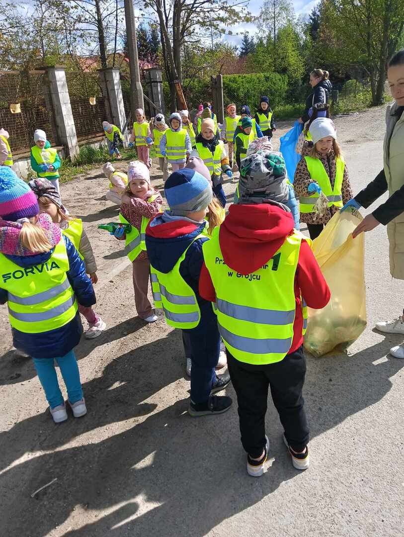 Reprezentanci naszego przedszkola Sówki 🦉, Gwiazdki ⭐ i Wiewiórki 🐿️ wyposażone w rękawiczki jednorazowe oraz worki wyruszyły na sprzątanie najbliższej okolicy przedszkola.