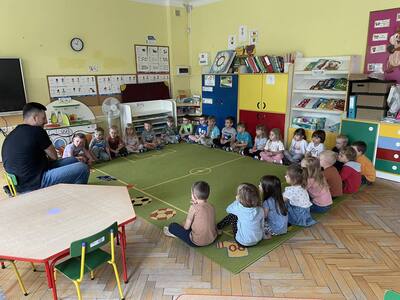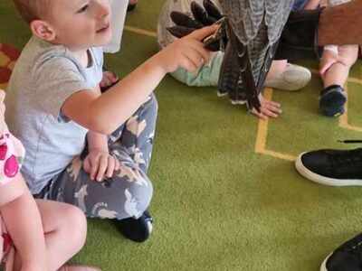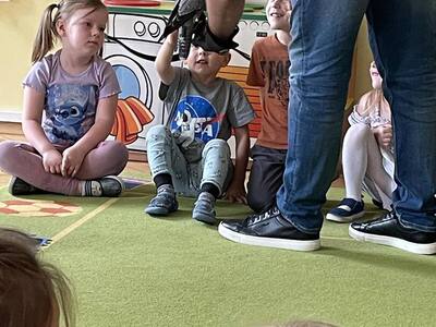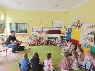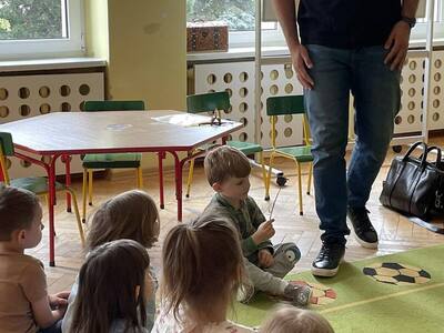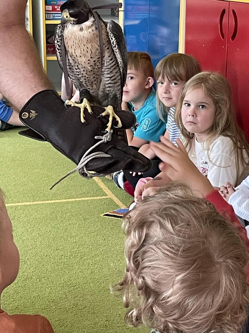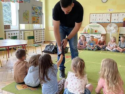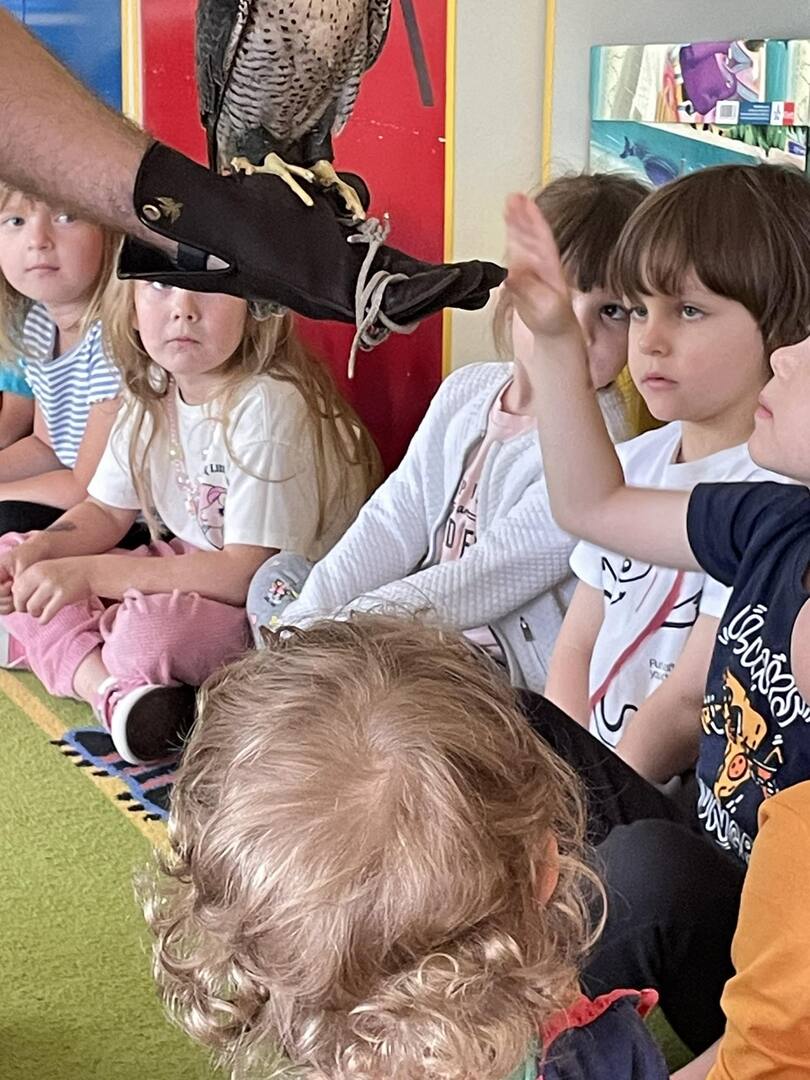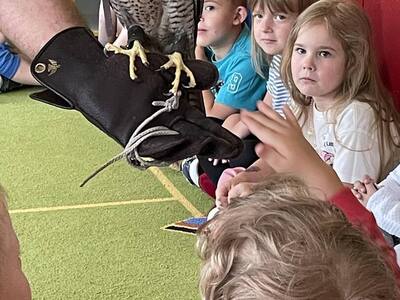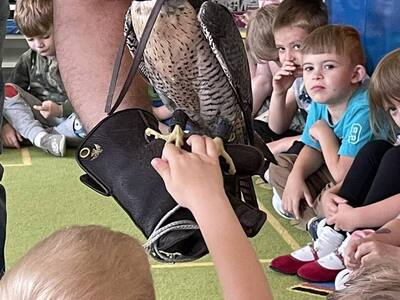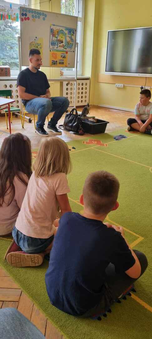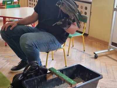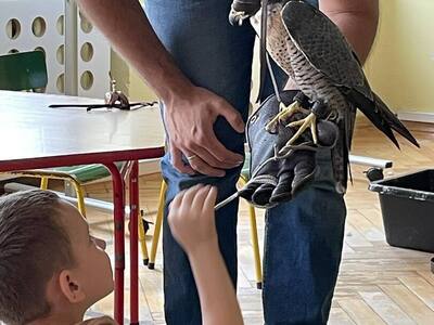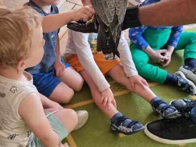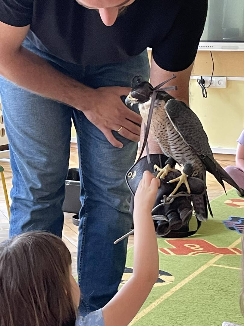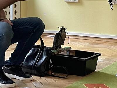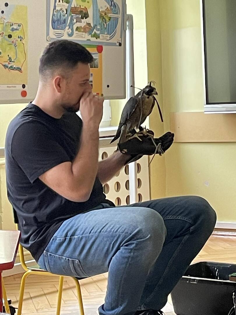 W przedszkolu odbyły się zajęcia edukacyjne pt. "Poznajemy świat ptaków drapieżnych". Na zajęciach dzieci poznały pojęcie "sokolnik". czym taka osoba się zajmuje, jak wygląda praca sokolnika. Dzieci miały możliwość zobaczenia z bliska sokoła. Prowadzący opowiadał także o biologii ptaków drapieżnych w naturalnym środowisku, akcesoriach, które są potrzebne sokolnikom i ciekawostkach ze świata ptaków drapieżnych.