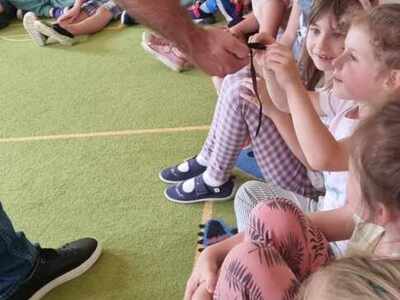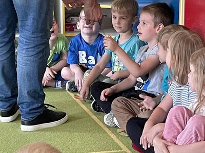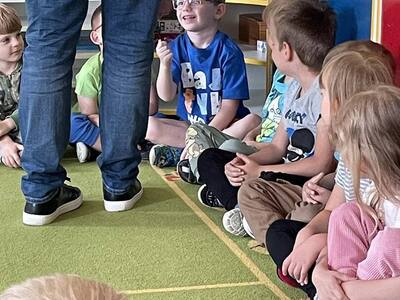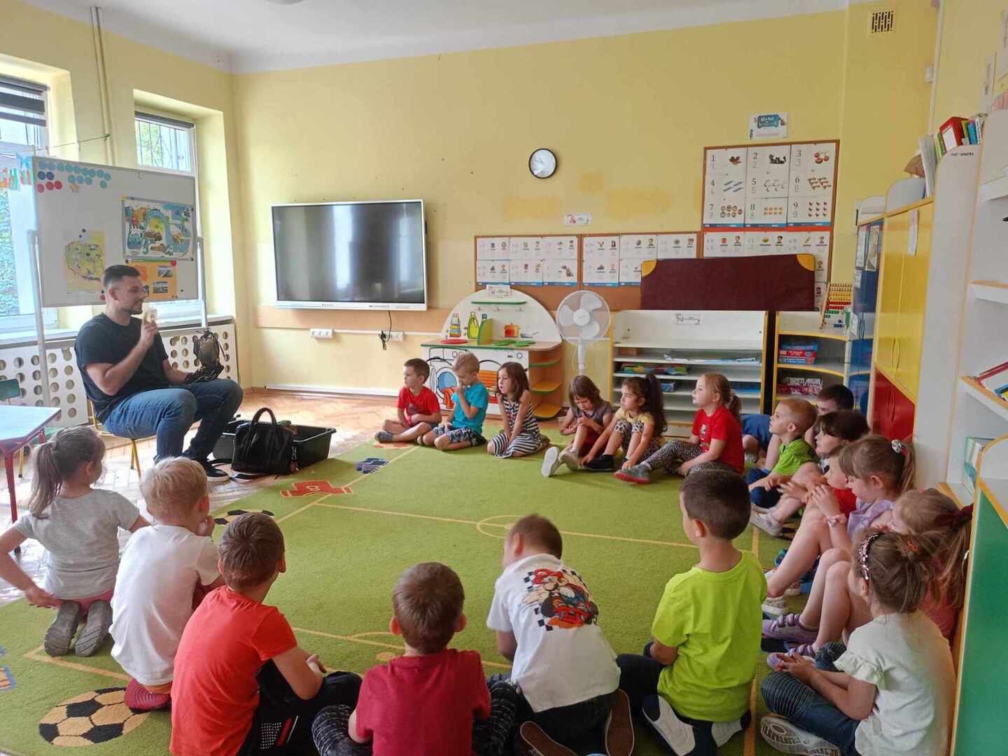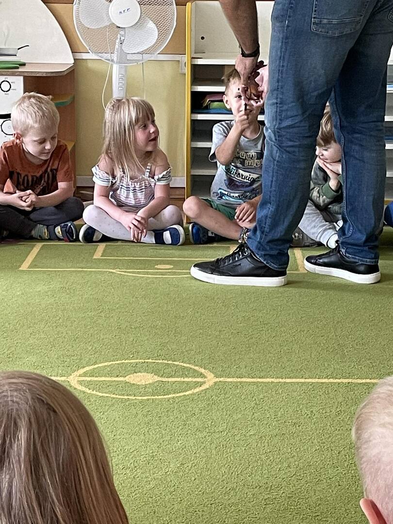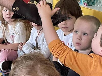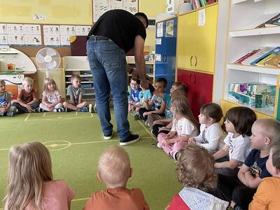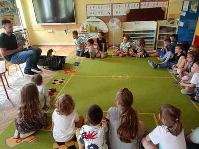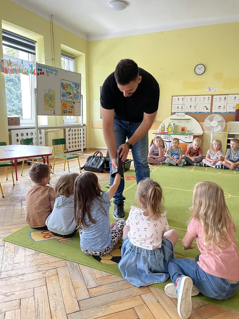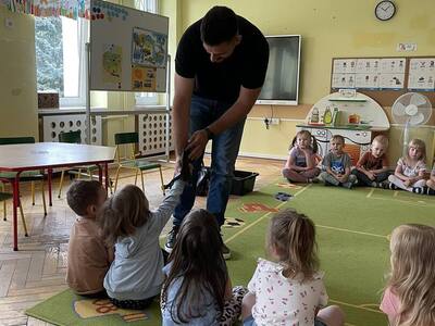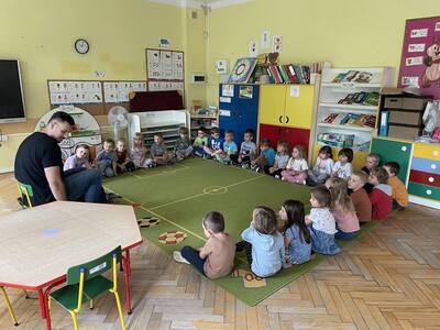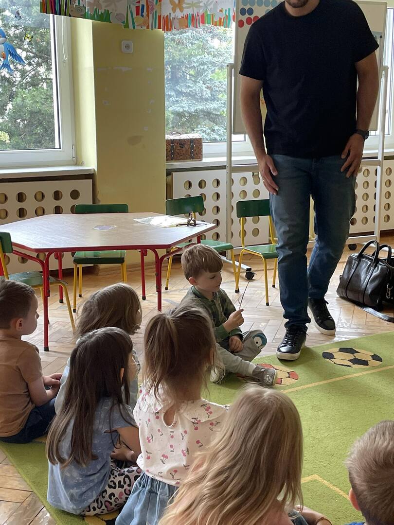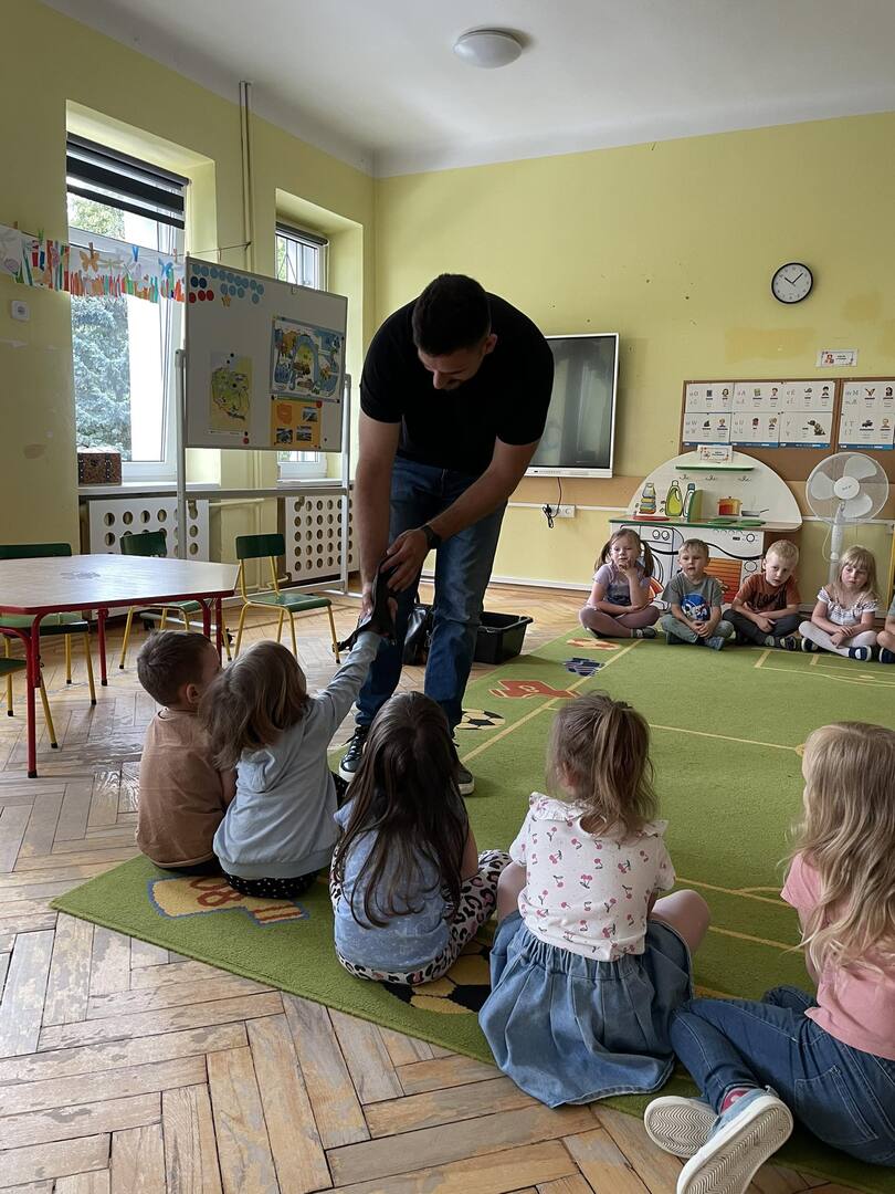 W przedszkolu odbyły się zajęcia edukacyjne pt. "Poznajemy świat ptaków drapieżnych". Na zajęciach dzieci poznały pojęcie "sokolnik". czym taka osoba się zajmuje, jak wygląda praca sokolnika. Dzieci miały możliwość zobaczenia z bliska sokoła. Prowadzący opowiadał także o biologii ptaków drapieżnych w naturalnym środowisku, akcesoriach, które są potrzebne sokolnikom i ciekawostkach ze świata ptaków drapieżnych.