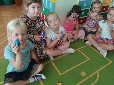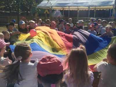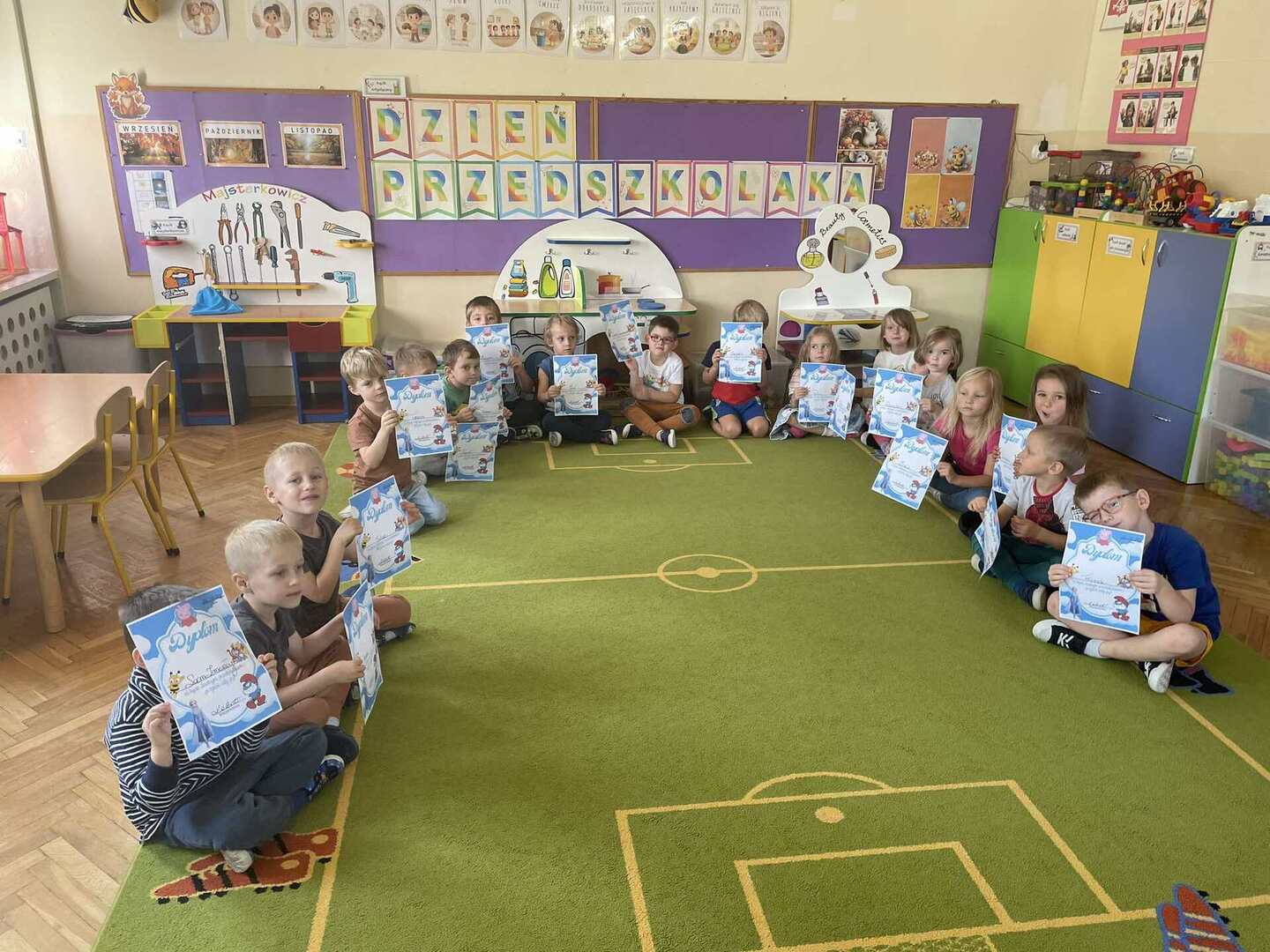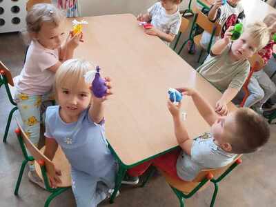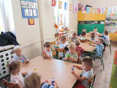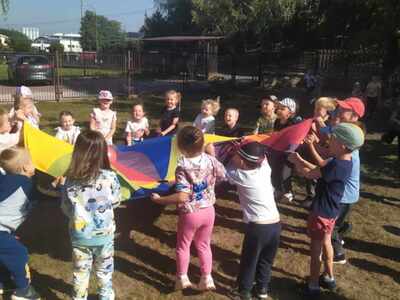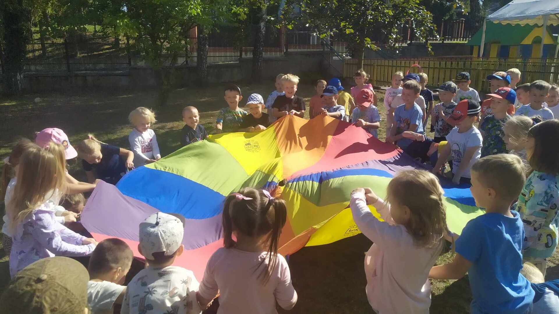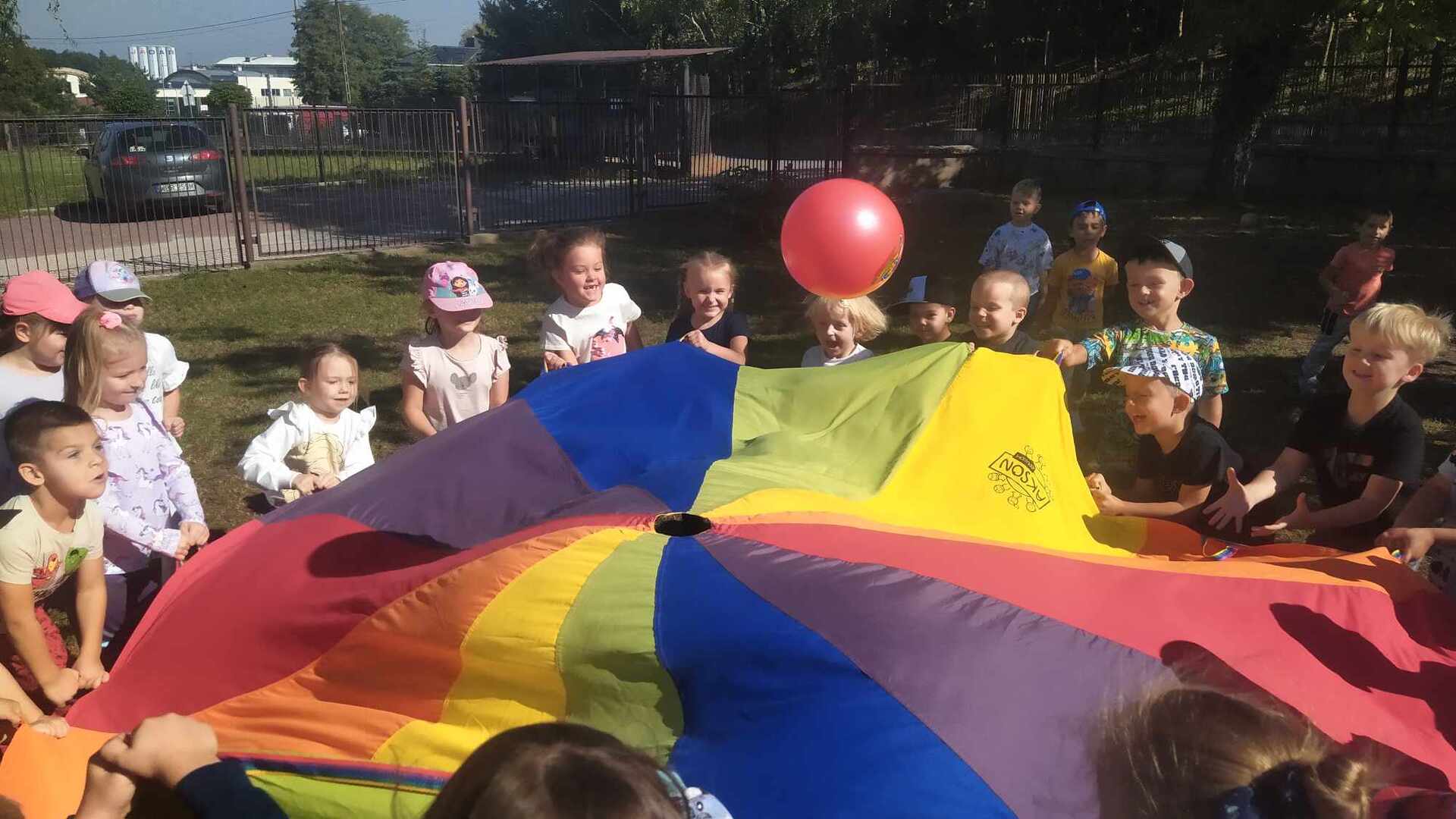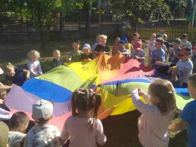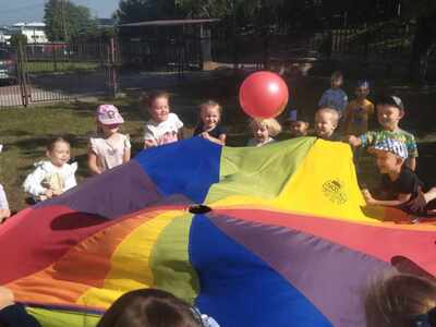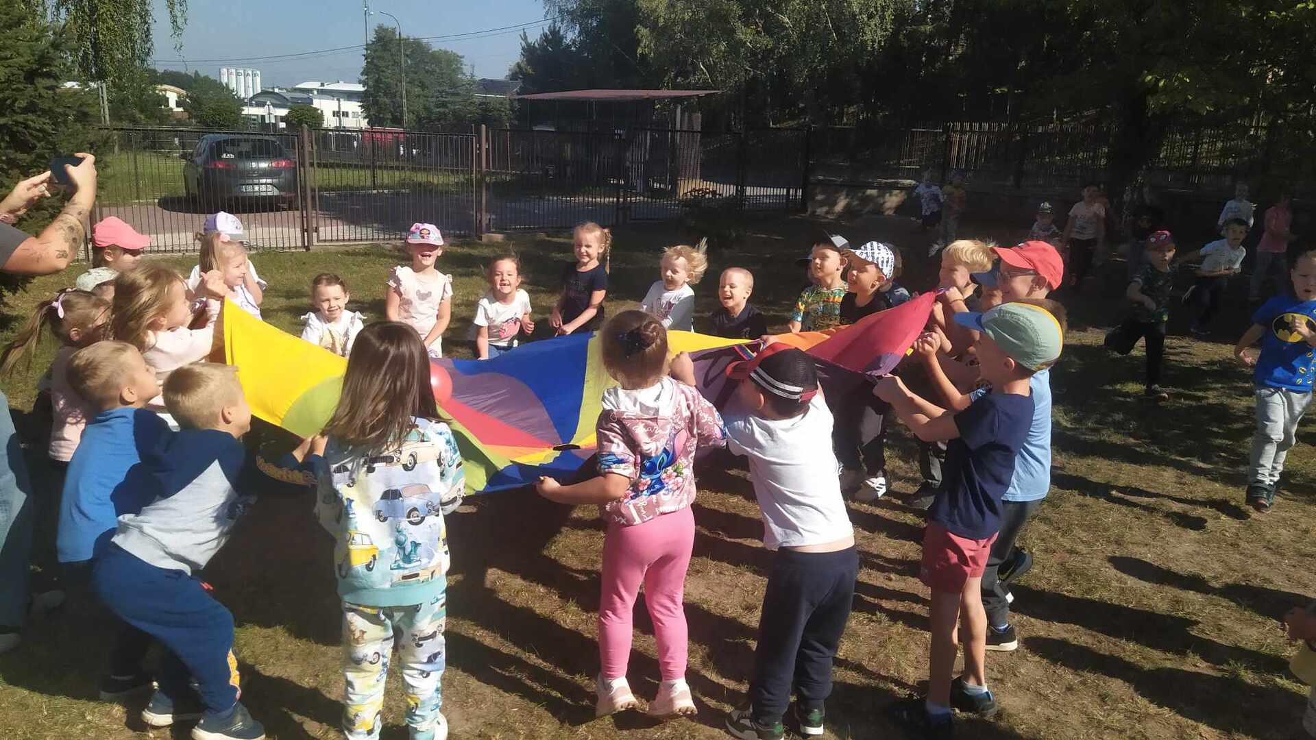 W Dniu Przedszkolaka dzieci integrowa艂y si臋 na placu przedszkolnym, bior膮c udzia艂 w zabawach sportowych, muzycznych oraz z chust膮 animacyjn膮, mia艂y organizowane gry i zabawy w swoich salach, robi艂y gniotki, dostawa艂y dyplomy oraz medale. To by艂 udany dzie艅 馃檪