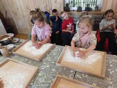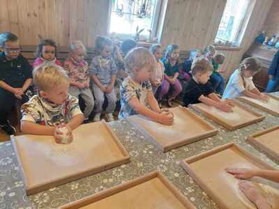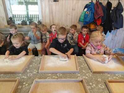 W ostatni dzień września grupa Cytrynki, Bąbelki, Słoneczka oraz Myszki odwiedziły Dolinę Bobrów. Dzieci zostały przywitane przez gospodynie ubraną w tradycyjny stroj ludowy. Na przedszkolaków czekało wiele atrakcji takich jak wypiek chleba, poszukiwanie skarbów z wykrywaczem metali oraz zwiedzanie stodoły z maszynami i urządzeniami rolniczymi, gdzie dzieci mogły zobaczyć, jak wyglądało dawniej rolnictwo.