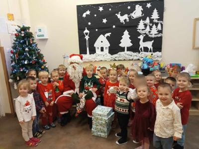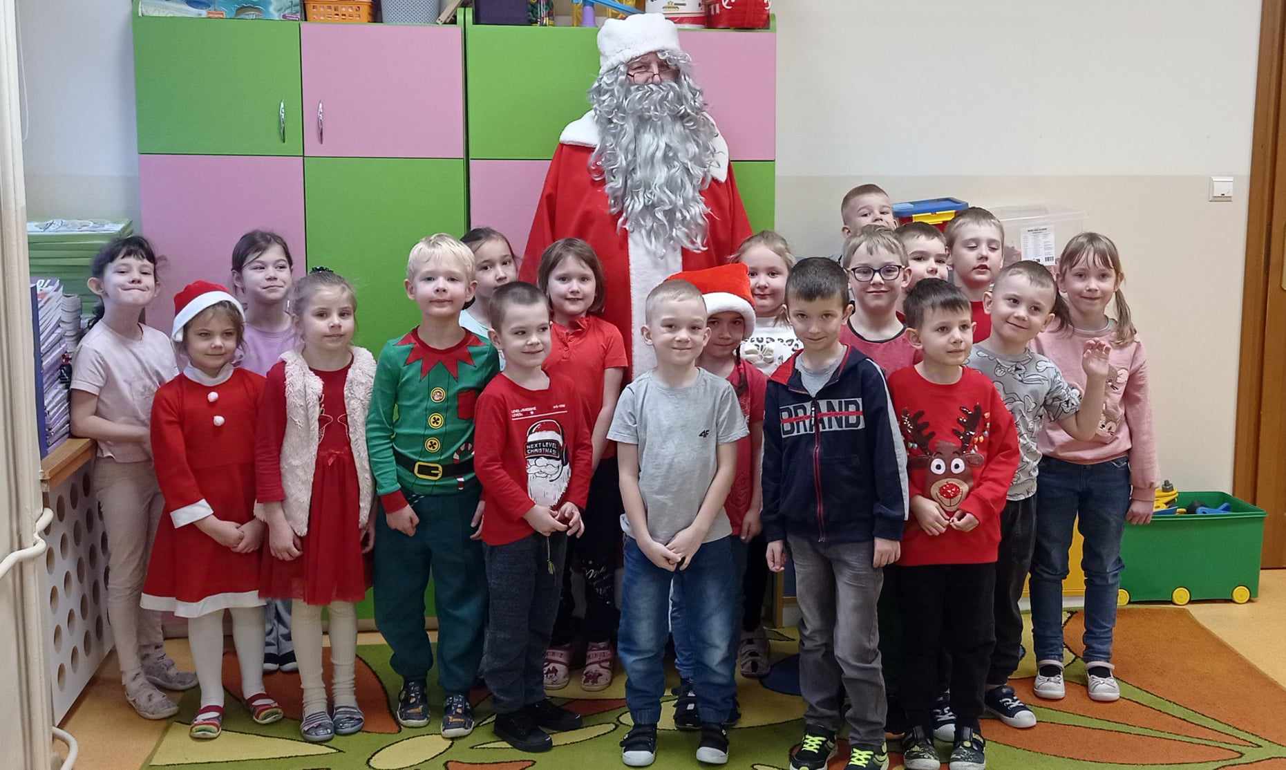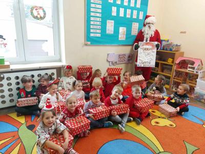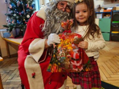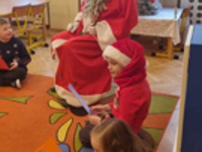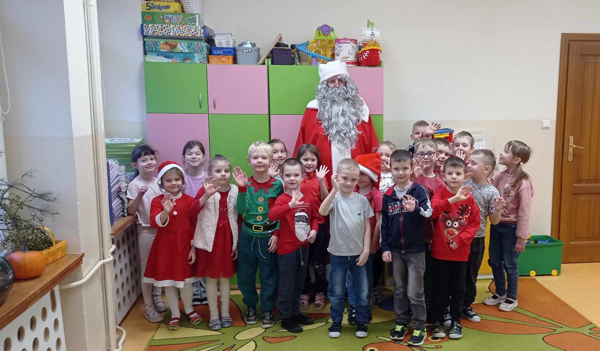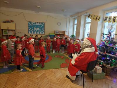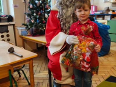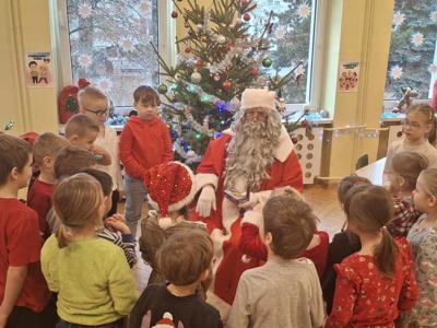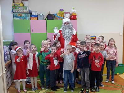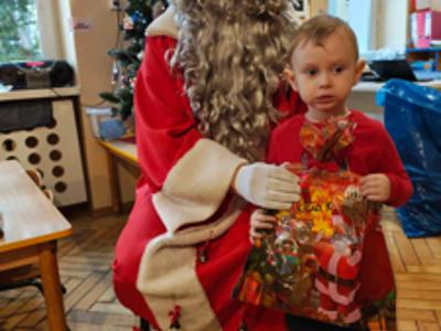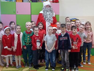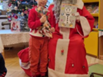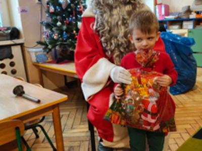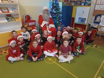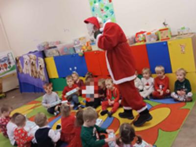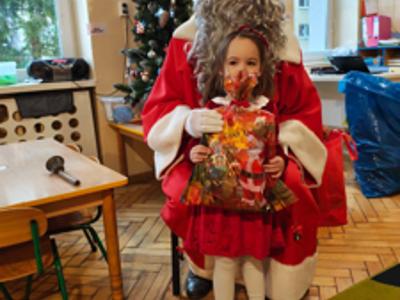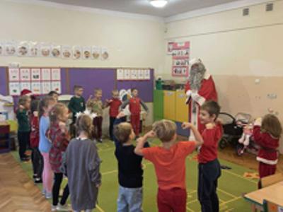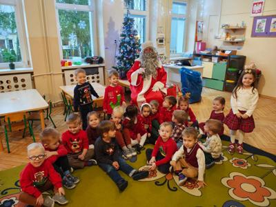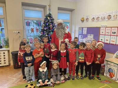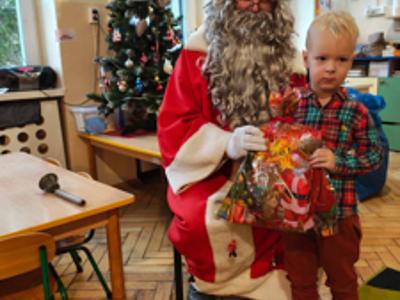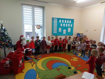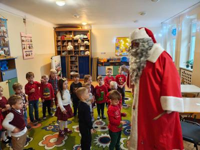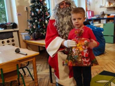 6 grudnia nasze przedszkole odwiedził bardzo miły i długo oczekiwany gość. Miał czerwony strój, długą, białą brodę, dźwigał na plecach bardzo ciężki worek, a w nim prezenty. To nie mógł być nikt inny tylko MIKOŁAJ- niezwykle wesoły, rozmowny i chętny do wspólnej zabawy i tańca. Pomimo braku białego puchu, jak co roku przybył na czas. Spotkanie przebiegało w bardzo radosnej i przyjaznej atmosferze. Przedszkolaki już od początku tygodnia przygotowywały się do odwiedzin, stroiły sale, ubierały choinki, uczyły się piosenek, które zaśpiewały Mikołajowi. Święty Mikołaj obdarował wszystkie dzieci słodkimi cukierkami . Na twarzach dzieci malowała się wielka radość i przejęcie, a także nadzieja na kolejne spotkanie. Święty Mikołaju bardzo dziękujemy za odwiedziny i do zobaczenia za rok!
