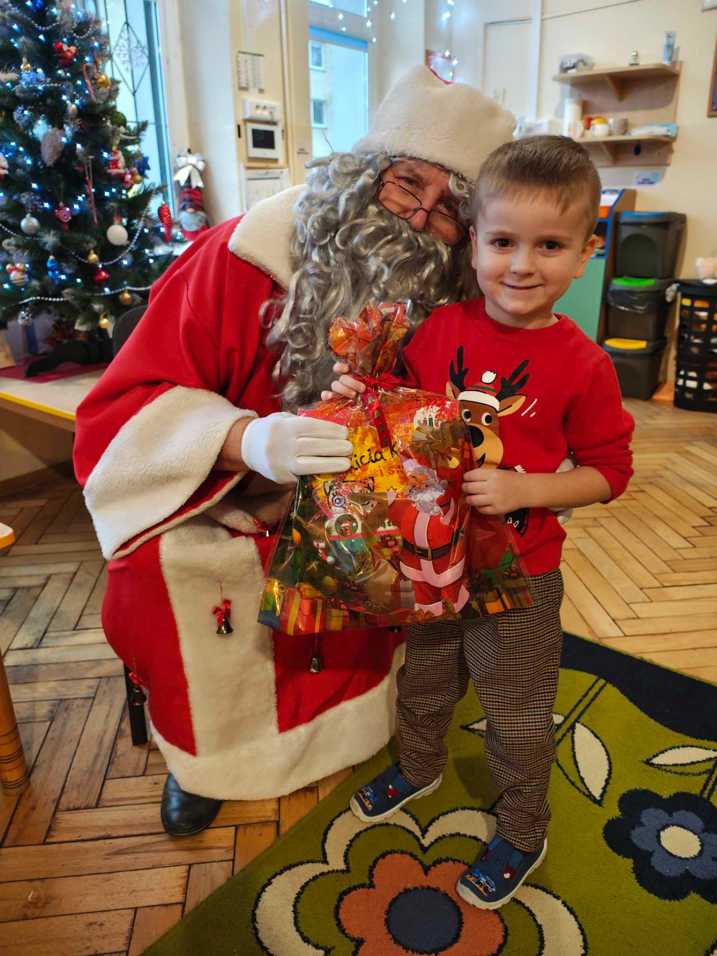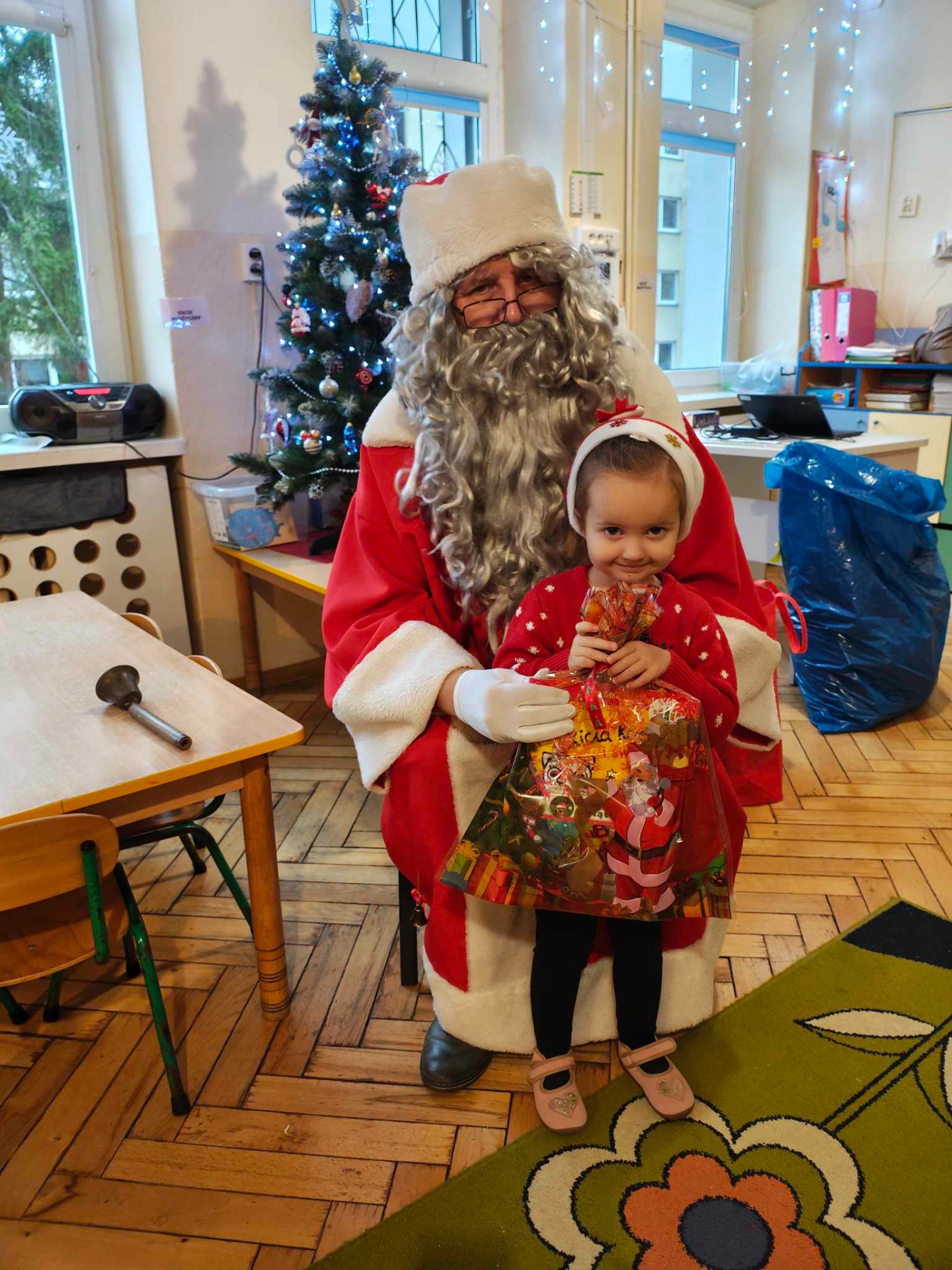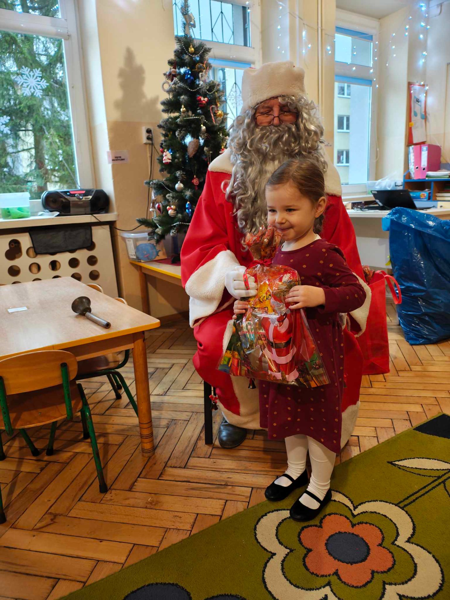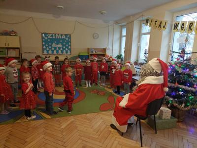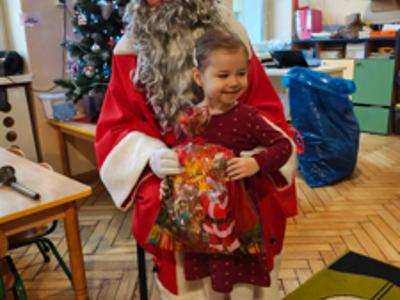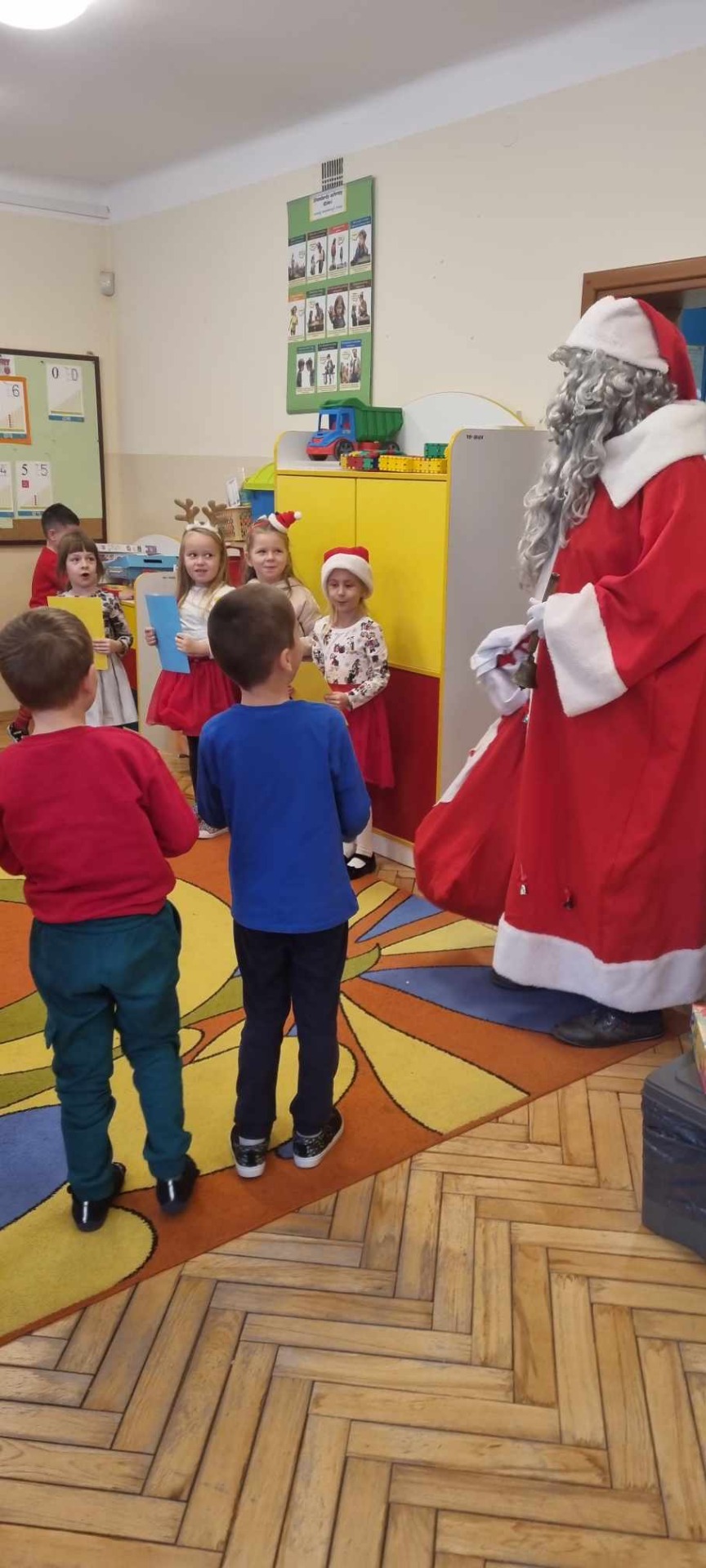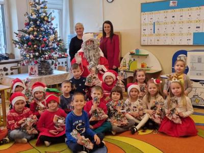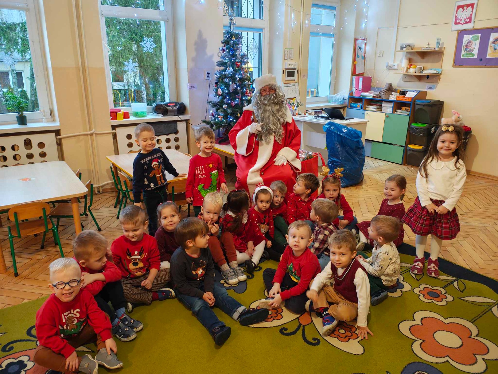 6 grudnia nasze przedszkole odwiedził bardzo miły i długo oczekiwany gość. Miał czerwony strój, długą, białą brodę, dźwigał na plecach bardzo ciężki worek, a w nim prezenty. To nie mógł być nikt inny tylko MIKOŁAJ- niezwykle wesoły, rozmowny i chętny do wspólnej zabawy i tańca. Pomimo braku białego puchu, jak co roku przybył na czas. Spotkanie przebiegało w bardzo radosnej i przyjaznej atmosferze. Przedszkolaki już od początku tygodnia przygotowywały się do odwiedzin, stroiły sale, ubierały choinki, uczyły się piosenek, które zaśpiewały Mikołajowi. Święty Mikołaj obdarował wszystkie dzieci słodkimi cukierkami . Na twarzach dzieci malowała się wielka radość i przejęcie, a także nadzieja na kolejne spotkanie. Święty Mikołaju bardzo dziękujemy za odwiedziny i do zobaczenia za rok!