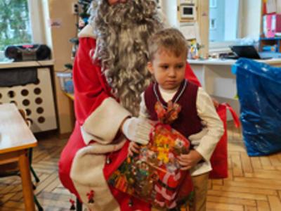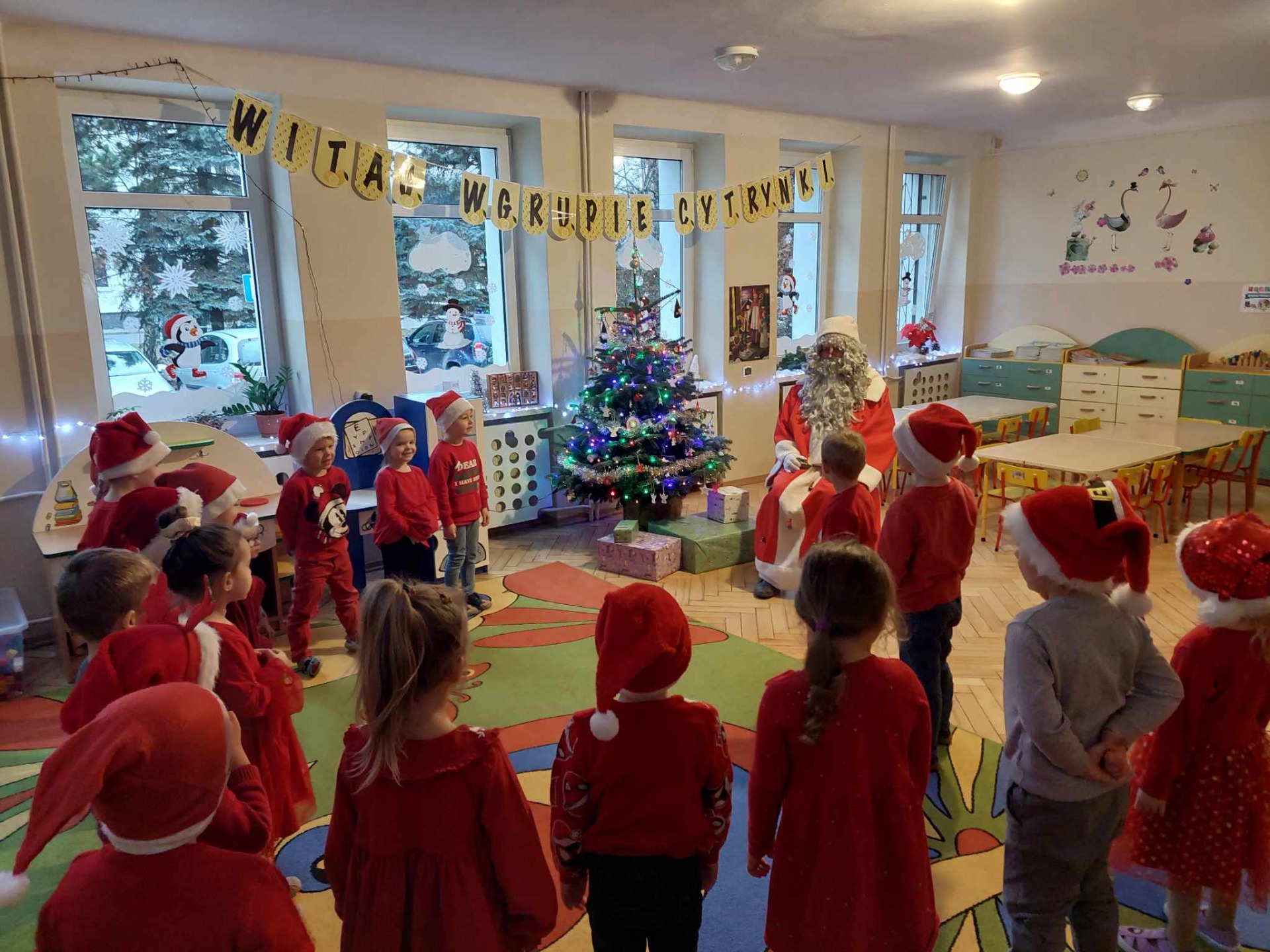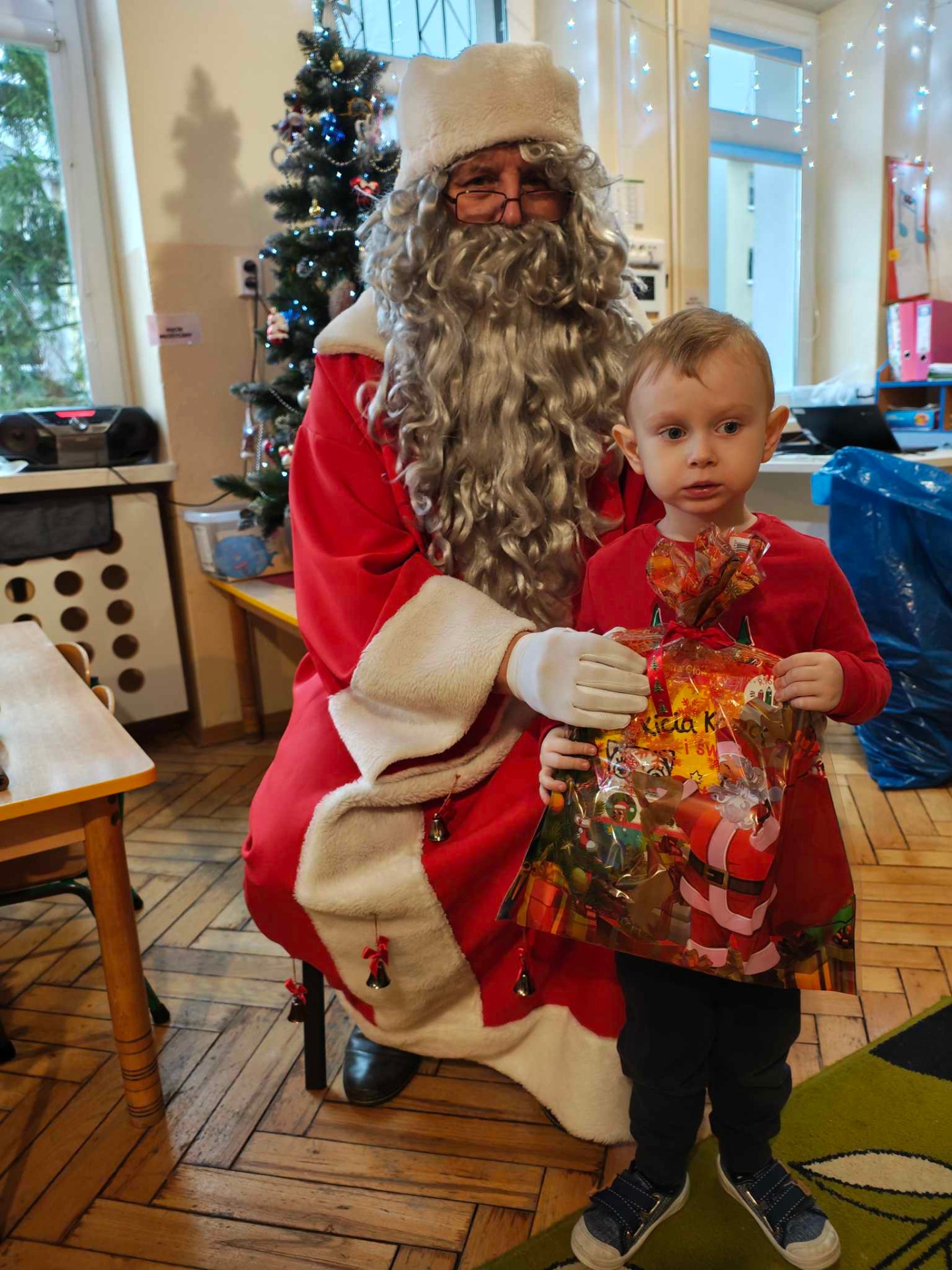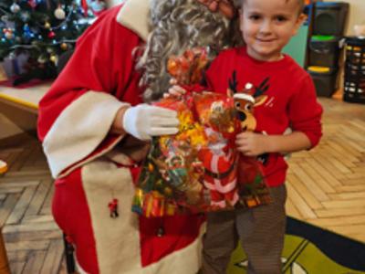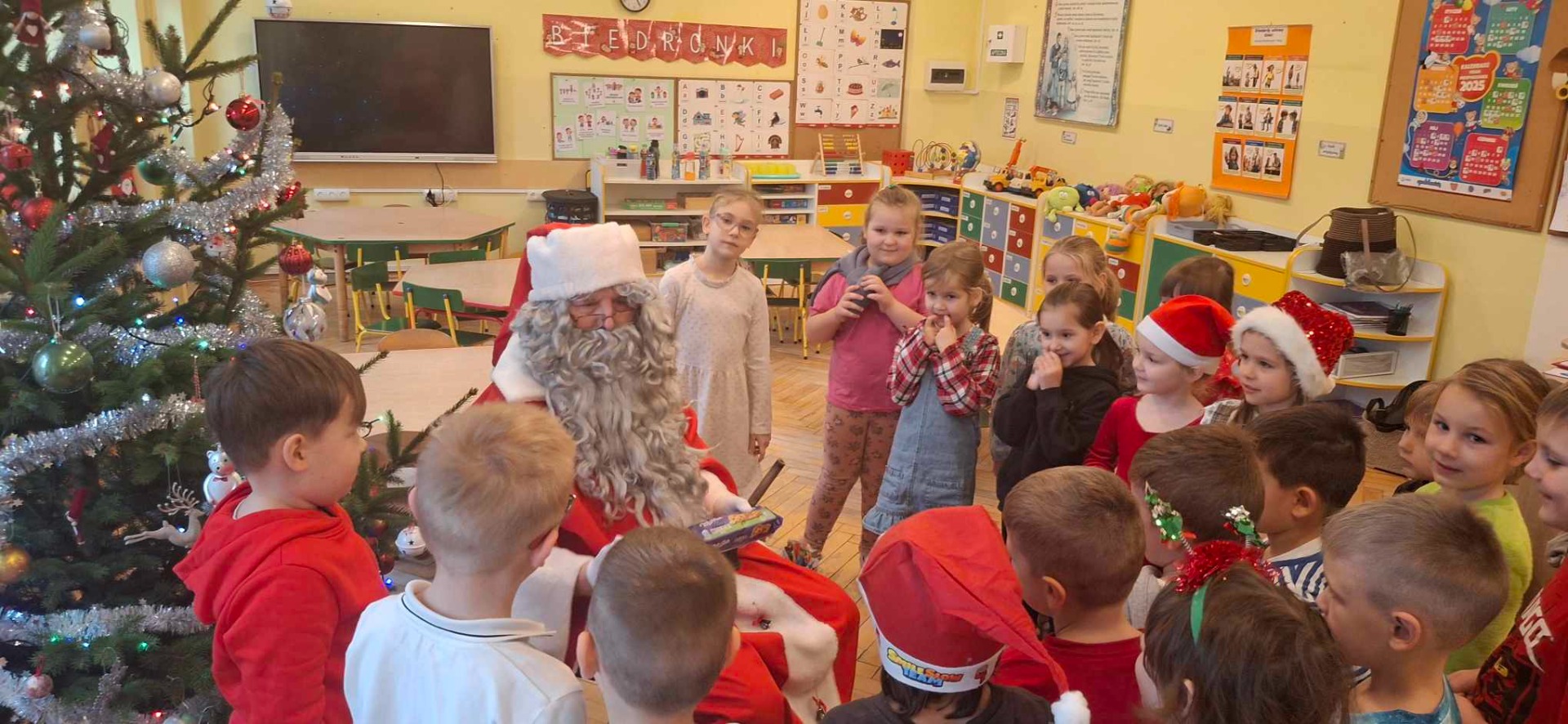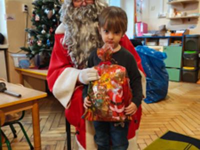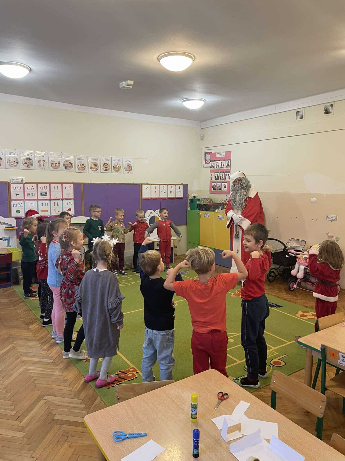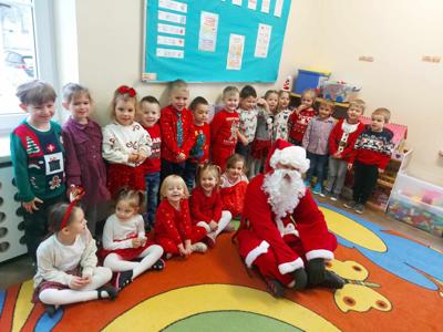 6 grudnia nasze przedszkole odwiedził bardzo miły i długo oczekiwany gość. Miał czerwony strój, długą, białą brodę, dźwigał na plecach bardzo ciężki worek, a w nim prezenty. To nie mógł być nikt inny tylko MIKOŁAJ- niezwykle wesoły, rozmowny i chętny do wspólnej zabawy i tańca. Pomimo braku białego puchu, jak co roku przybył na czas. Spotkanie przebiegało w bardzo radosnej i przyjaznej atmosferze. Przedszkolaki już od początku tygodnia przygotowywały się do odwiedzin, stroiły sale, ubierały choinki, uczyły się piosenek, które zaśpiewały Mikołajowi. Święty Mikołaj obdarował wszystkie dzieci słodkimi cukierkami . Na twarzach dzieci malowała się wielka radość i przejęcie, a także nadzieja na kolejne spotkanie. Święty Mikołaju bardzo dziękujemy za odwiedziny i do zobaczenia za rok!