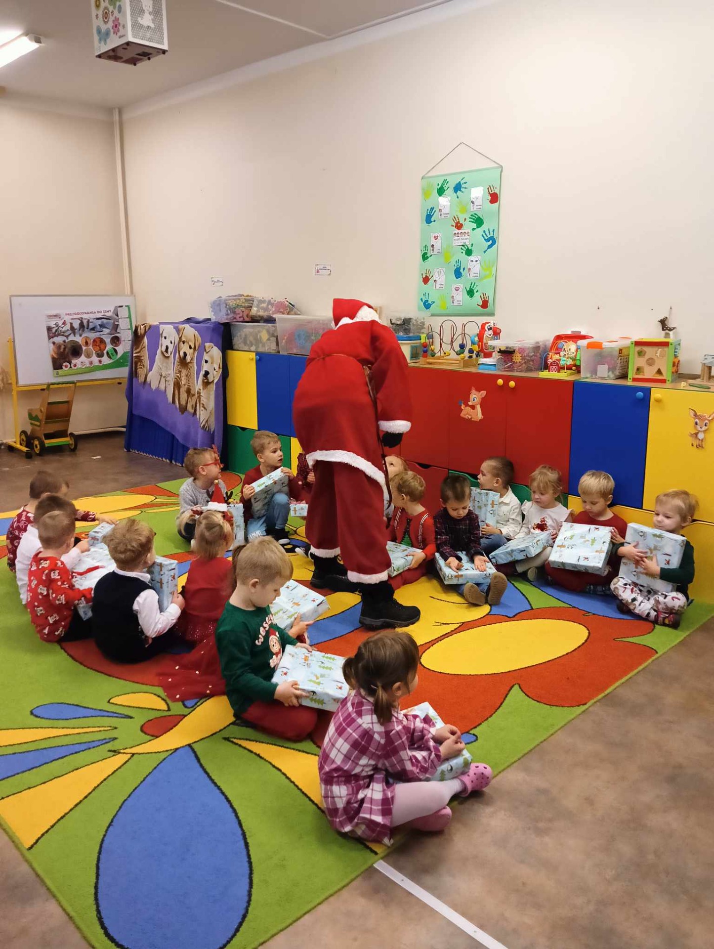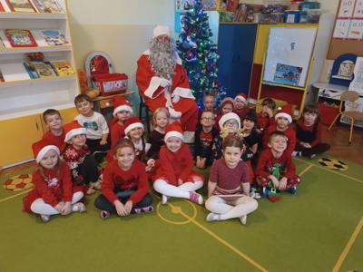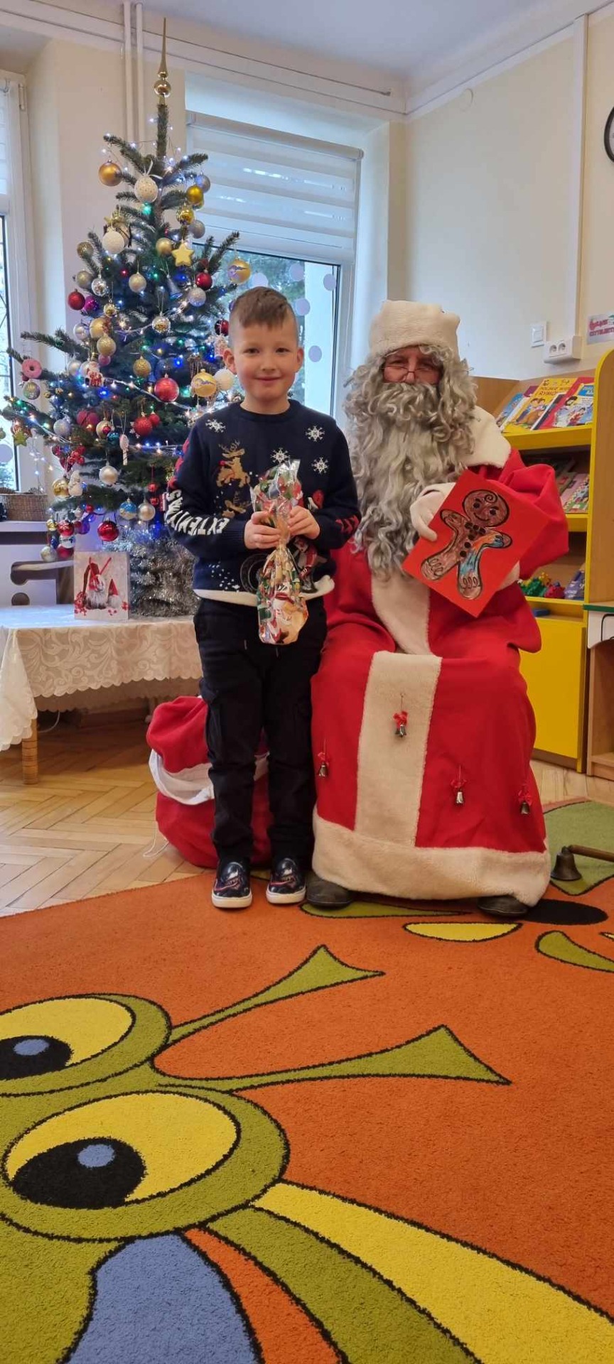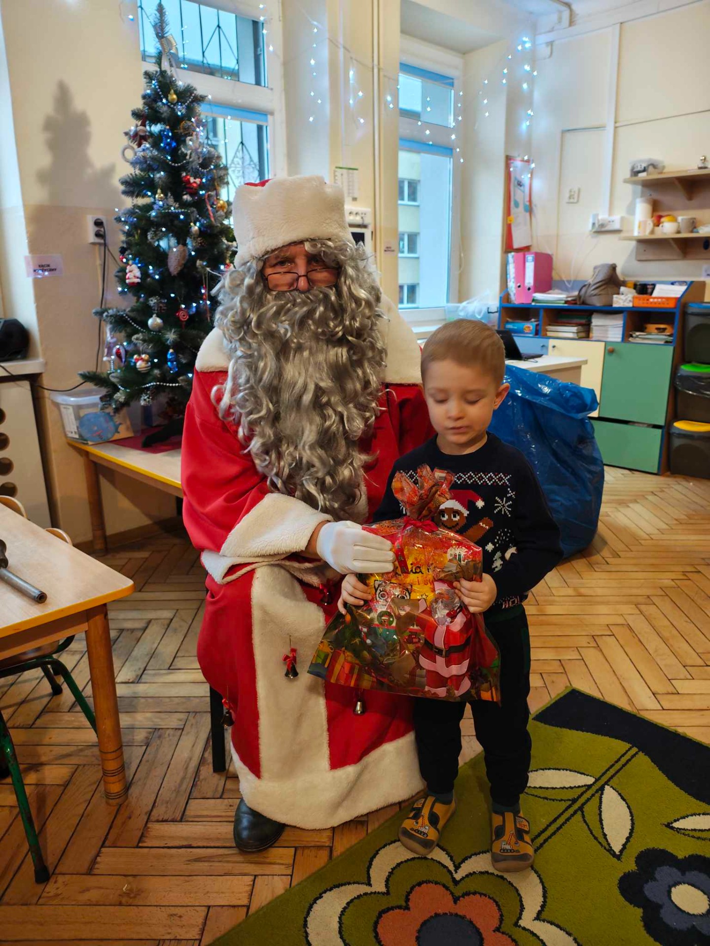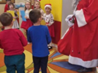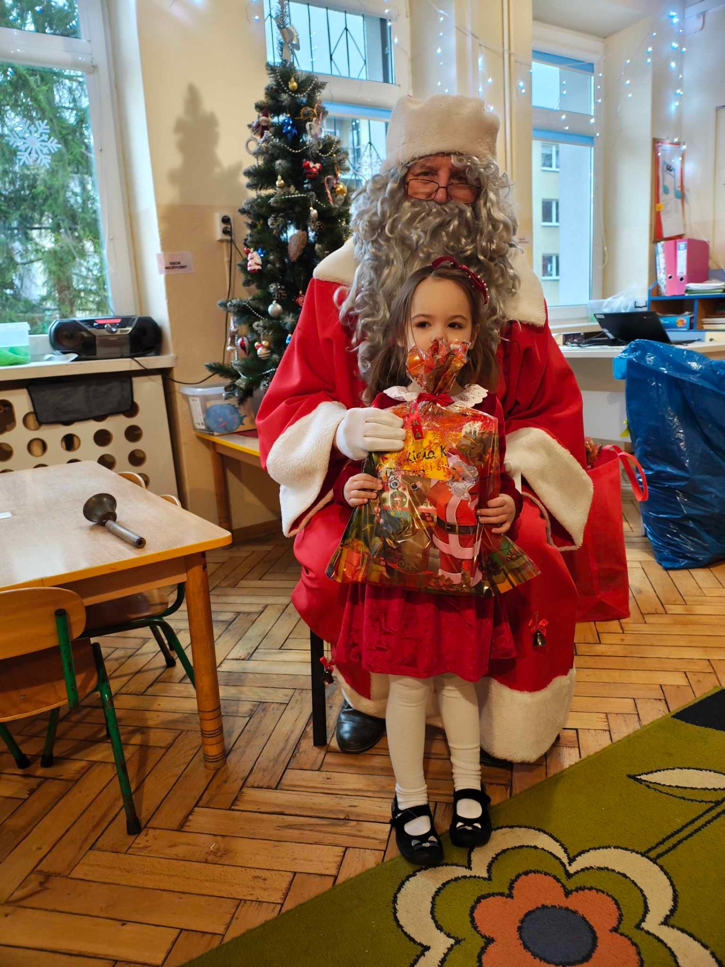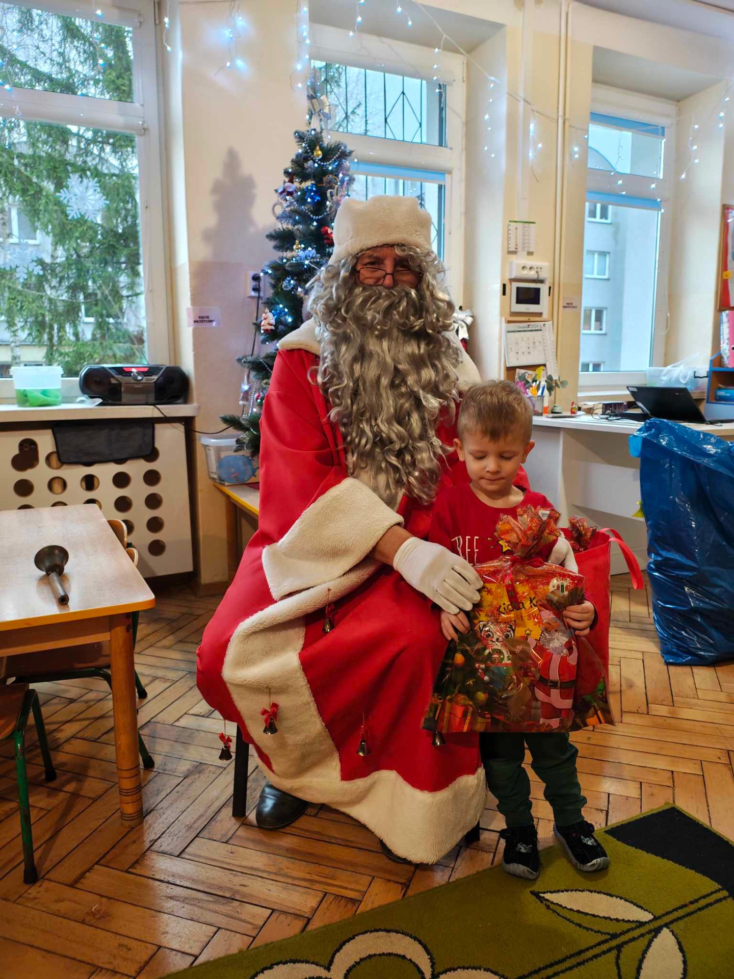 6 grudnia nasze przedszkole odwiedził bardzo miły i długo oczekiwany gość. Miał czerwony strój, długą, białą brodę, dźwigał na plecach bardzo ciężki worek, a w nim prezenty. To nie mógł być nikt inny tylko MIKOŁAJ- niezwykle wesoły, rozmowny i chętny do wspólnej zabawy i tańca. Pomimo braku białego puchu, jak co roku przybył na czas. Spotkanie przebiegało w bardzo radosnej i przyjaznej atmosferze. Przedszkolaki już od początku tygodnia przygotowywały się do odwiedzin, stroiły sale, ubierały choinki, uczyły się piosenek, które zaśpiewały Mikołajowi. Święty Mikołaj obdarował wszystkie dzieci słodkimi cukierkami . Na twarzach dzieci malowała się wielka radość i przejęcie, a także nadzieja na kolejne spotkanie. Święty Mikołaju bardzo dziękujemy za odwiedziny i do zobaczenia za rok!