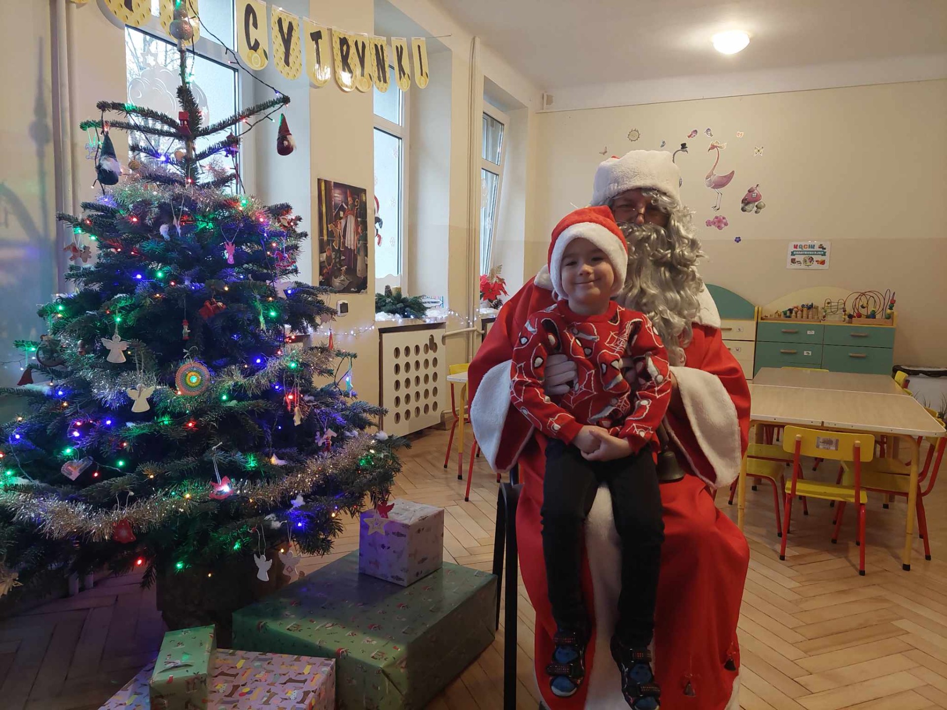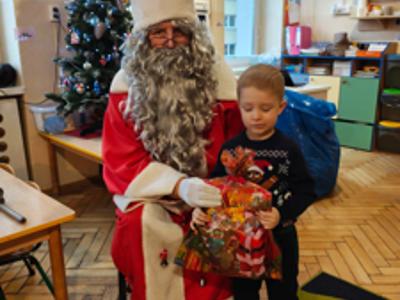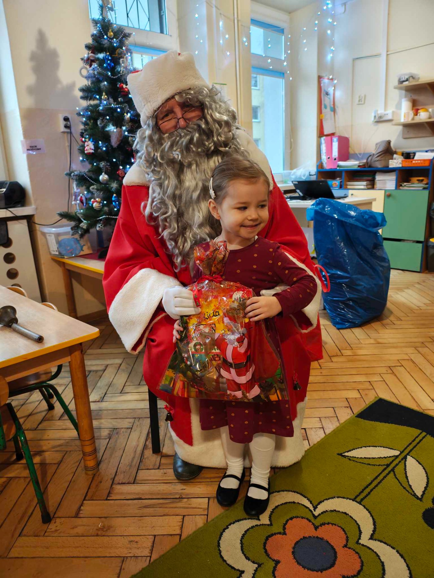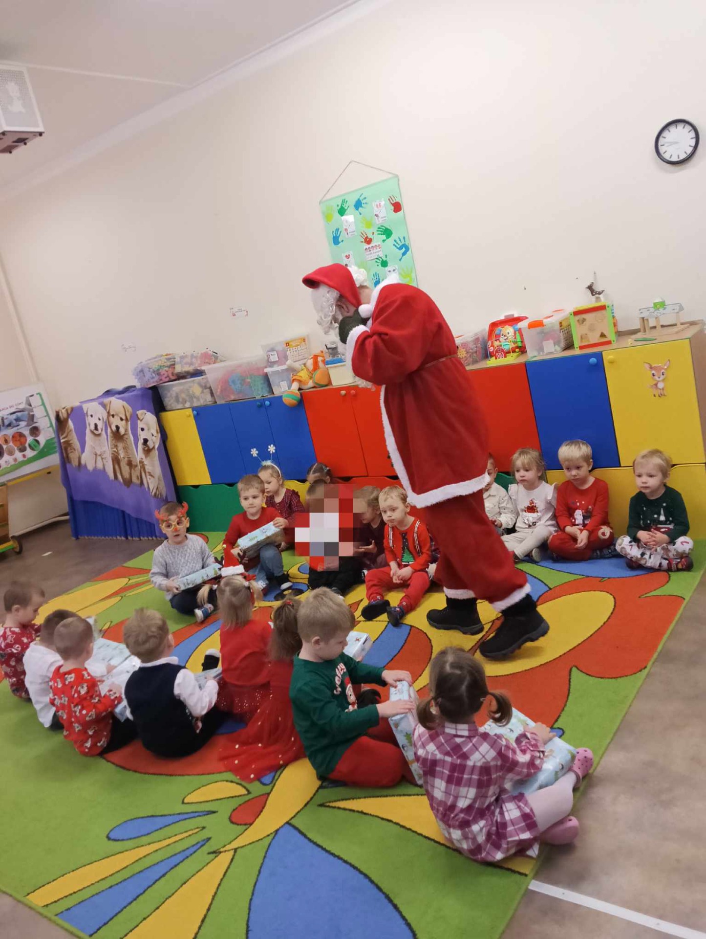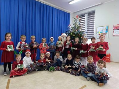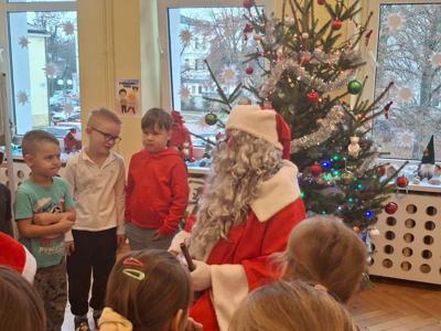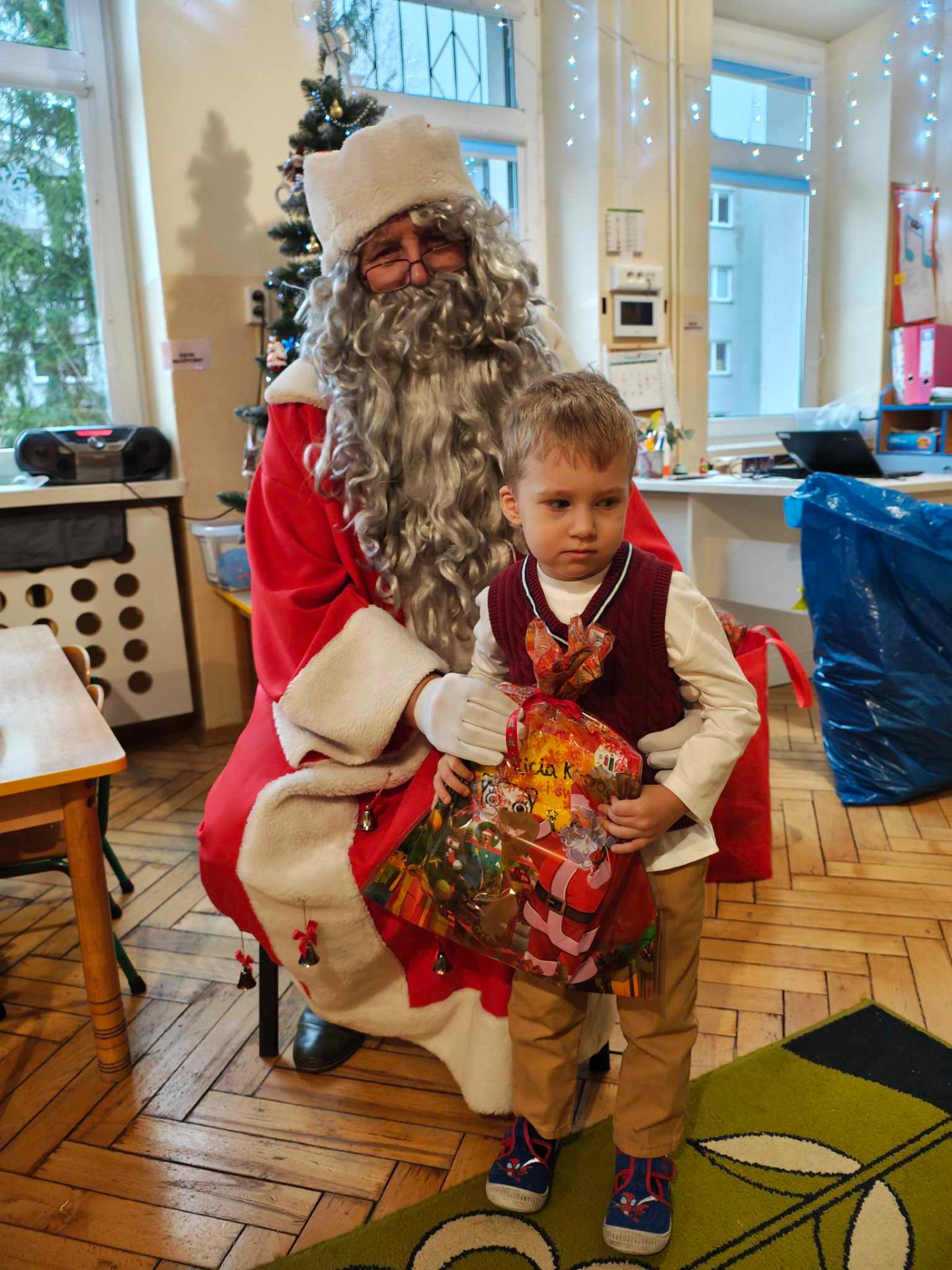 6 grudnia nasze przedszkole odwiedził bardzo miły i długo oczekiwany gość. Miał czerwony strój, długą, białą brodę, dźwigał na plecach bardzo ciężki worek, a w nim prezenty. To nie mógł być nikt inny tylko MIKOŁAJ- niezwykle wesoły, rozmowny i chętny do wspólnej zabawy i tańca. Pomimo braku białego puchu, jak co roku przybył na czas. Spotkanie przebiegało w bardzo radosnej i przyjaznej atmosferze. Przedszkolaki już od początku tygodnia przygotowywały się do odwiedzin, stroiły sale, ubierały choinki, uczyły się piosenek, które zaśpiewały Mikołajowi. Święty Mikołaj obdarował wszystkie dzieci słodkimi cukierkami . Na twarzach dzieci malowała się wielka radość i przejęcie, a także nadzieja na kolejne spotkanie. Święty Mikołaju bardzo dziękujemy za odwiedziny i do zobaczenia za rok!
