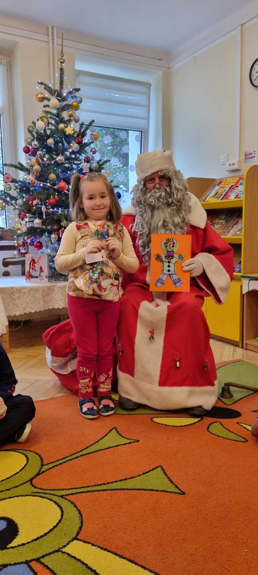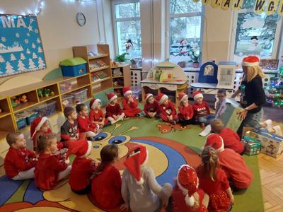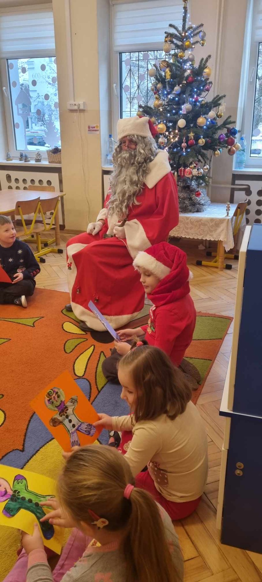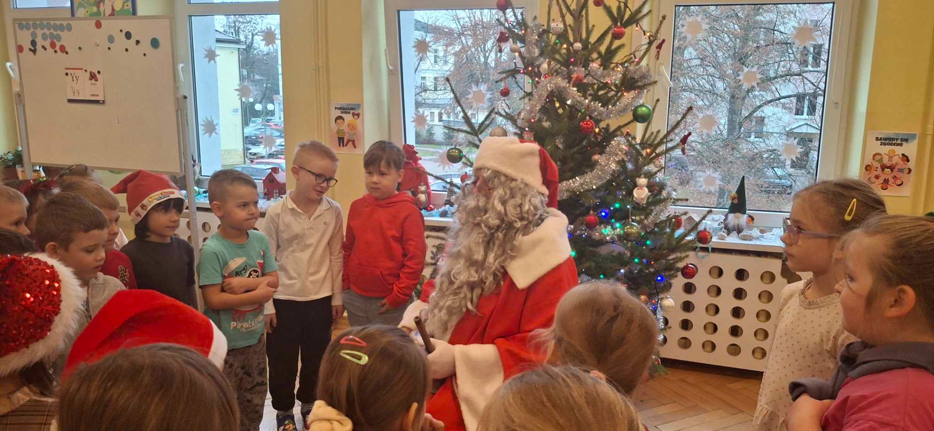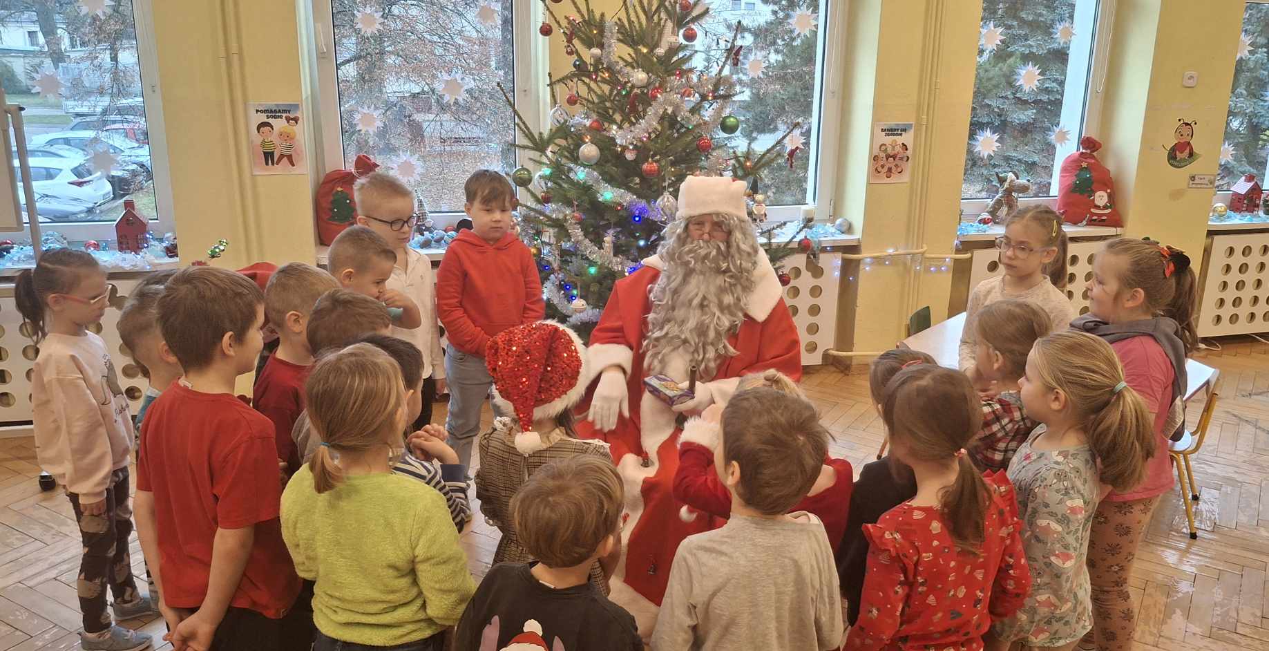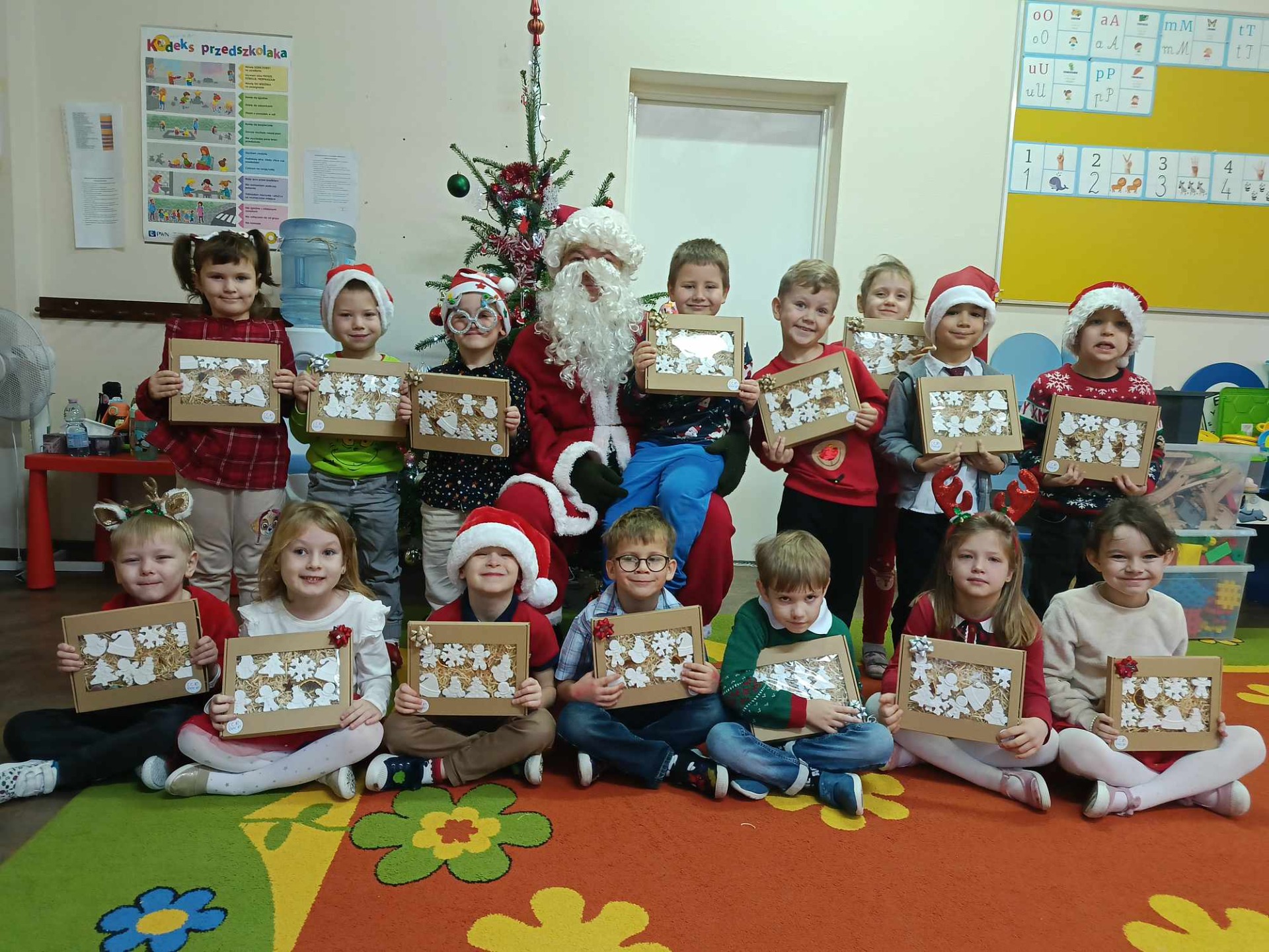6 grudnia nasze przedszkole odwiedził bardzo miły i długo oczekiwany gość. Miał czerwony strój, długą, białą brodę, dźwigał na plecach bardzo ciężki worek, a w nim prezenty. To nie mógł być nikt inny tylko MIKOŁAJ- niezwykle wesoły, rozmowny i chętny do wspólnej zabawy i tańca. Pomimo braku białego puchu, jak co roku przybył na czas. Spotkanie przebiegało w bardzo radosnej i przyjaznej atmosferze. Przedszkolaki już od początku tygodnia przygotowywały się do odwiedzin, stroiły sale, ubierały choinki, uczyły się piosenek, które zaśpiewały Mikołajowi. Święty Mikołaj obdarował wszystkie dzieci słodkimi cukierkami . Na twarzach dzieci malowała się wielka radość i przejęcie, a także nadzieja na kolejne spotkanie. Święty Mikołaju bardzo dziękujemy za odwiedziny i do zobaczenia za rok!