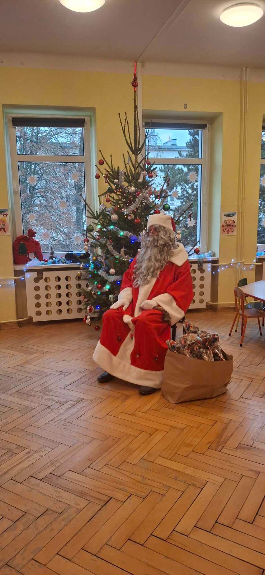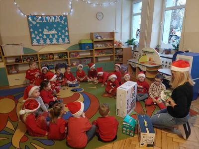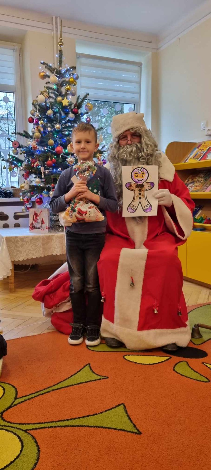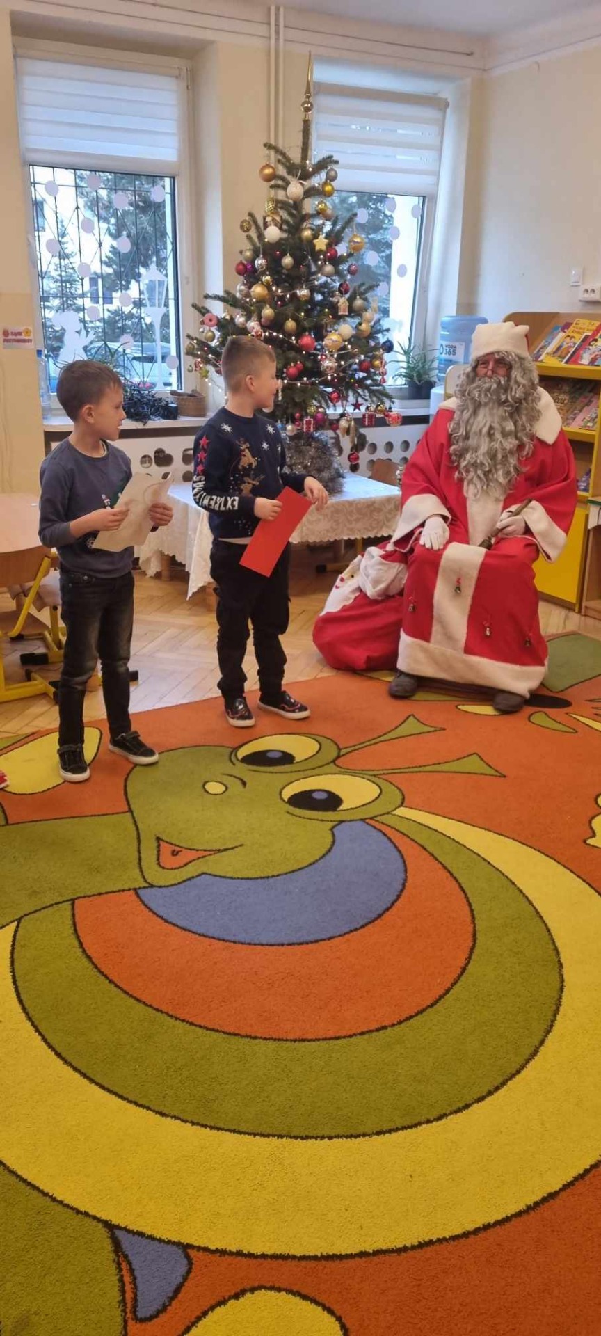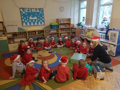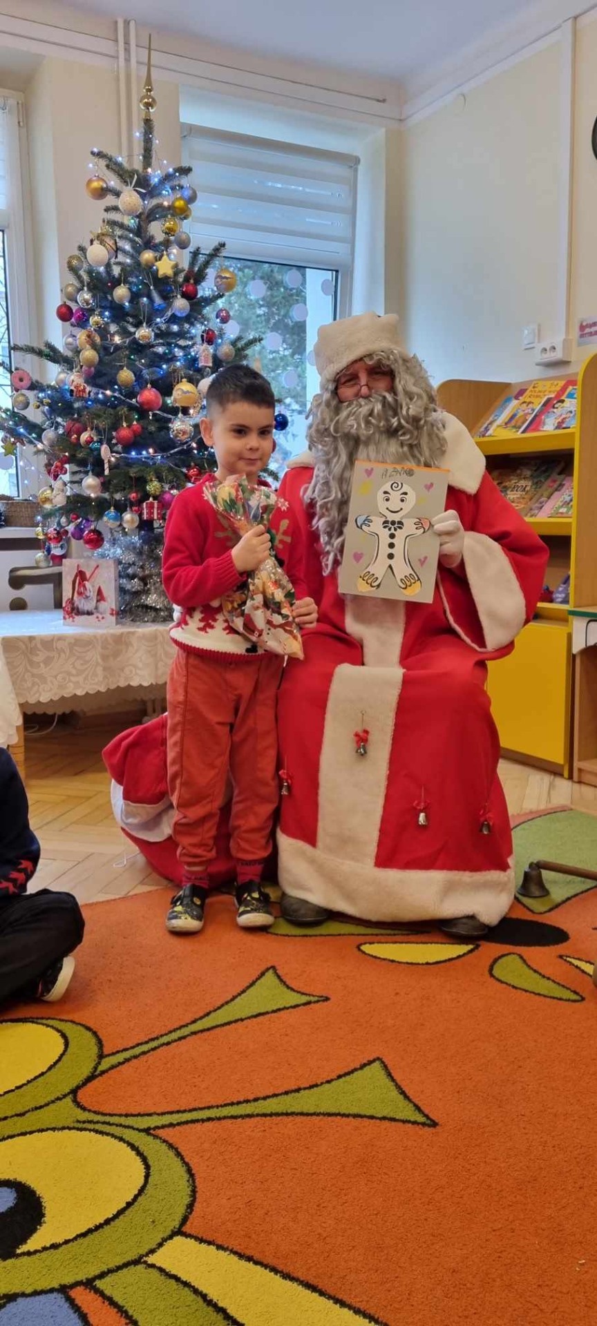 6 grudnia nasze przedszkole odwiedził bardzo miły i długo oczekiwany gość. Miał czerwony strój, długą, białą brodę, dźwigał na plecach bardzo ciężki worek, a w nim prezenty. To nie mógł być nikt inny tylko MIKOŁAJ- niezwykle wesoły, rozmowny i chętny do wspólnej zabawy i tańca. Pomimo braku białego puchu, jak co roku przybył na czas. Spotkanie przebiegało w bardzo radosnej i przyjaznej atmosferze. Przedszkolaki już od początku tygodnia przygotowywały się do odwiedzin, stroiły sale, ubierały choinki, uczyły się piosenek, które zaśpiewały Mikołajowi. Święty Mikołaj obdarował wszystkie dzieci słodkimi cukierkami . Na twarzach dzieci malowała się wielka radość i przejęcie, a także nadzieja na kolejne spotkanie. Święty Mikołaju bardzo dziękujemy za odwiedziny i do zobaczenia za rok!