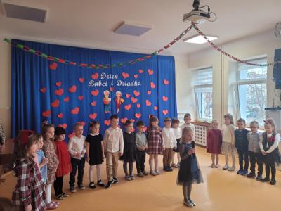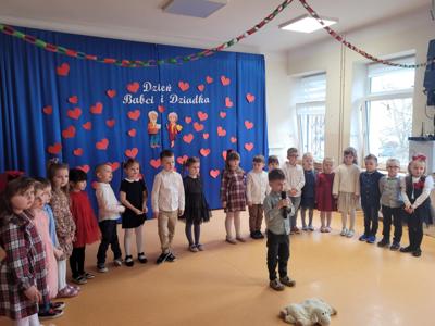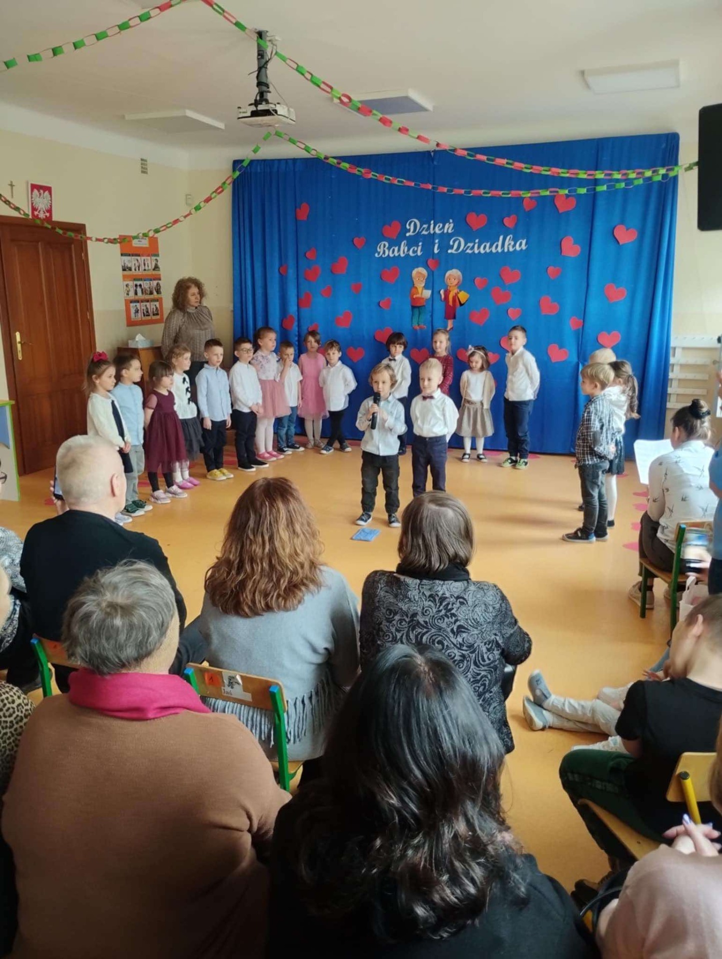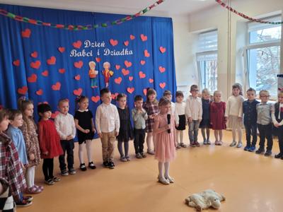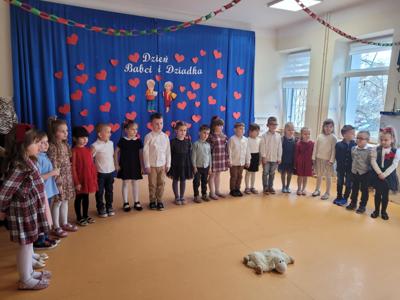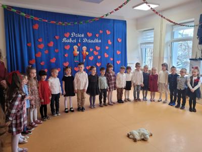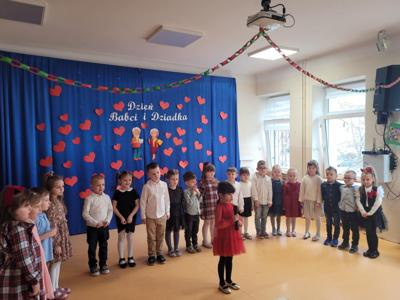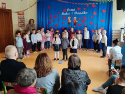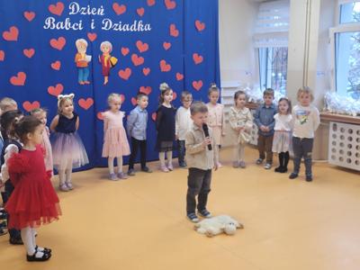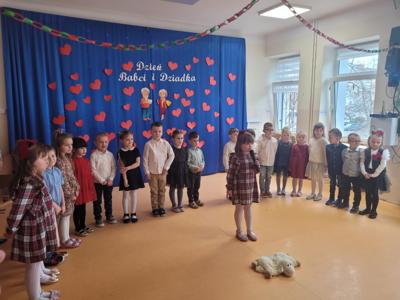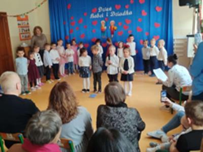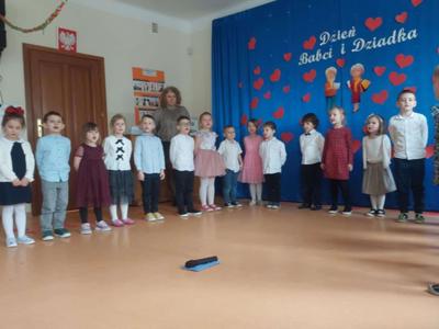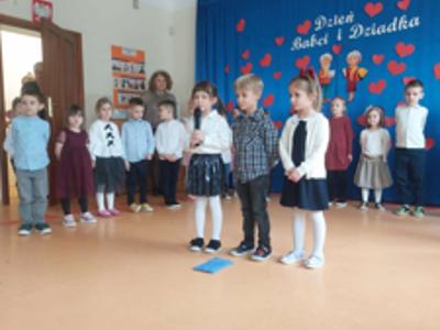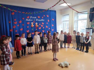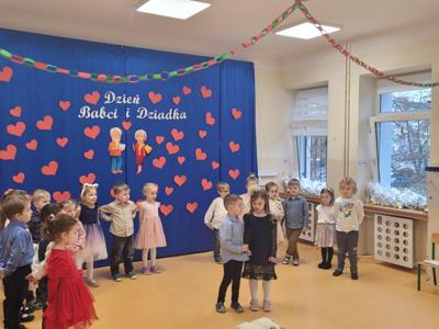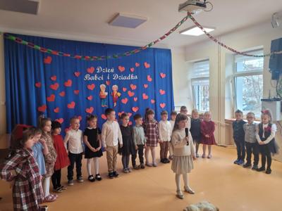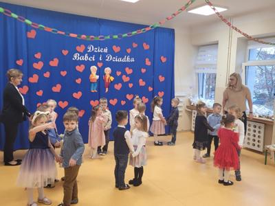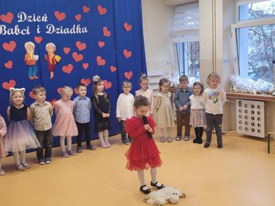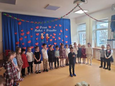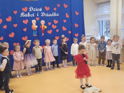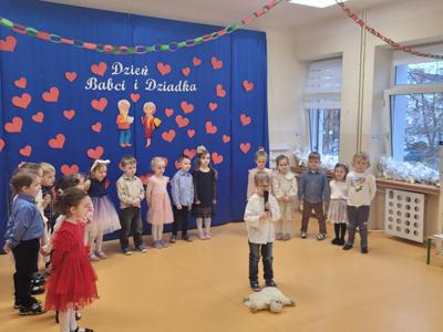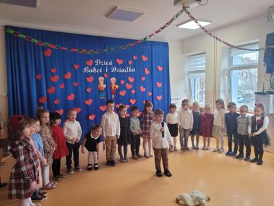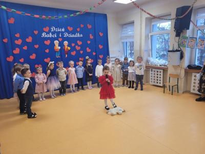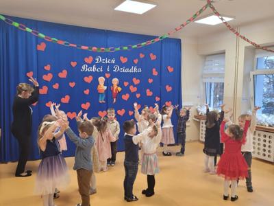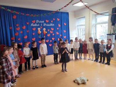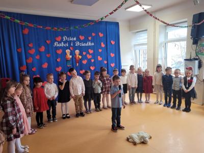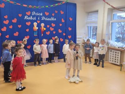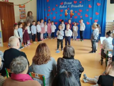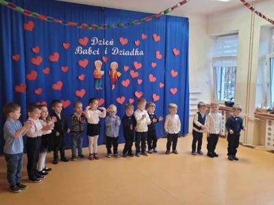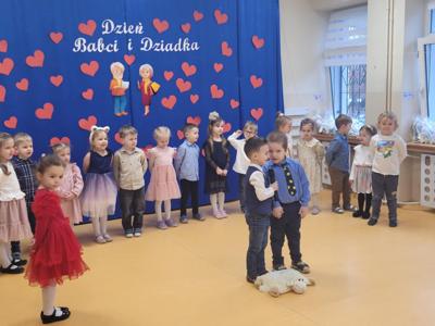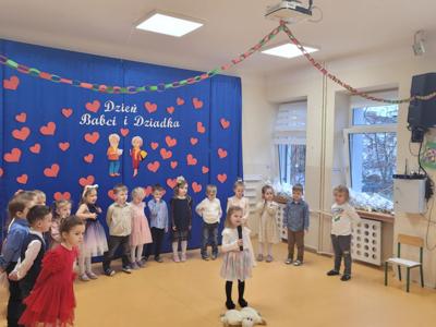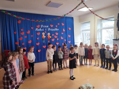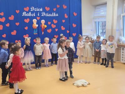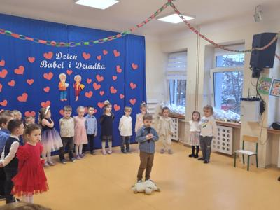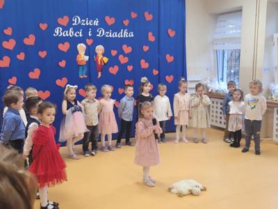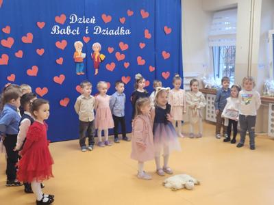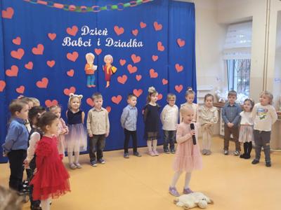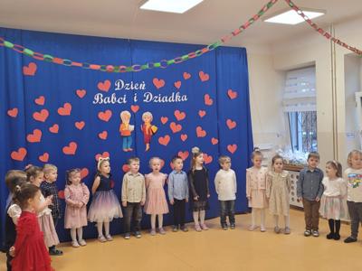 Uroczystość rozpoczęła życzeniami dla przybyłych gości Pani Dyrektor. Następnie przedszkolaki pod czujnym okiem pań zaprezentowały wiersze, piosenki oraz tańce, które ćwiczyły na tą uroczystość. W przepięknej scenografii oraz wyjątkowej atmosferze, wnuczęta wspaniale wystąpiły przed bliskimi. Następnie przedszkolaki zaprosiły babcie i dziadków na słodki poczęstunek przygotowany przez rodziców, aby w szczególny sposób okazać swoim bliskim szacunek i po raz kolejny podziękować za miłość, cierpliwość i zrozumienie.