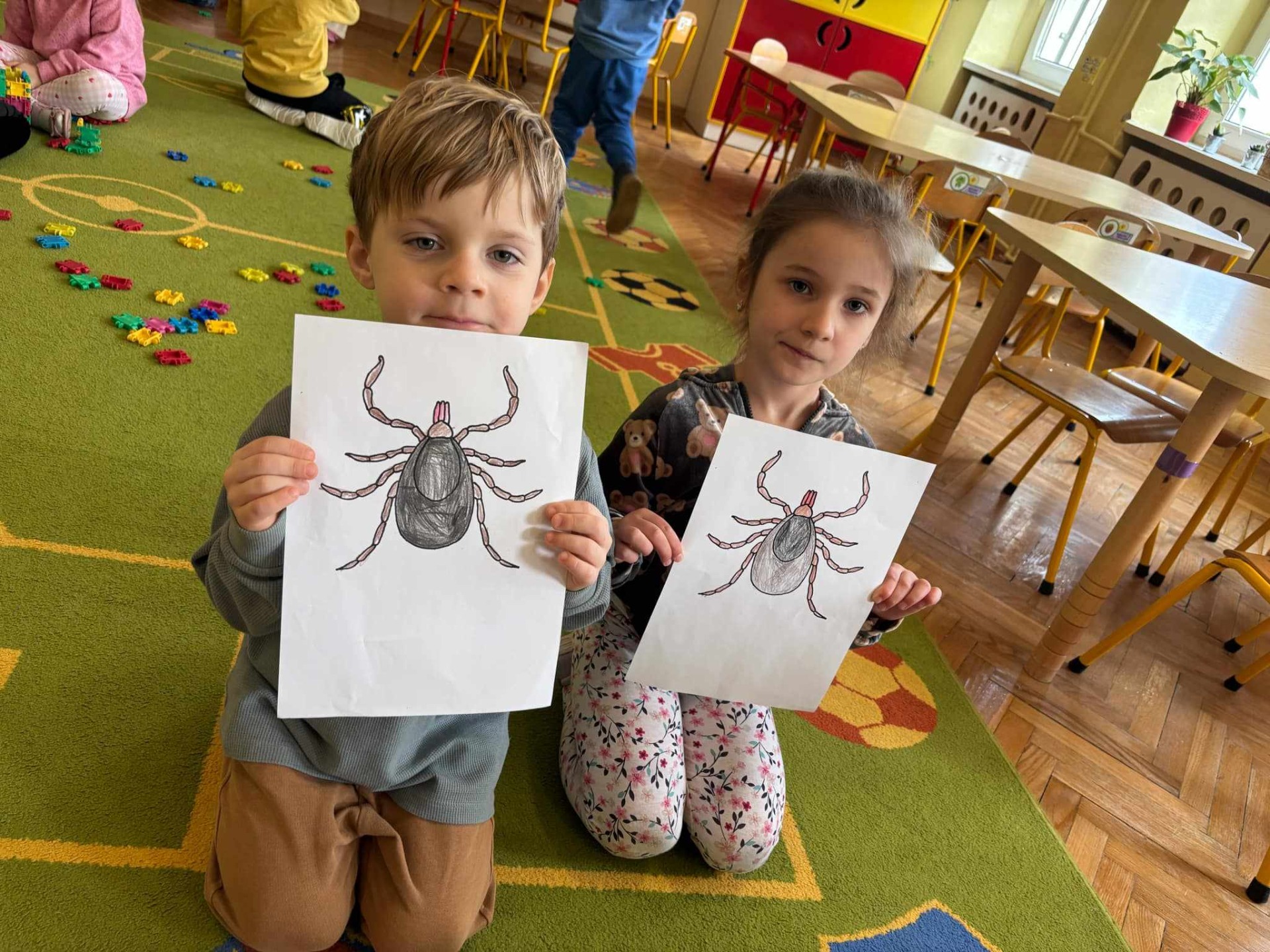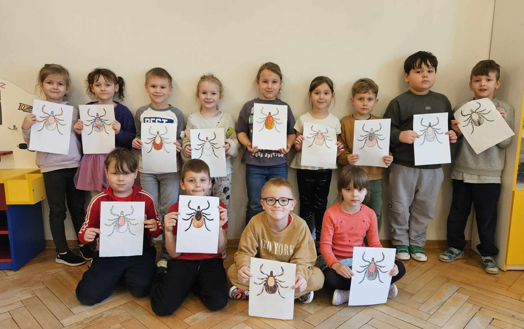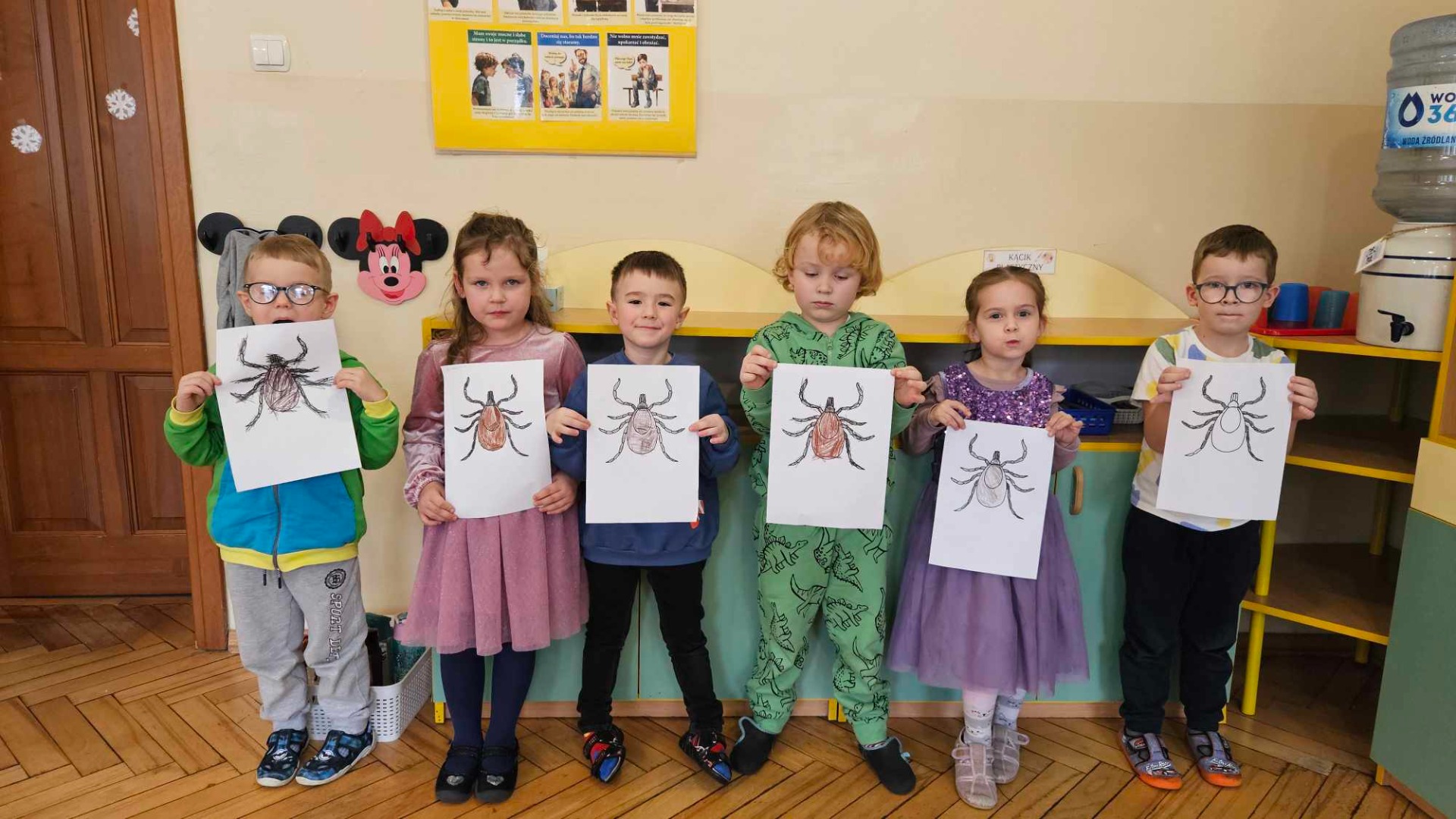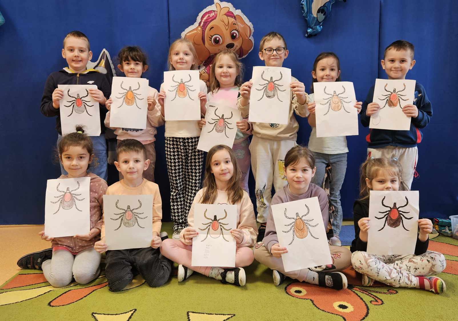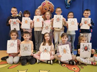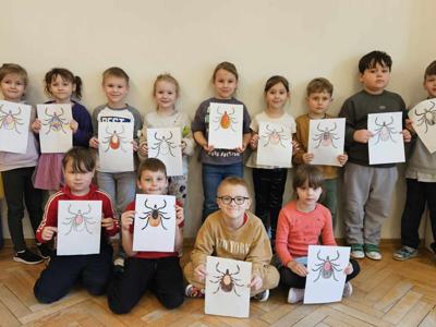Kleszcze to pajęczaki, które przenoszą groźne choroby, m.in. boreliozę czy kleszczowe zapalenie mózgu. Ich liczba z roku na rok się zwiększa, a co za tym idzie istnieje większe ryzyko ukąszenia przez kleszcze. Dlatego też prowadzimy działania edukacyjno-informacyjne w zakresie ochrony zdrowia i profilaktyki w kierunku chorób przenoszonych przez te pajęczaki. Program „Chroń się przed kleszczami wszystkimi sposobami!” nasze przedszkole realizuje we współpracy z Powiatową Stacją Sanitarno-Epidemiologiczną w Grójcu. Program ten odniósł w naszej placówce ogromny sukces, ciesząc się dużą aprobatą ze strony dzieci oraz przyczyniając się do wzrostu poziomu ich wiedzy na temat kleszczy jak i profilaktyki chorób odkleszczowych. Dzieci poznały, co to są kleszcze, gdzie występują, jakie są sposoby przenoszenia się kleszczy na zwierzęta i ludzi oraz jakie choroby mogą przenosić kleszcze. Ponadto dowiedziały się o metodach zabezpieczenia się przed wszczepieniem się kleszcza w ciało człowieka, miejscach na ciele człowieka, najbardziej narażonych na ugryzienie przez kleszcza oraz podstawowych zasadach postępowania po ugryzieniu przez kleszcza.