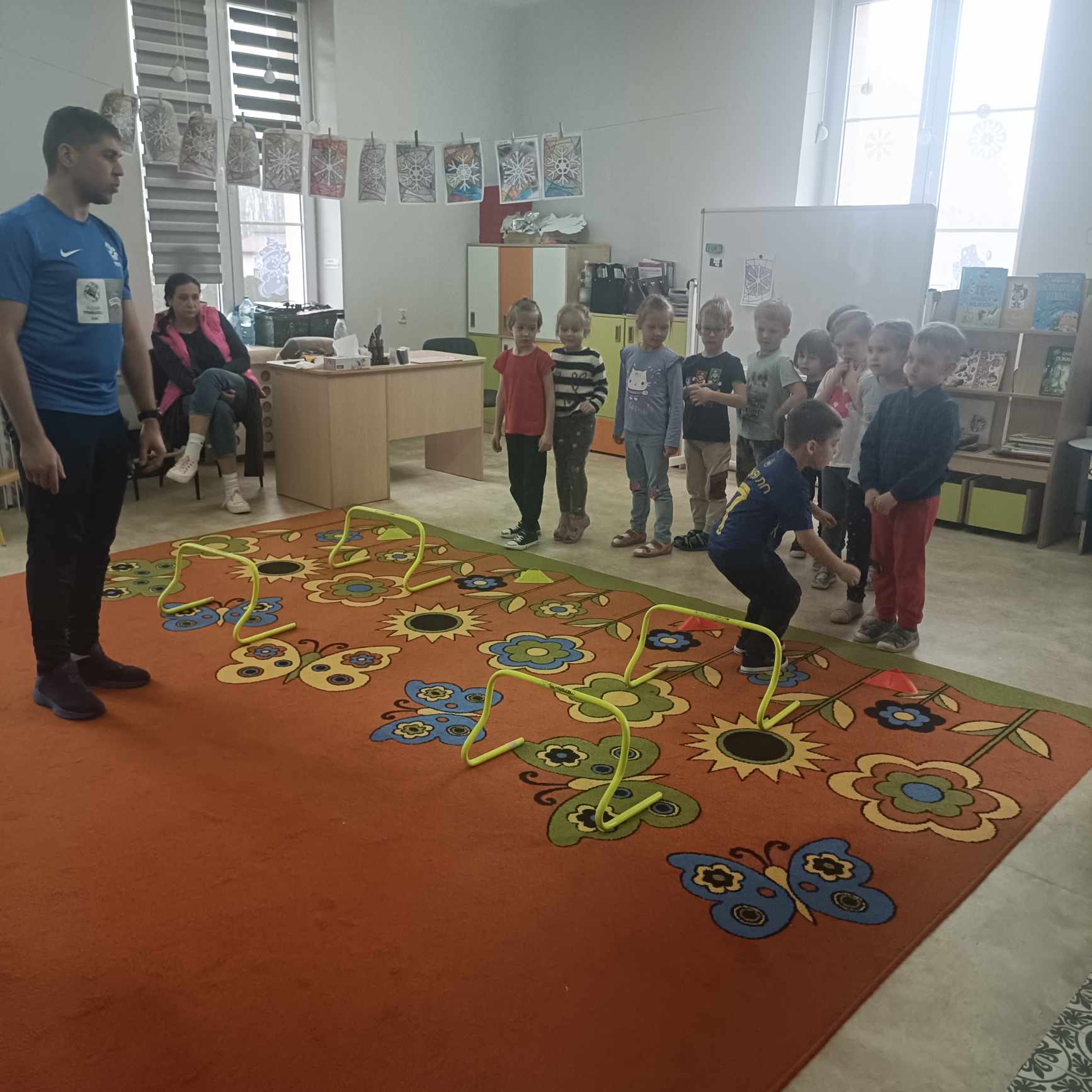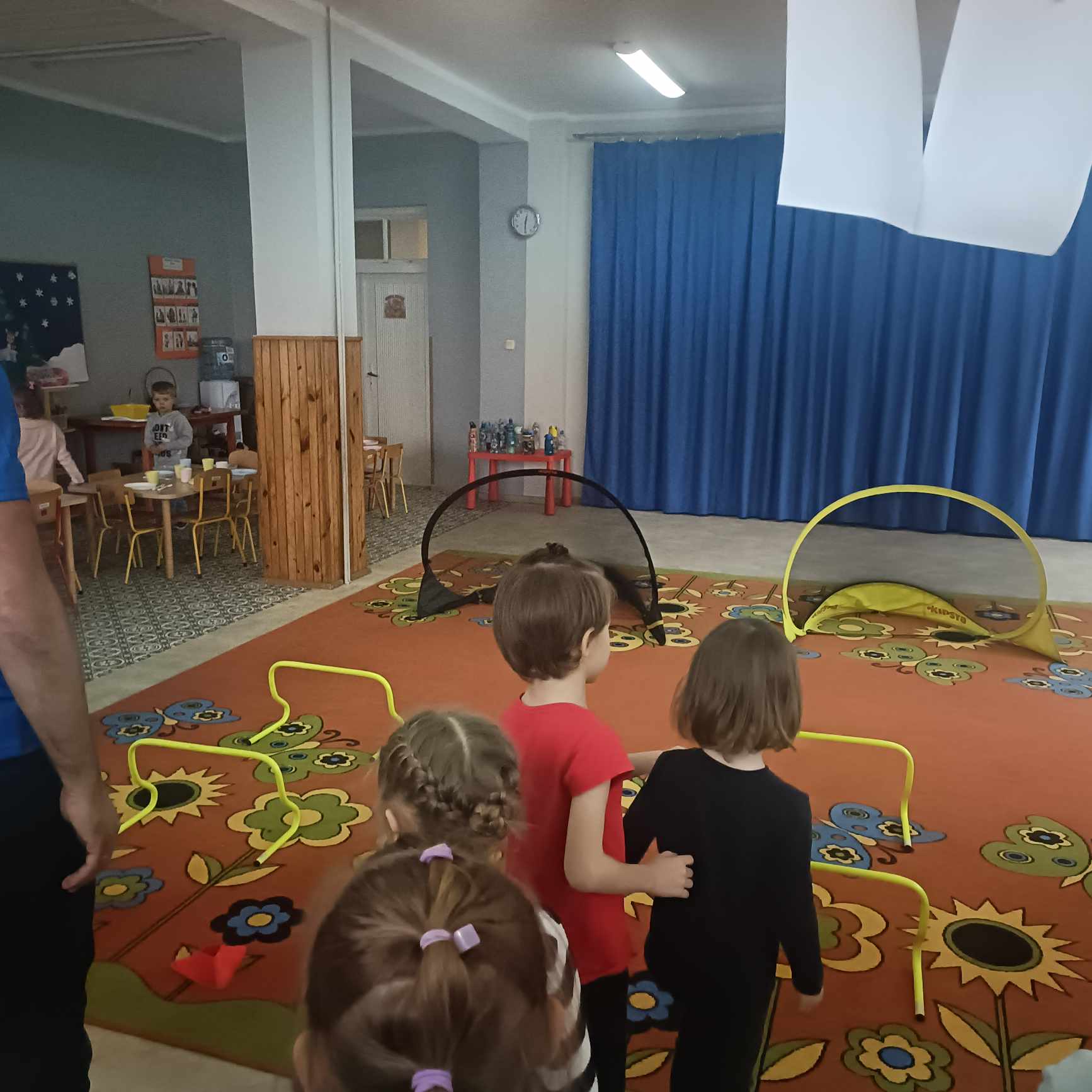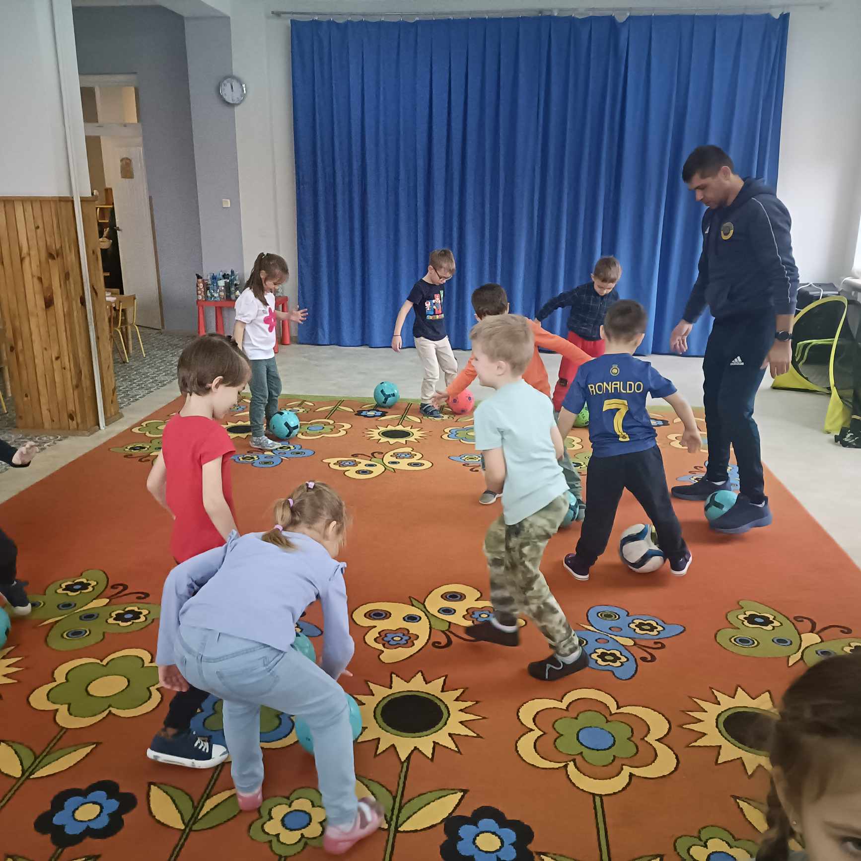 Podczas spotkania dzieci miały okazję aktywnie uczestniczyć w rozgrzewce, ćwiczyć koordynację ruchową oraz doskonalić podstawowe umiejętności piłkarskie w formie zabawy. Nie zabrakło także gier zespołowych, które uczyły współpracy, zdrowej rywalizacji i radości z ruchu.