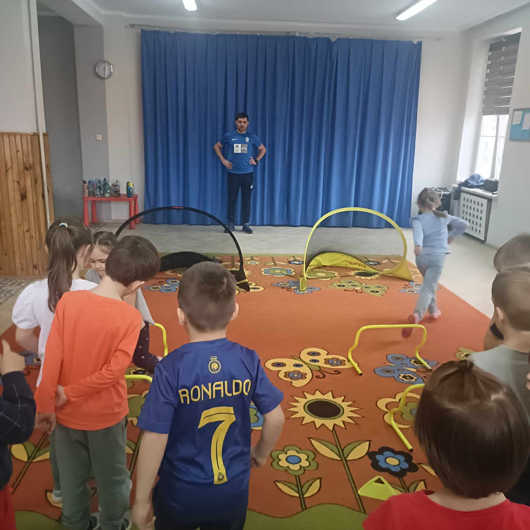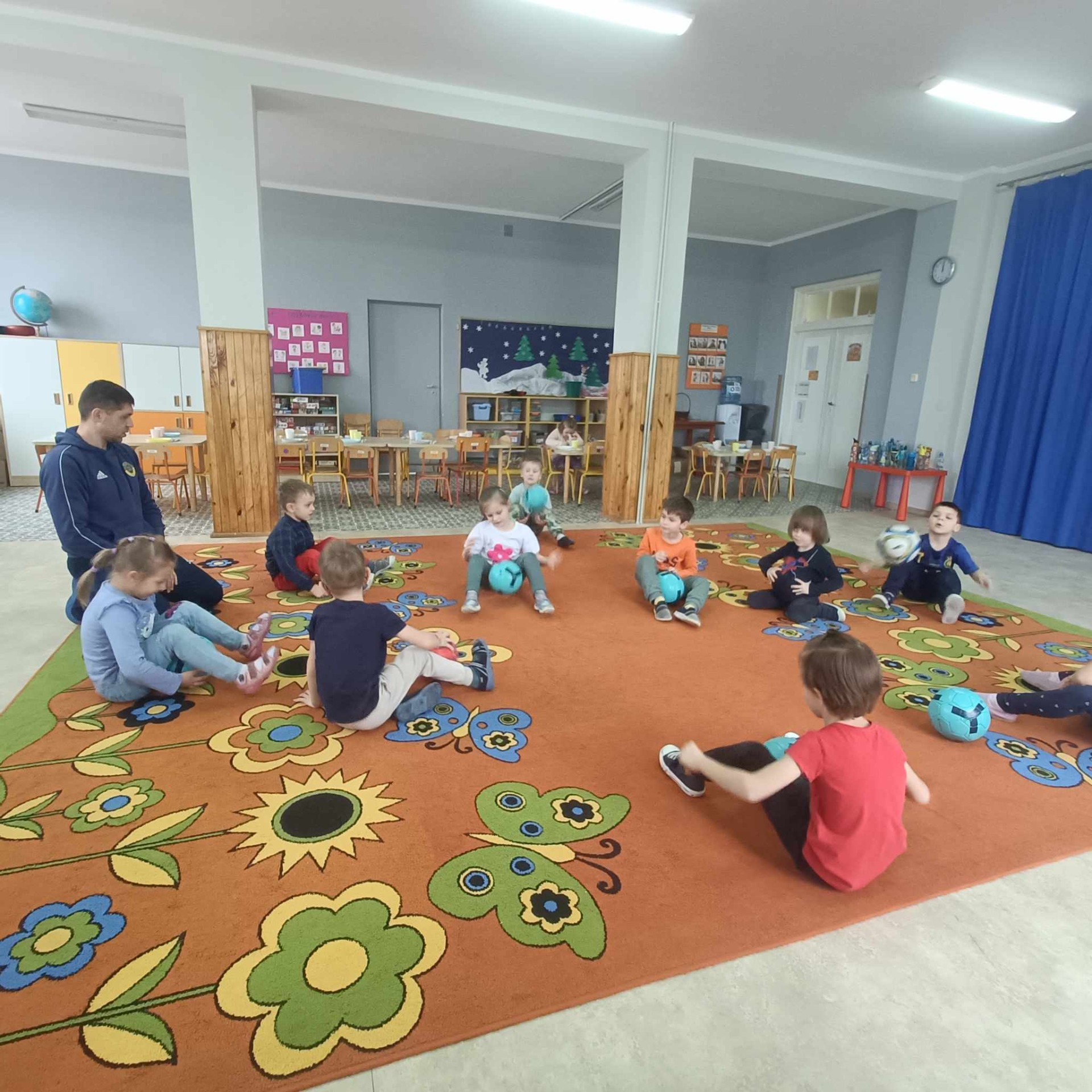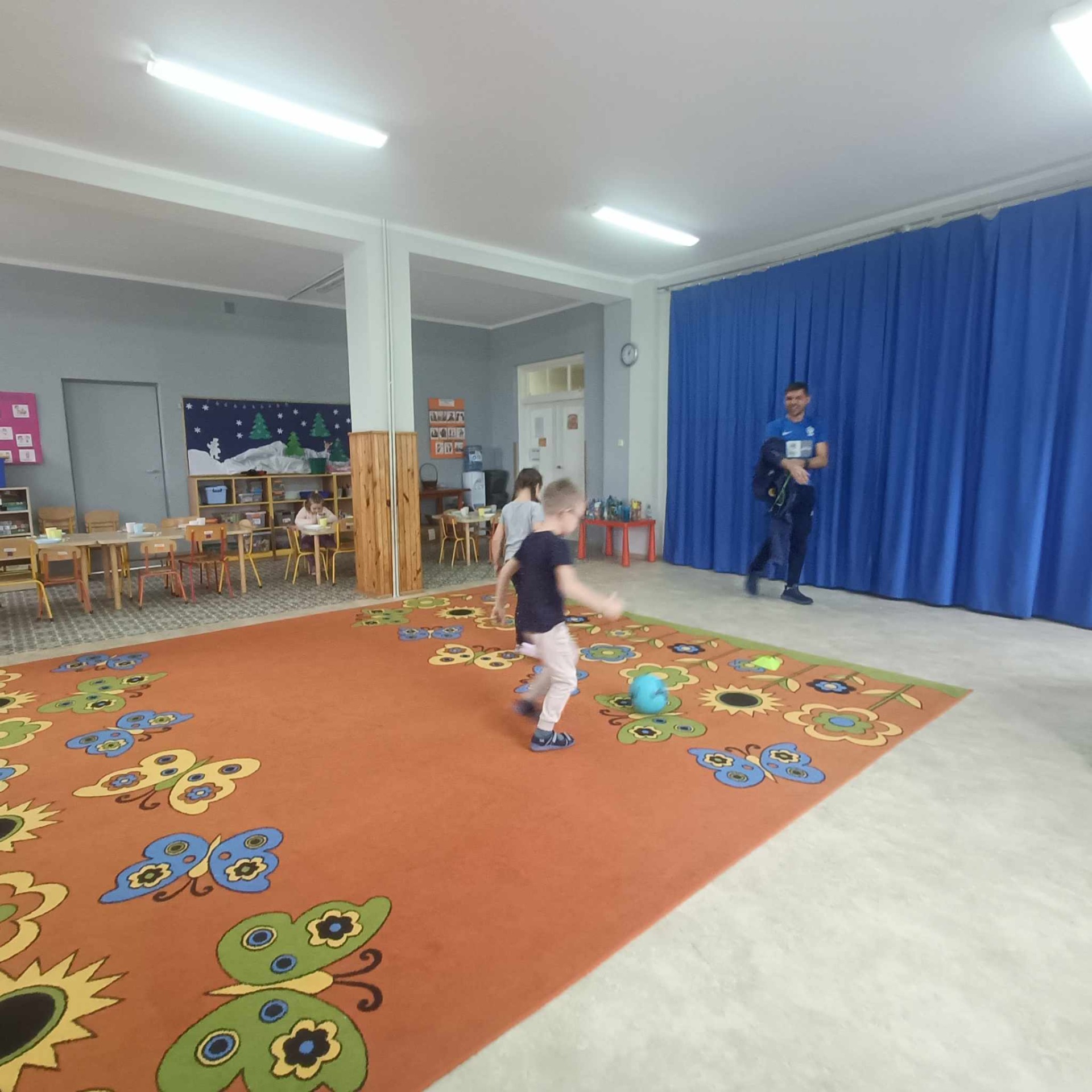 W naszym przedszkolu dbamy o wszechstronny rozwój dzieci, dlatego z ogromną radością gościliśmy jednego z rodziców – trenera piłki nożnej FC Mundialito, który poprowadził dla dzieci w grupie Myszki wyjątkowe zajęcia ruchowe.