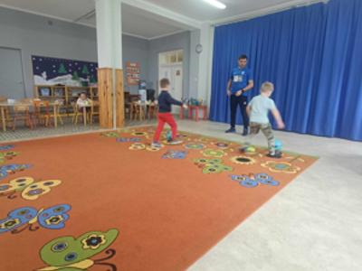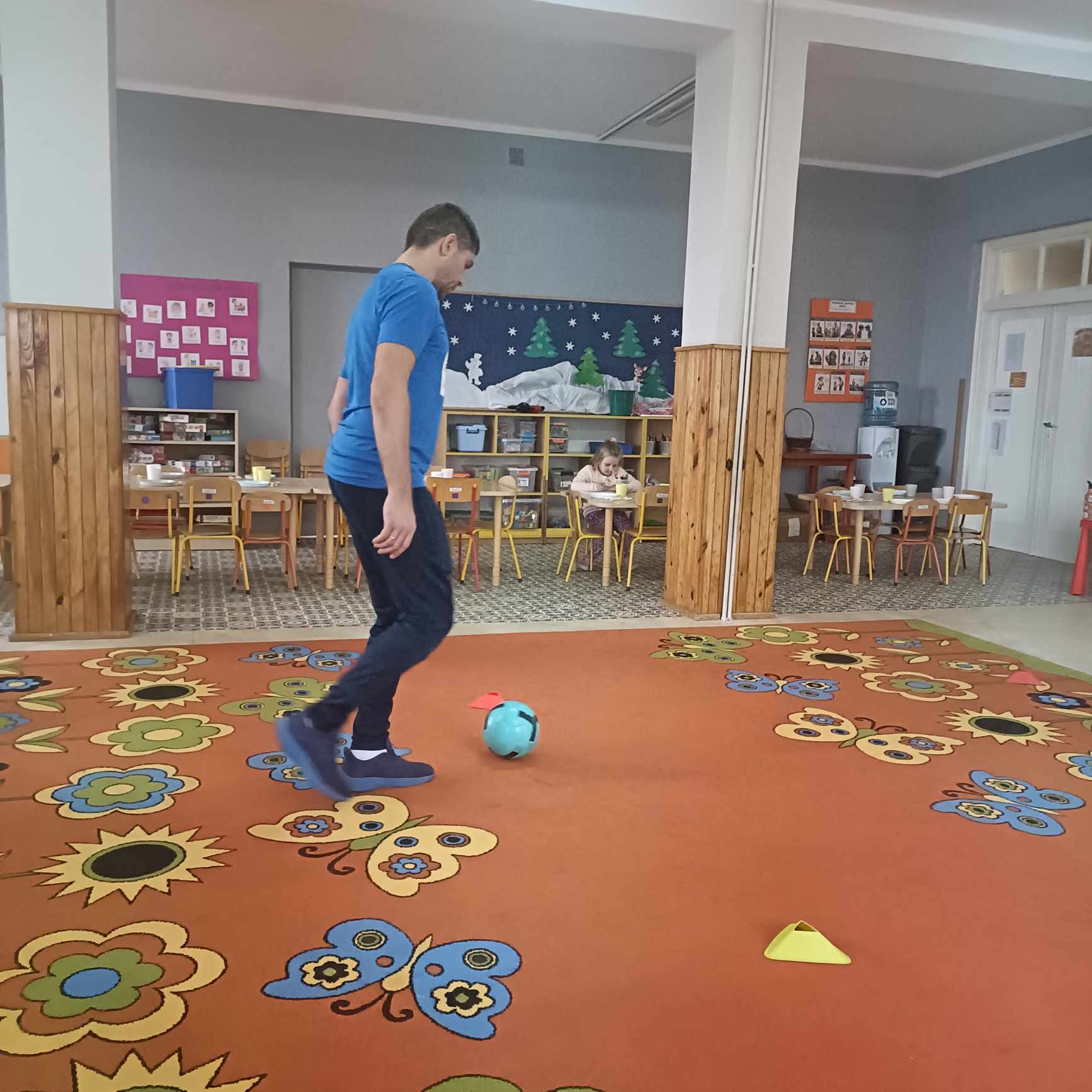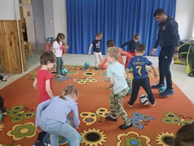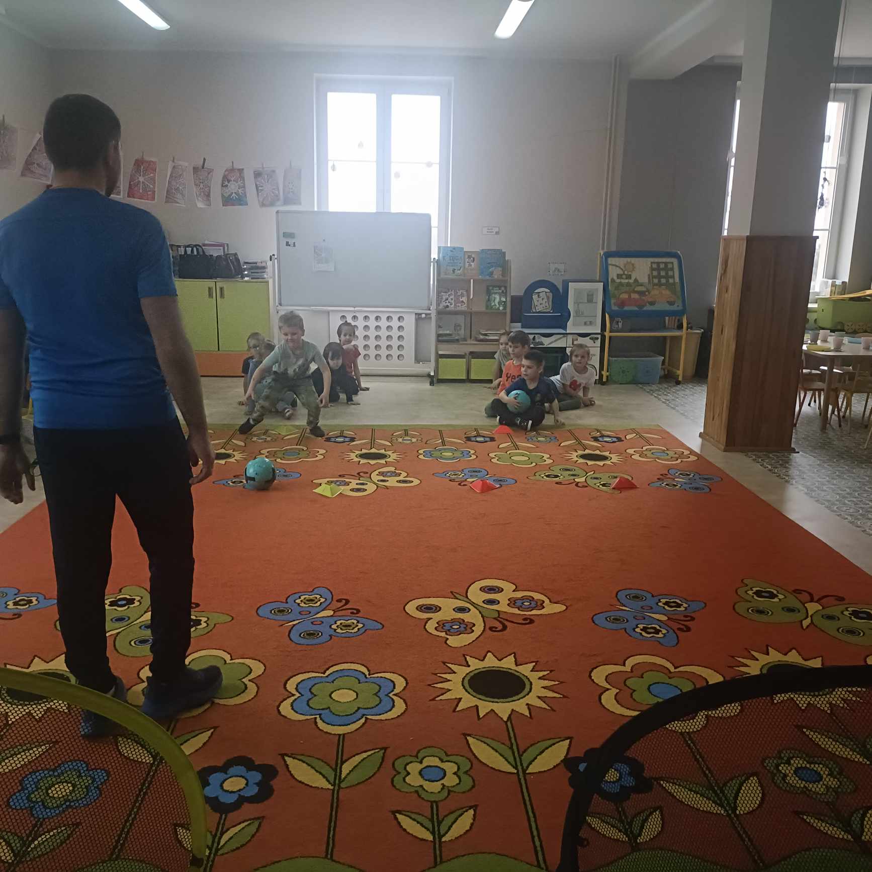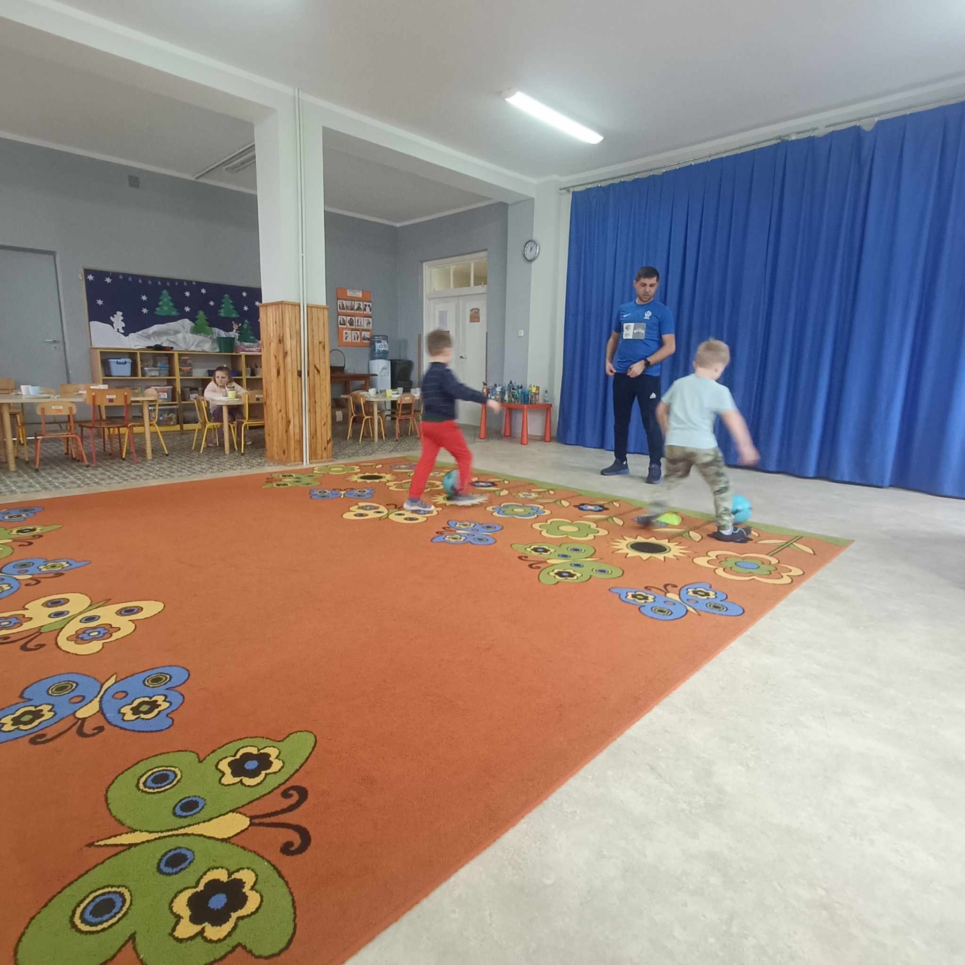 W naszym przedszkolu dbamy o wszechstronny rozwój dzieci, dlatego z ogromną radością gościliśmy jednego z rodziców – trenera piłki nożnej FC Mundialito, który poprowadził dla dzieci w grupie Myszki wyjątkowe zajęcia ruchowe.