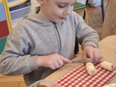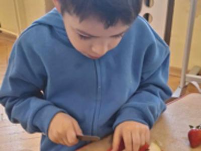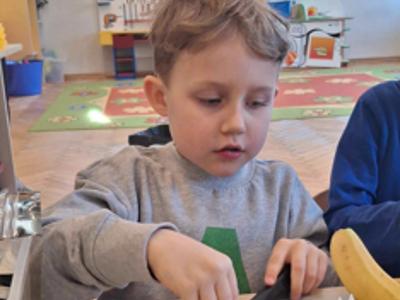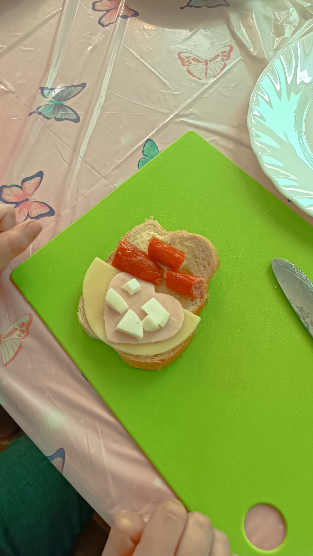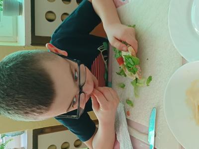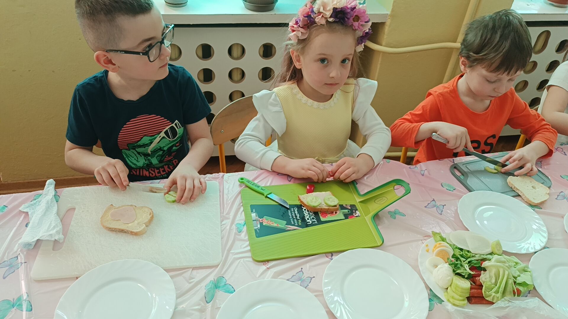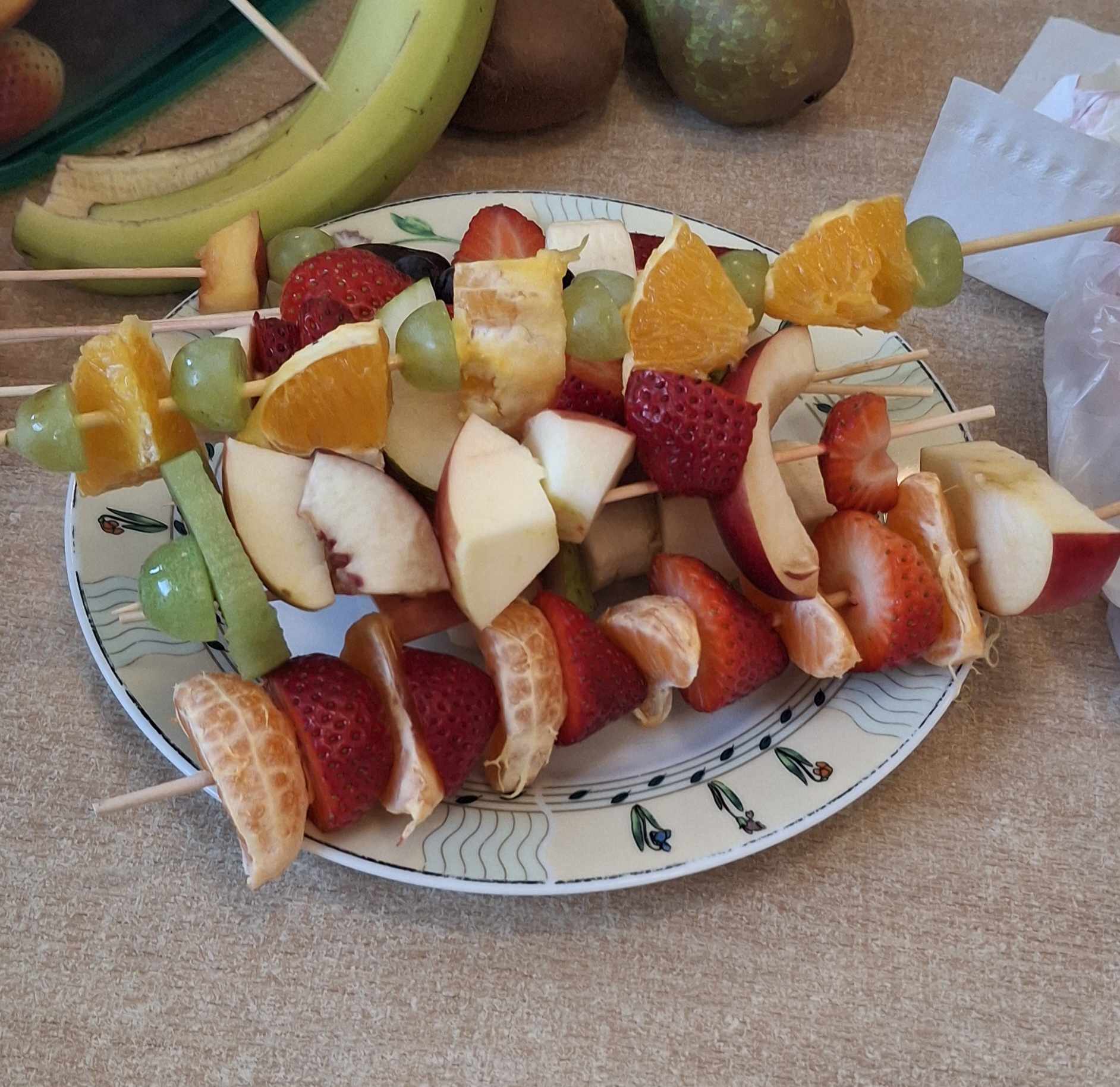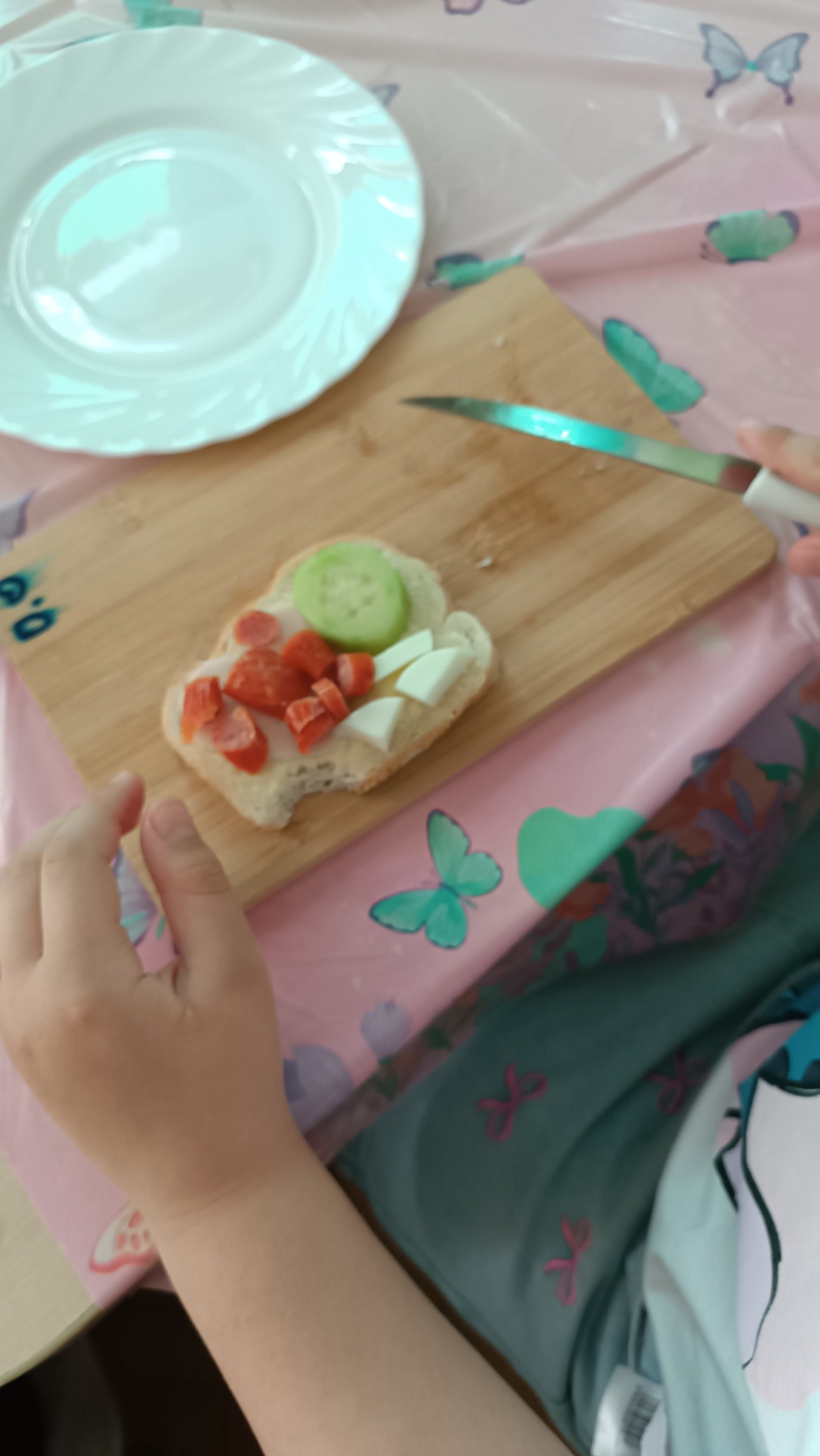 Dzieci z grupy Stokrotki oraz Biedronki w ramach rozmowy o zdrowym od偶ywianiu postanowi艂y samodzielne zrobi膰 pyszne, zdrowe kanapki oraz owocowe szasz艂yki. Najpierw dzieci pozna艂y korzy艣ci wynikaj膮ce ze spo偶ywania zdrowego jedzenia. Dowiedzia艂y si臋 jak wa偶na jest zbilansowana dieta, bogata w produkty zbo偶owe warzywa i owoce. Nast臋pnie przypomnia艂y sobie zasady bezpiecze艅stwa, kt贸rych nale偶y przestrzega膰 podczas pos艂ugiwania si臋 no偶em. Podczas robienia kanapek oraz szasz艂yk贸w kszta艂ci艂y odpowiednie nawyki 偶ywieniowe, rozwija艂y kreatywno艣膰, wyobra藕ni臋 oraz dba艂o艣膰 o higien臋.