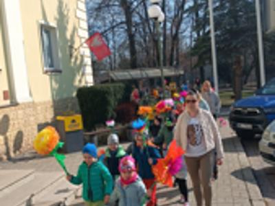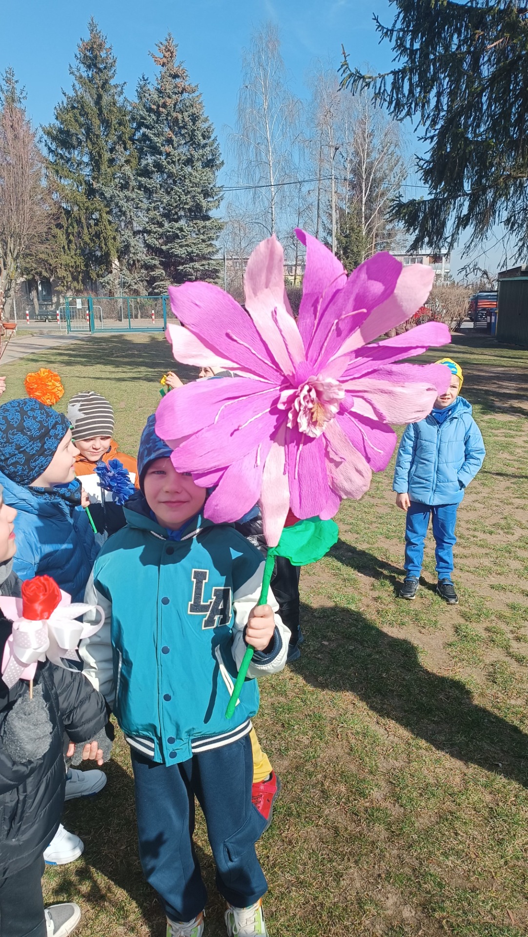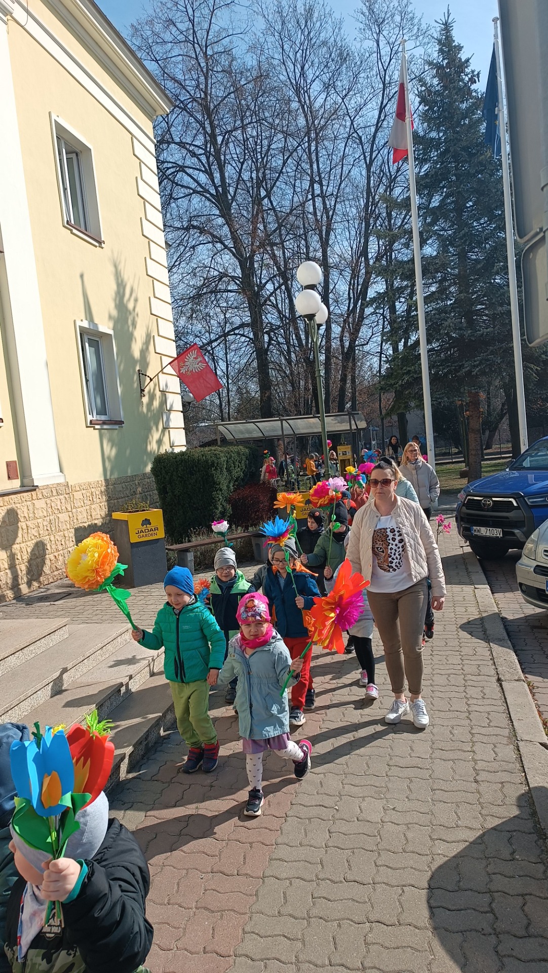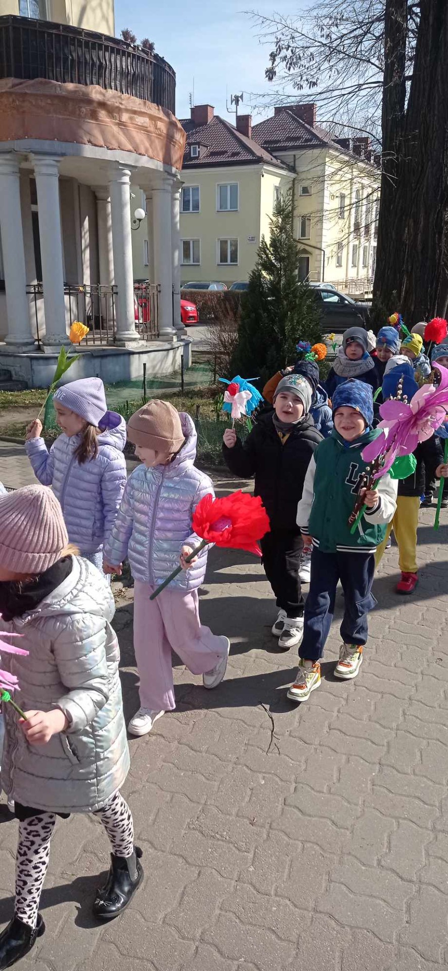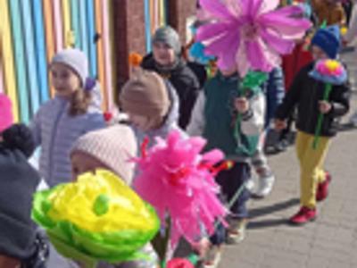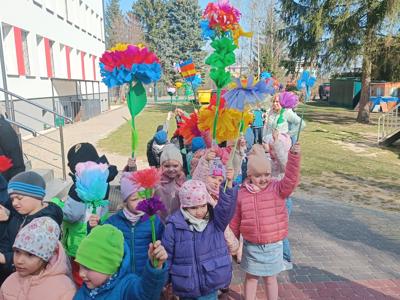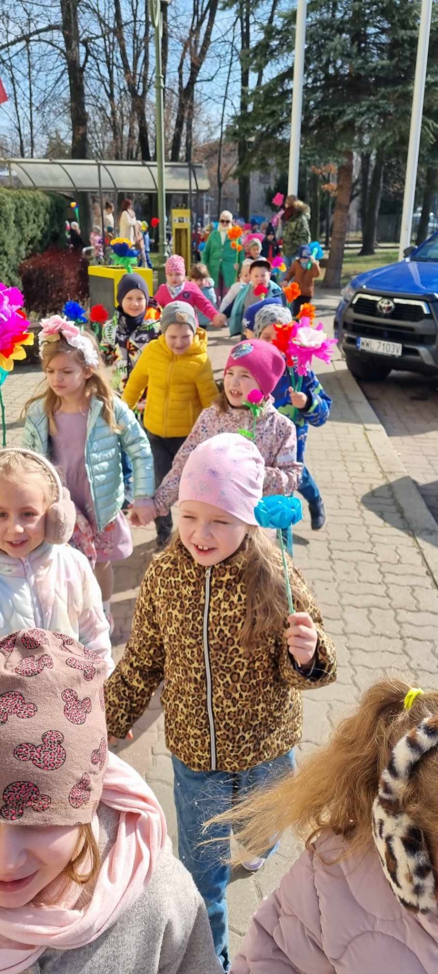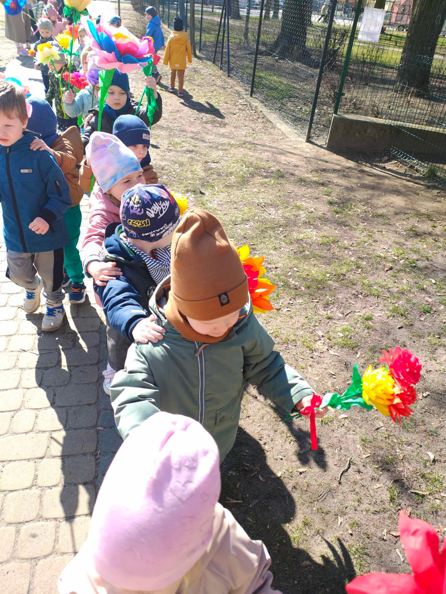 21 marca w pierwszy dzień kalendarzowej wiosny dzieci z wszystkich grup wyruszyły barwnym korowodem, aby powitać wiosnę.