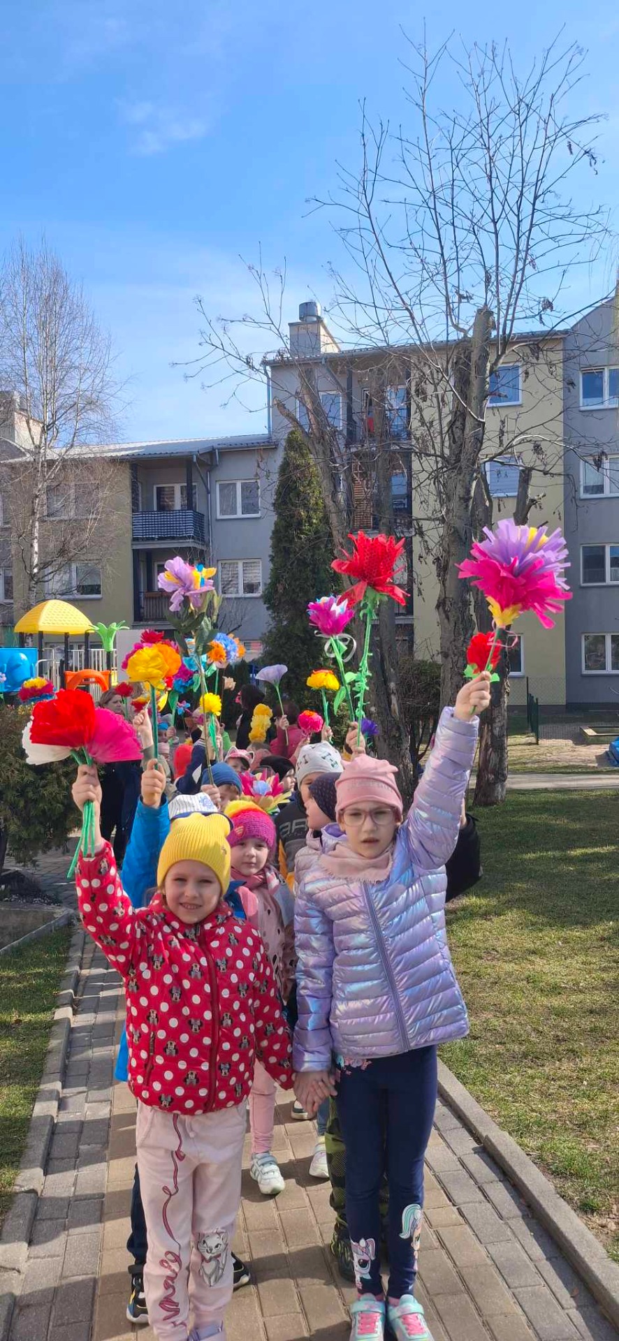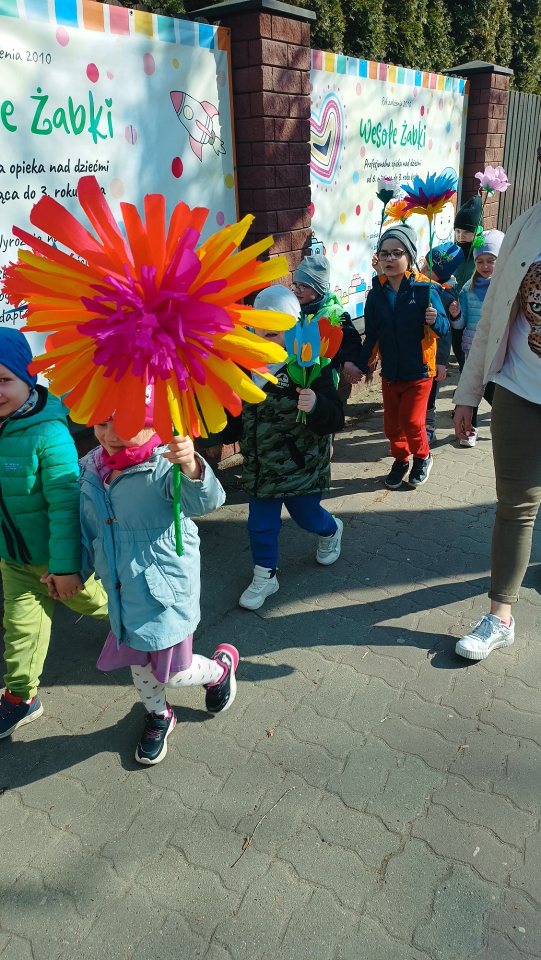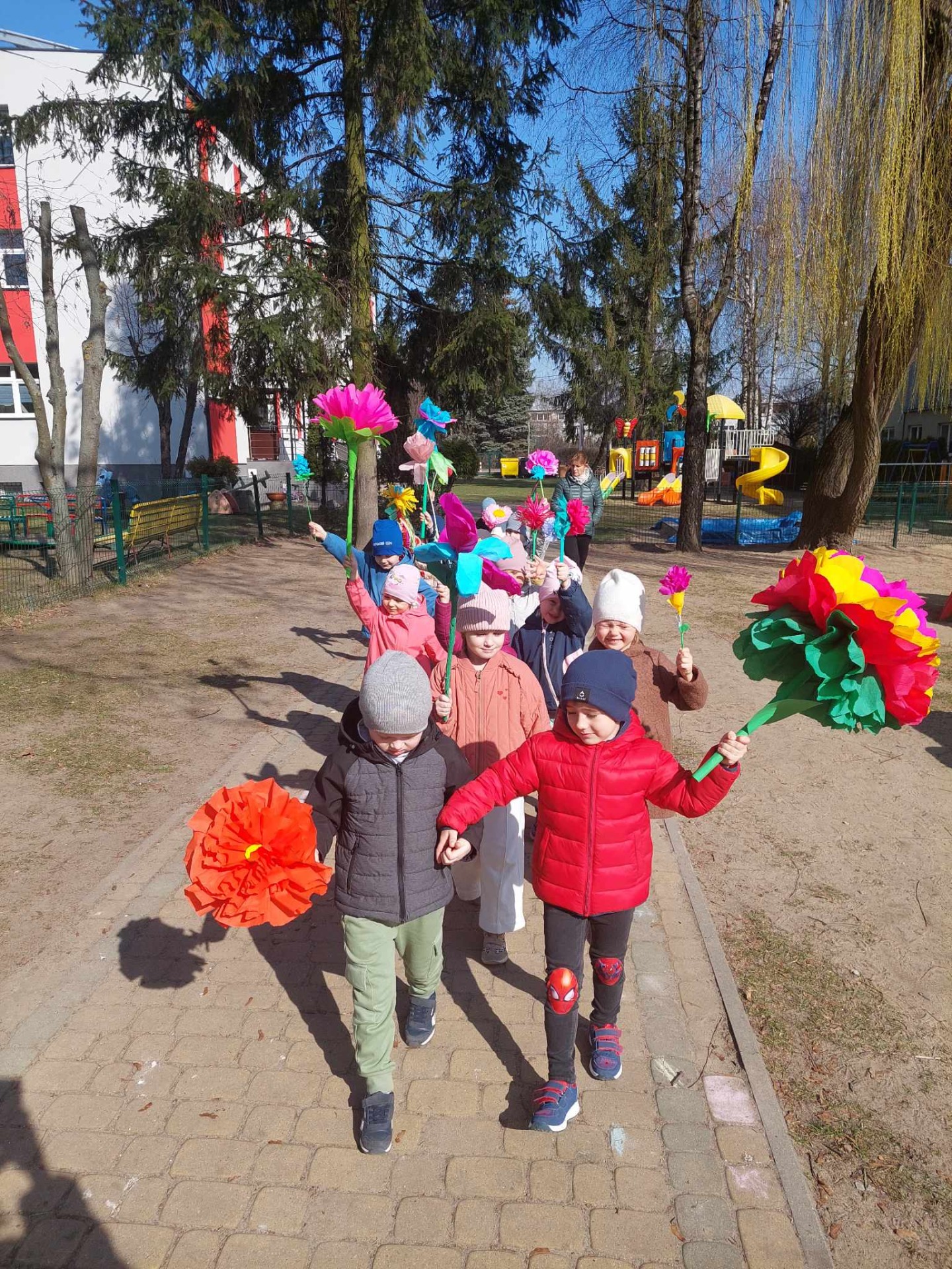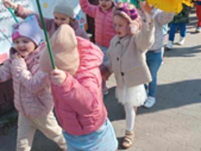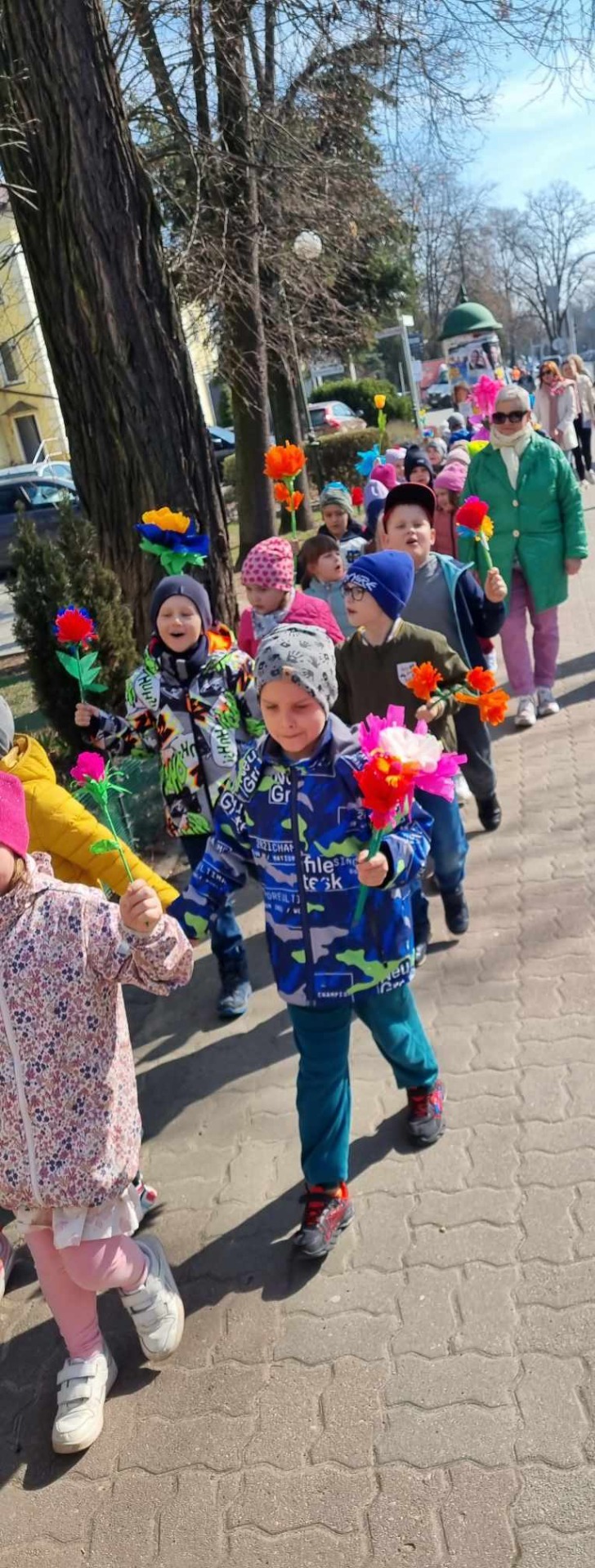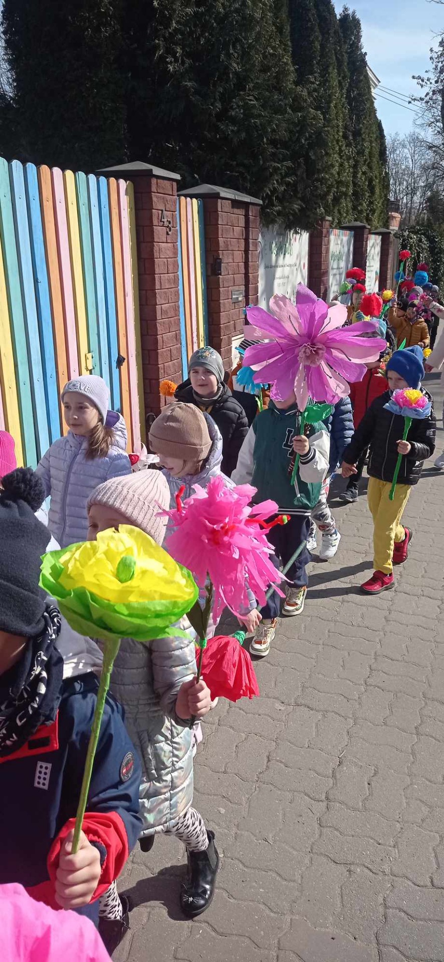 21 marca w pierwszy dzień kalendarzowej wiosny dzieci z wszystkich grup wyruszyły barwnym korowodem, aby powitać wiosnę.