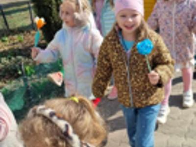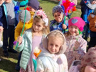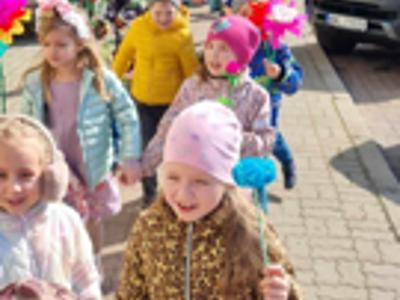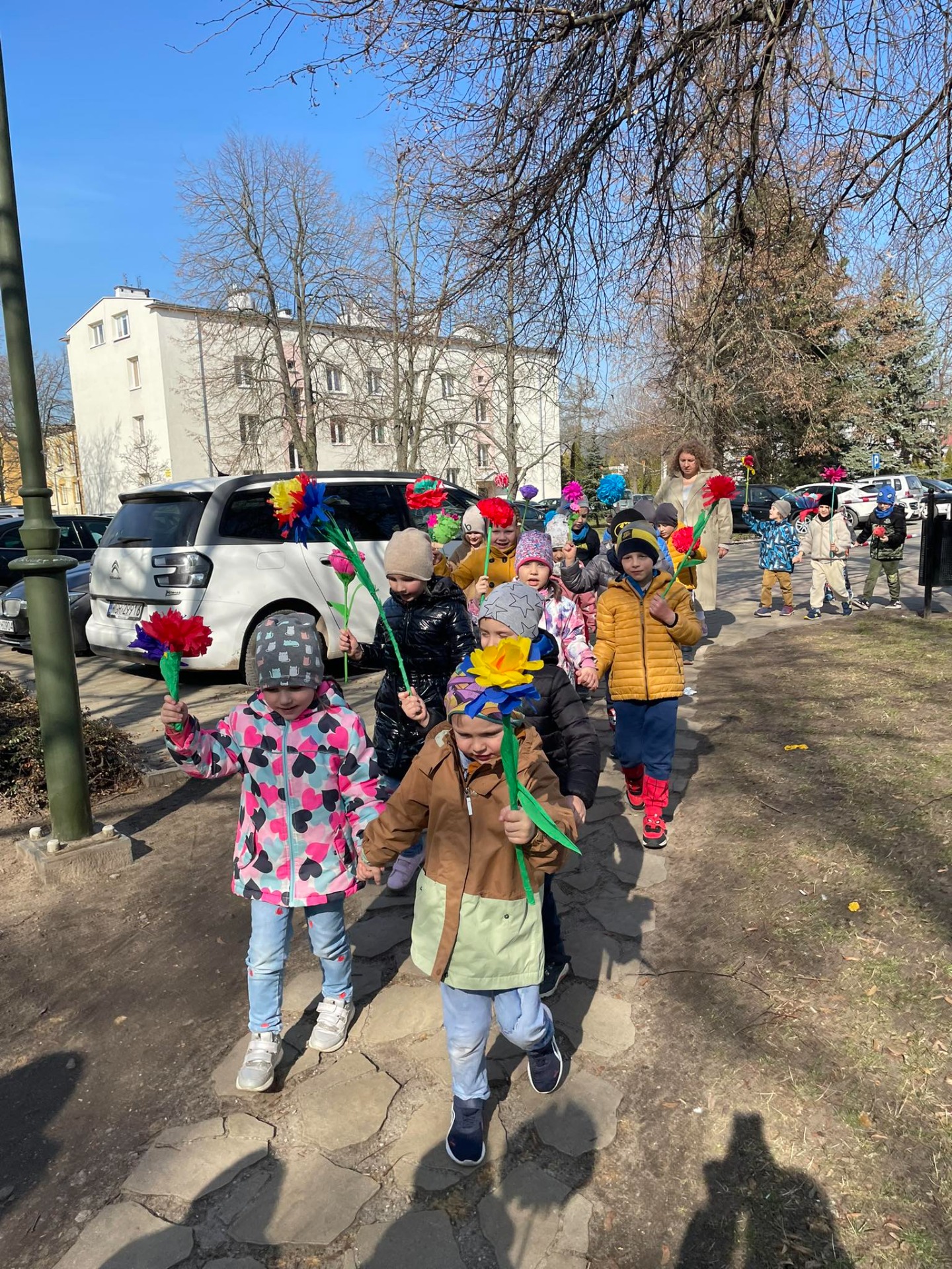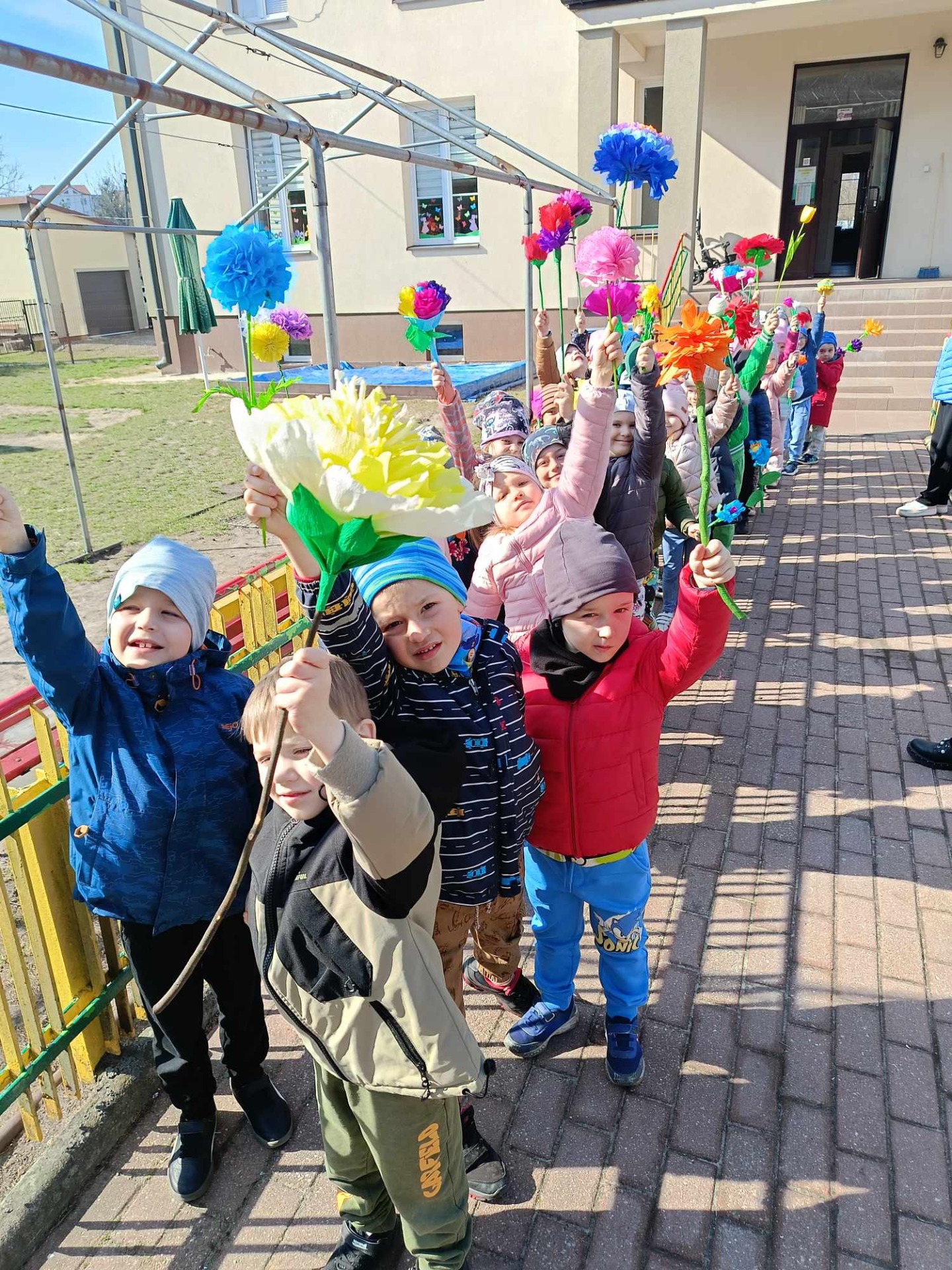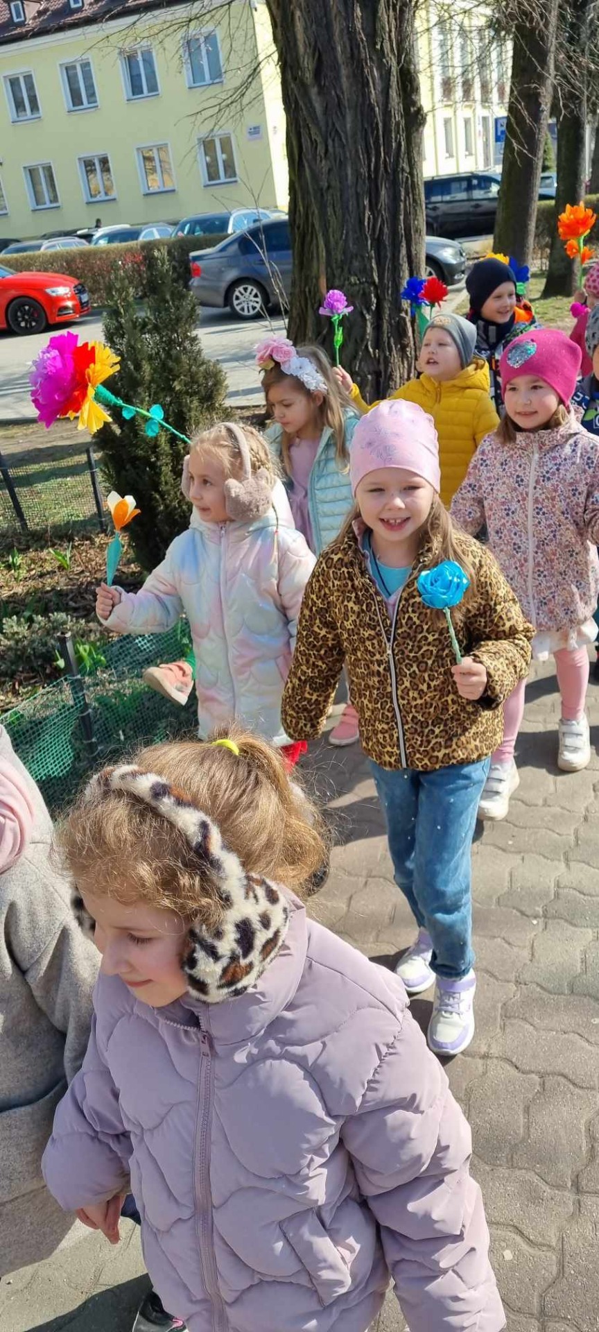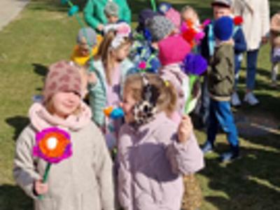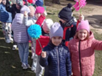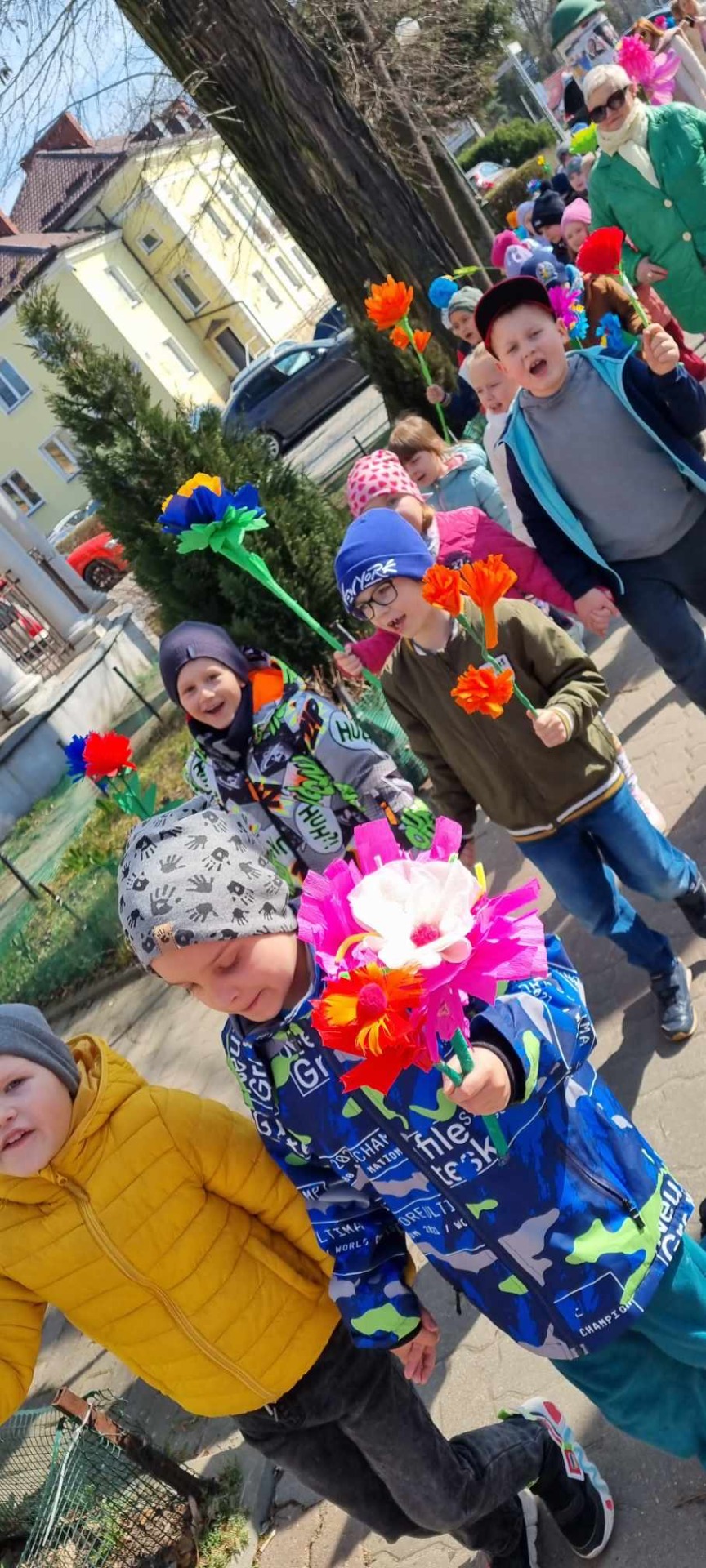 21 marca w pierwszy dzień kalendarzowej wiosny dzieci z wszystkich grup wyruszyły barwnym korowodem, aby powitać wiosnę.