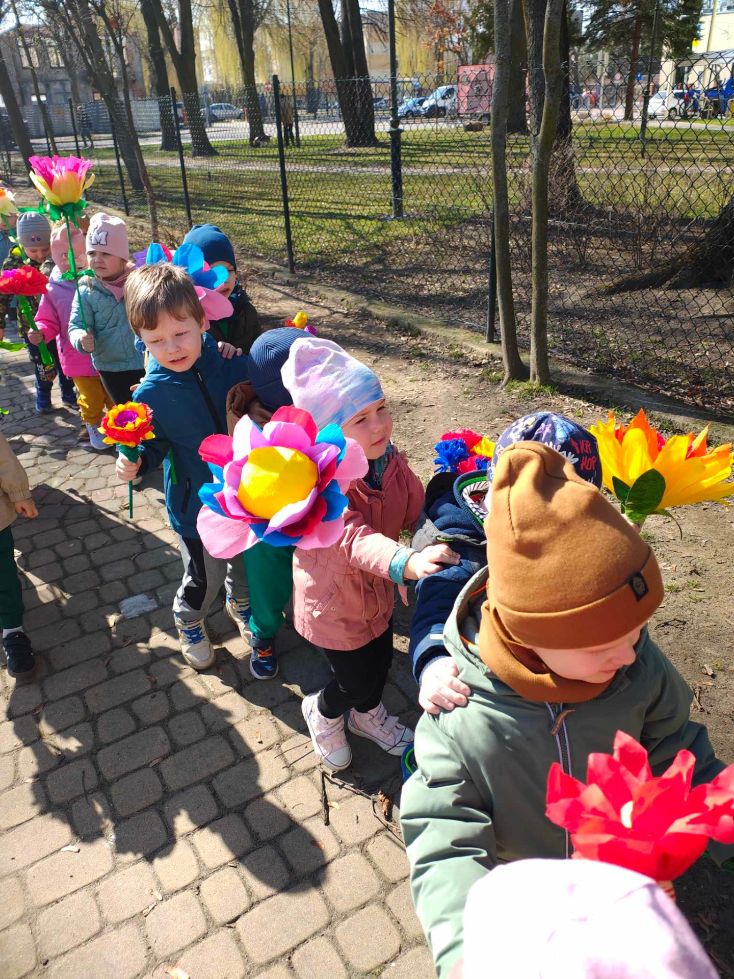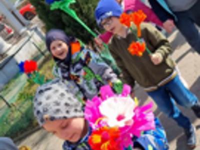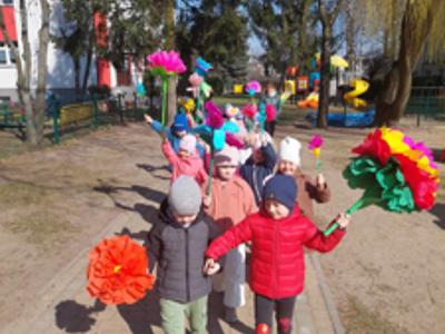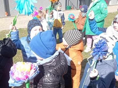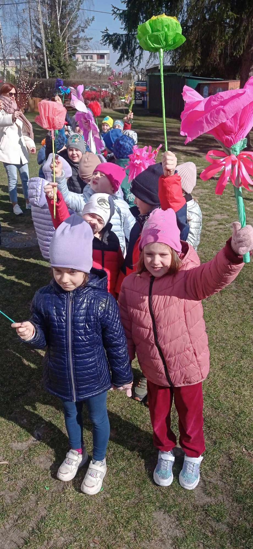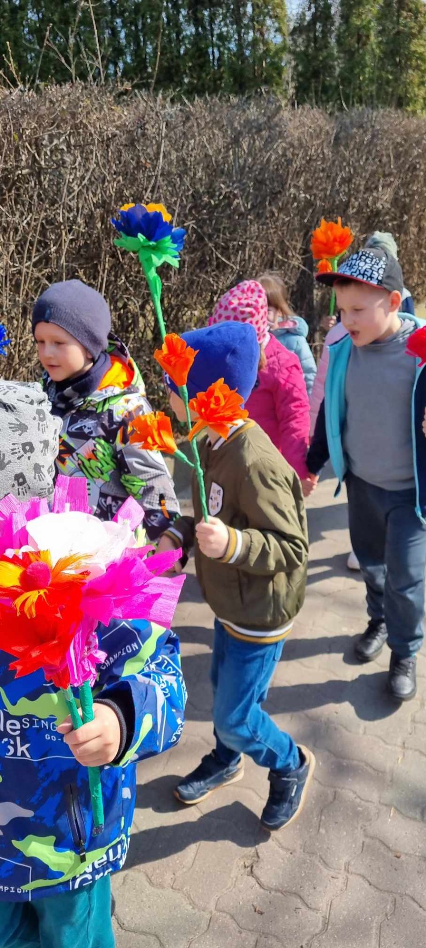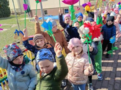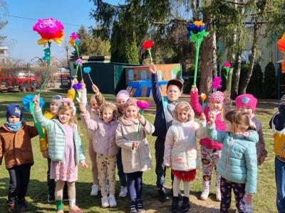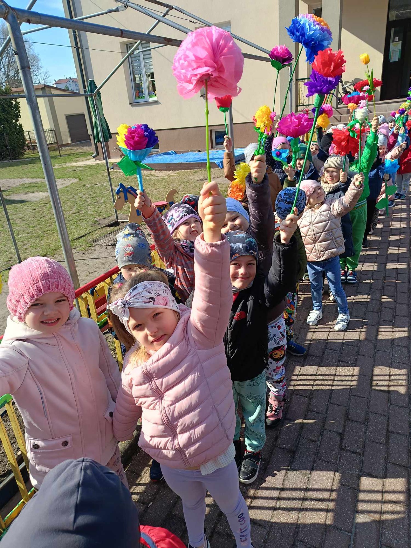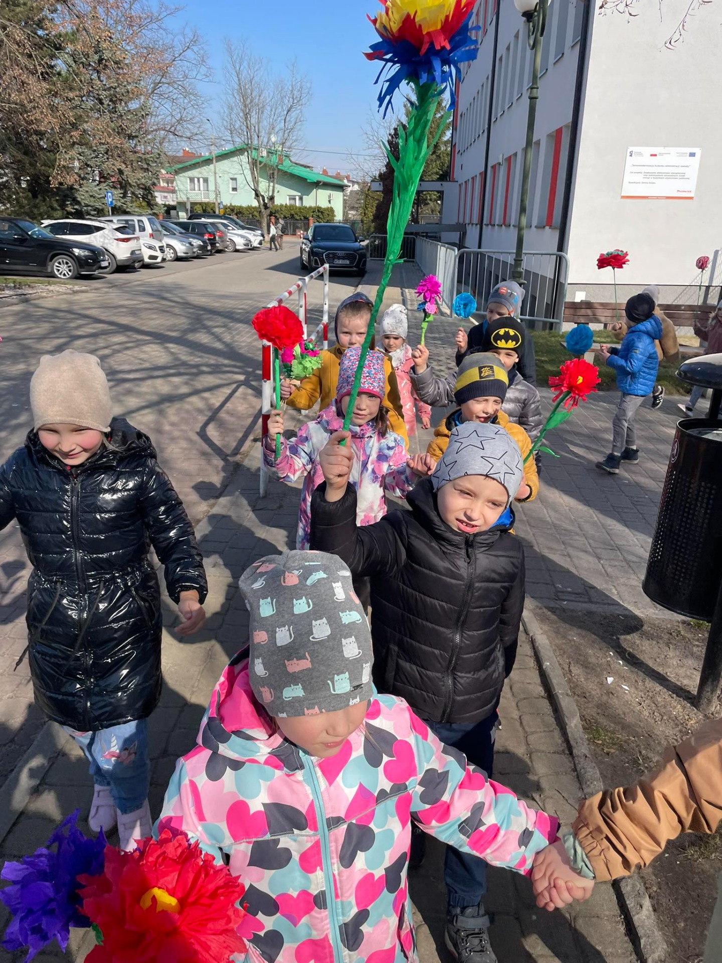 21 marca w pierwszy dzień kalendarzowej wiosny dzieci z wszystkich grup wyruszyły barwnym korowodem, aby powitać wiosnę.