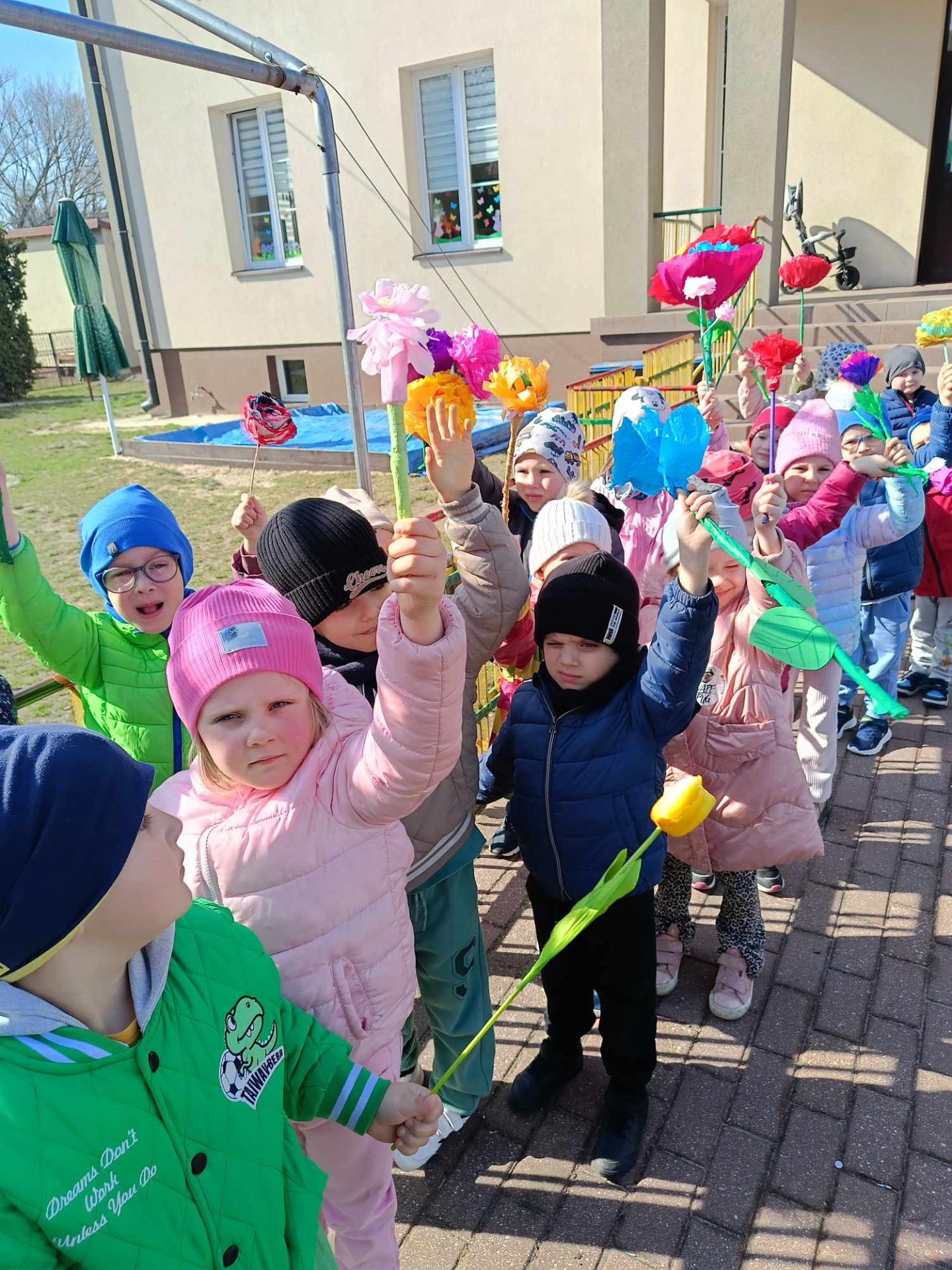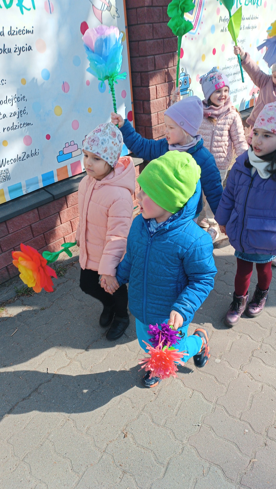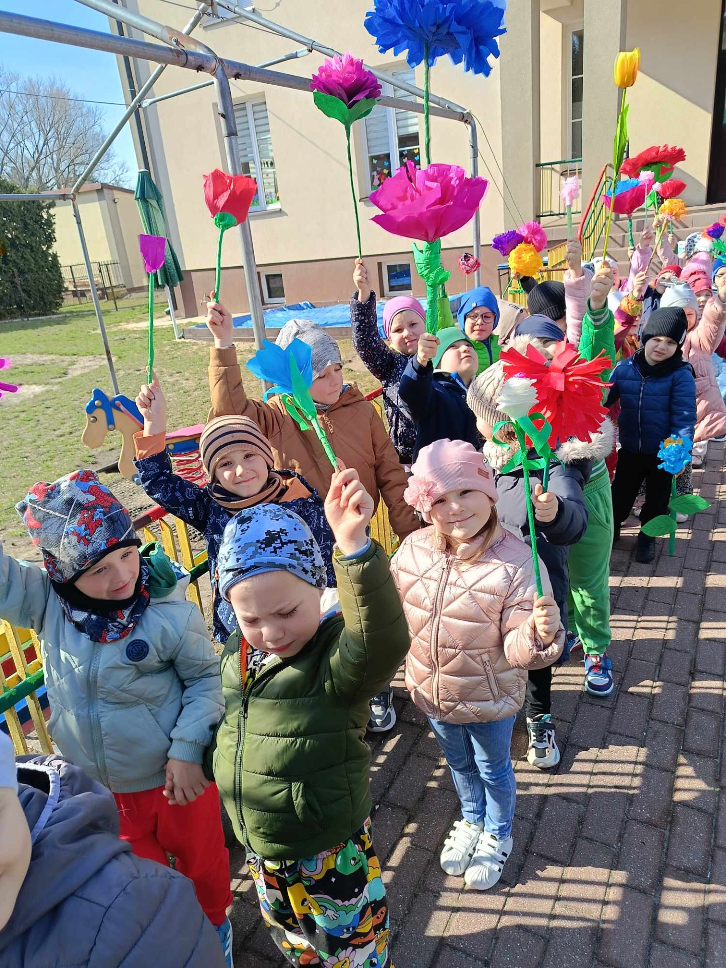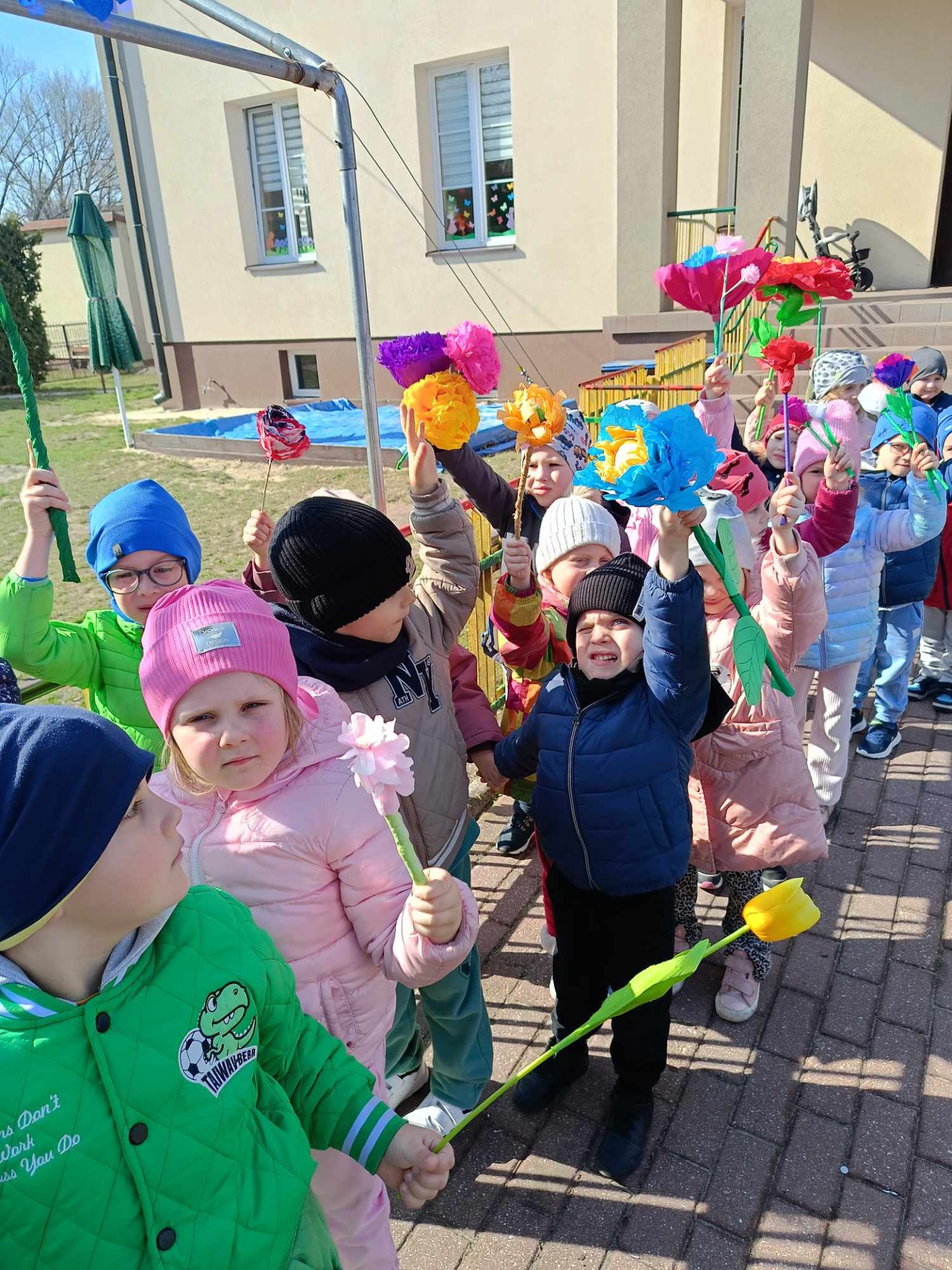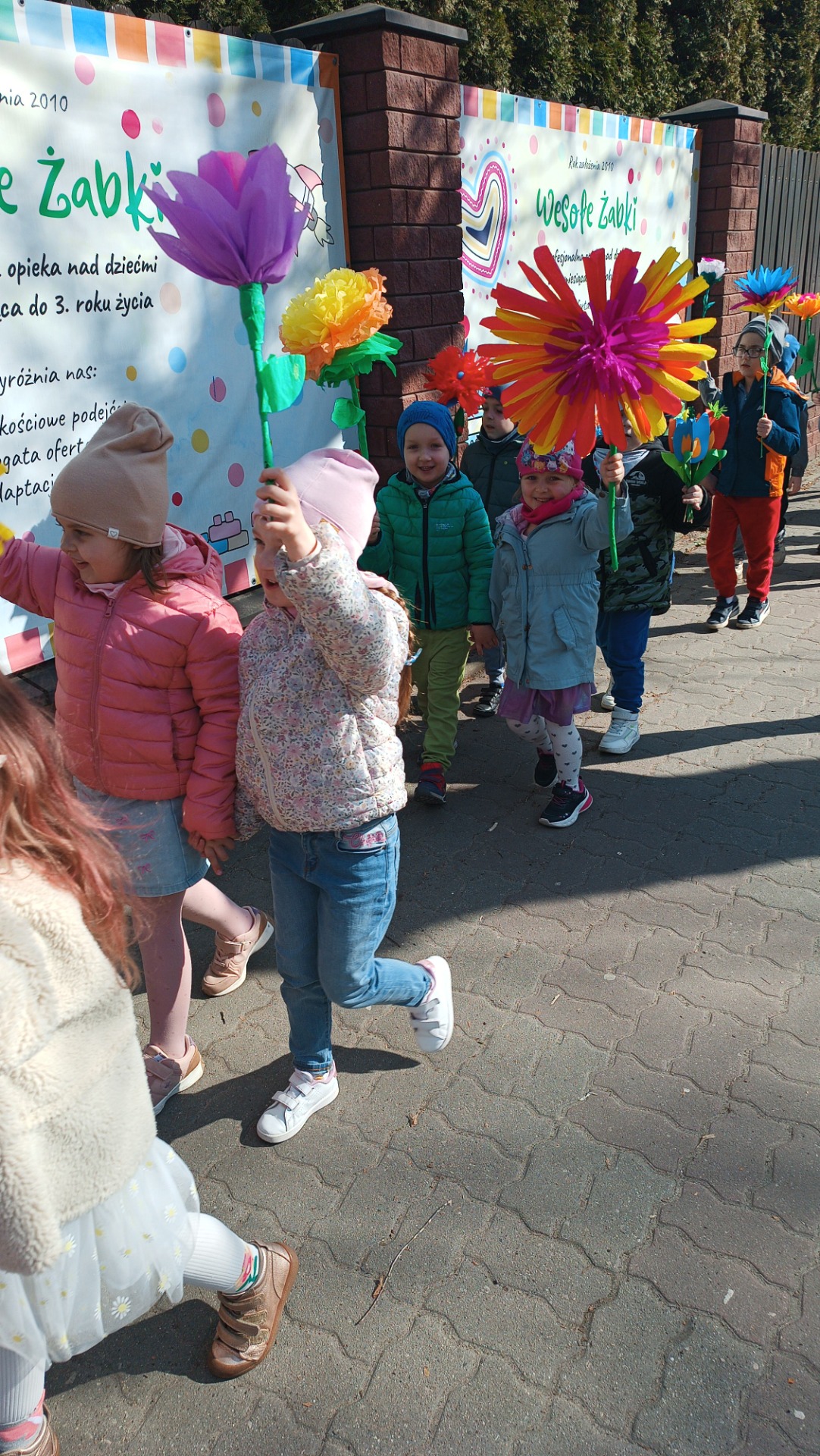 21 marca w pierwszy dzień kalendarzowej wiosny dzieci z wszystkich grup wyruszyły barwnym korowodem, aby powitać wiosnę.