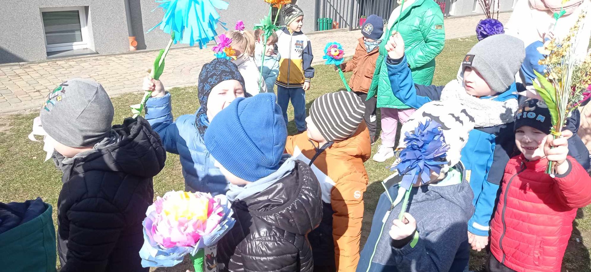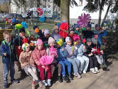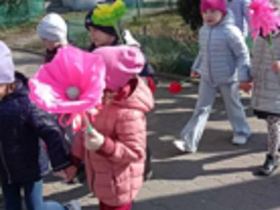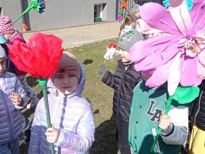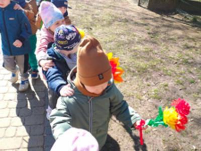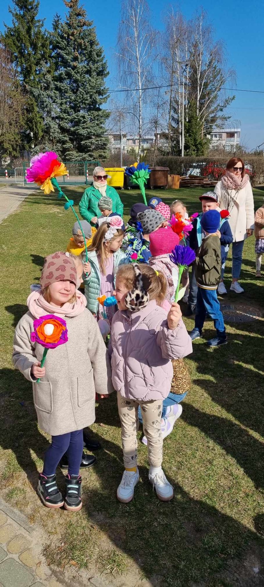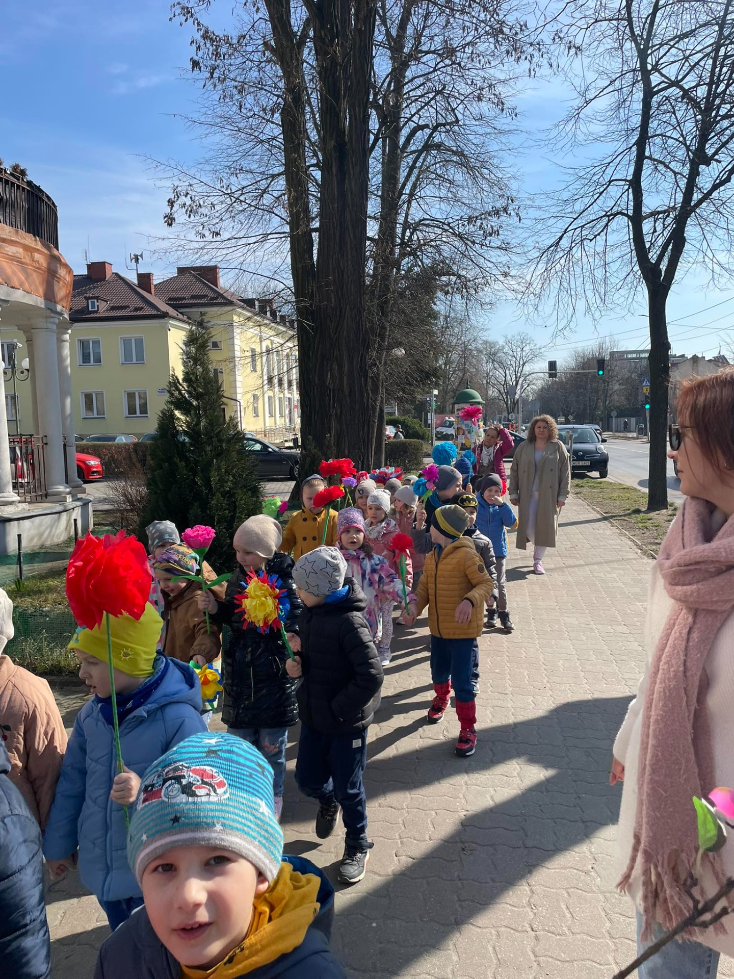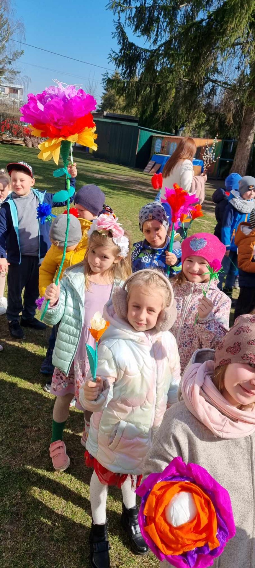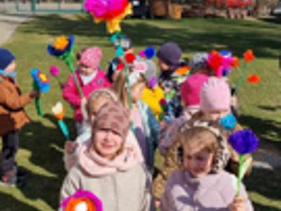 21 marca w pierwszy dzień kalendarzowej wiosny dzieci z wszystkich grup wyruszyły barwnym korowodem, aby powitać wiosnę.
