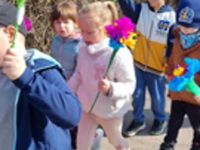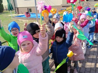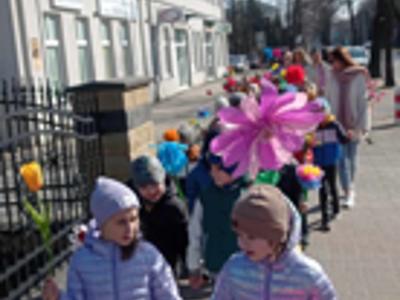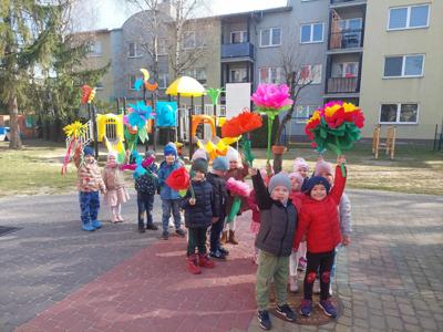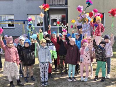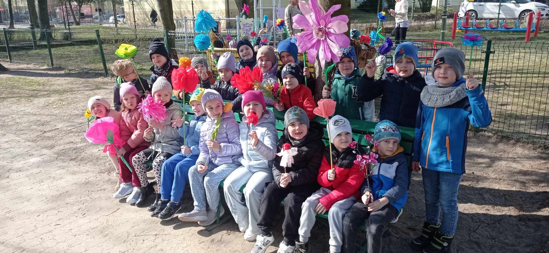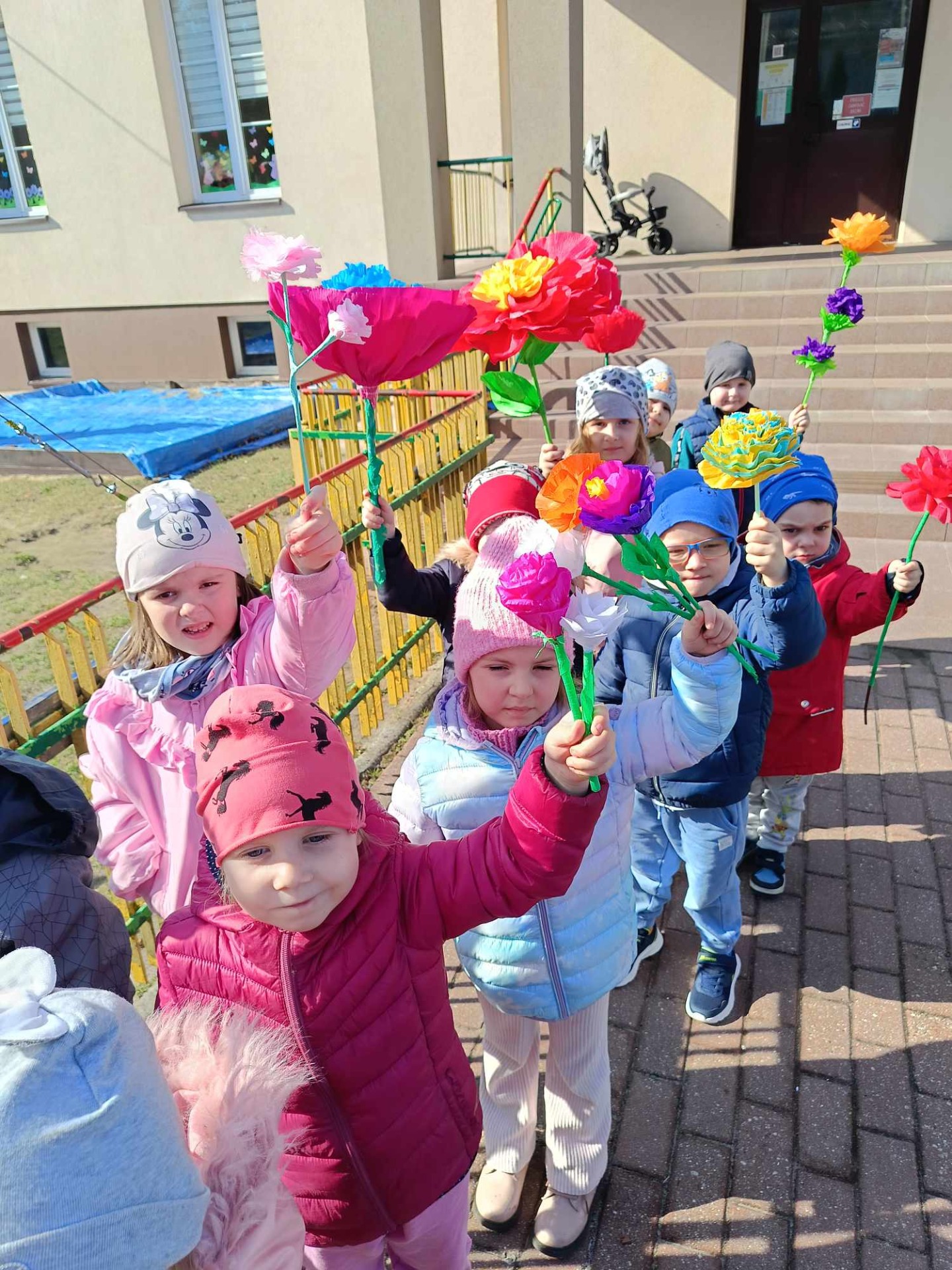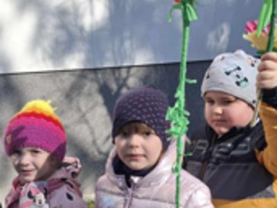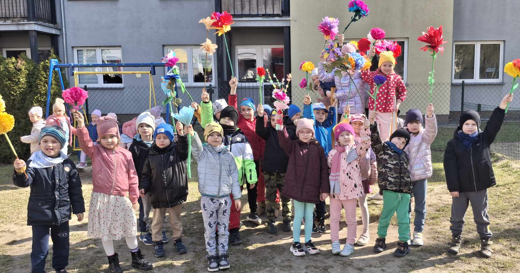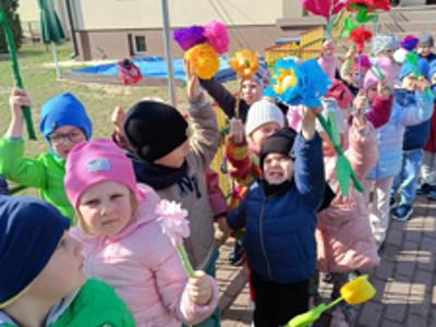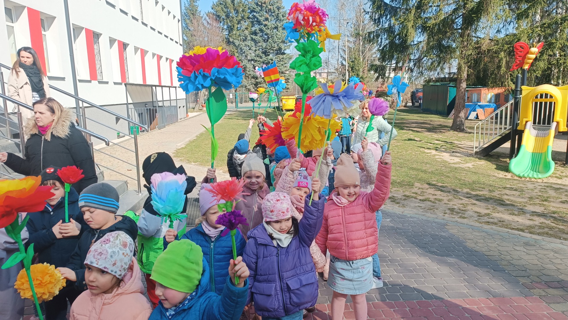 21 marca w pierwszy dzień kalendarzowej wiosny dzieci z wszystkich grup wyruszyły barwnym korowodem, aby powitać wiosnę.