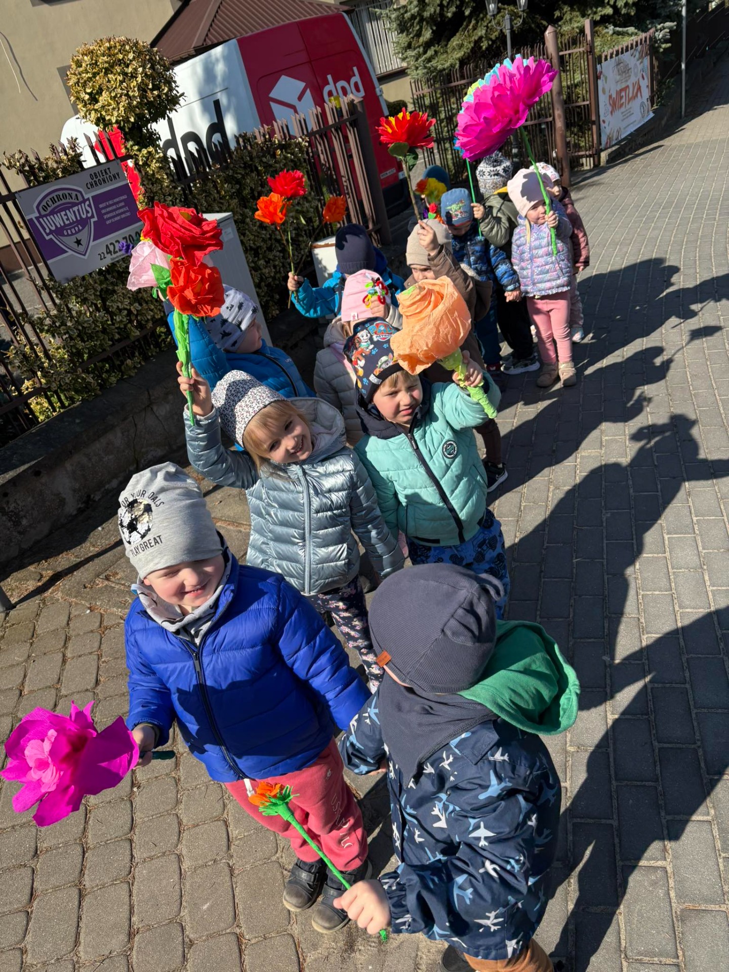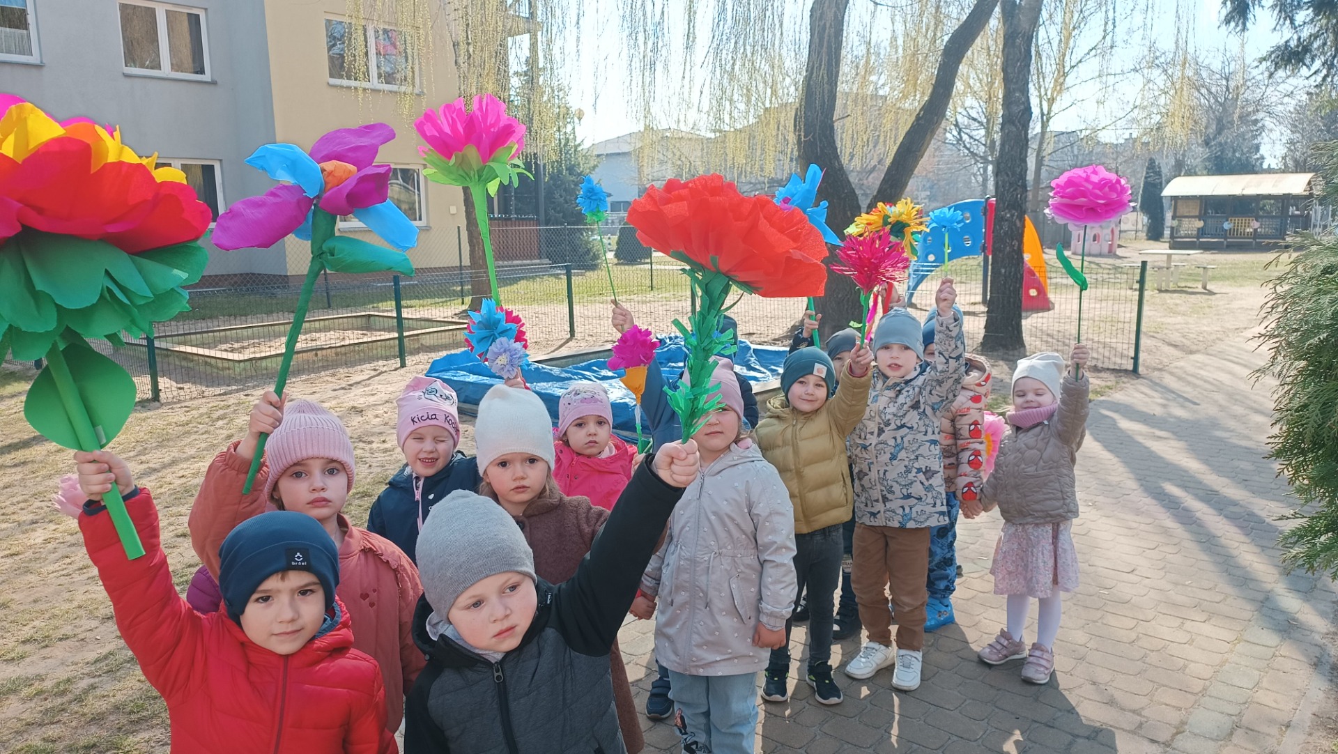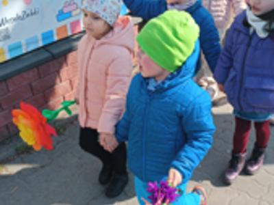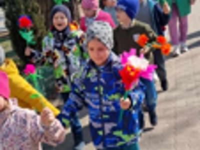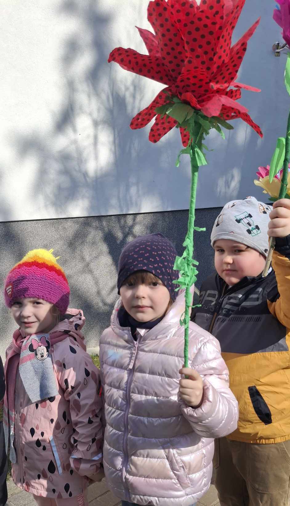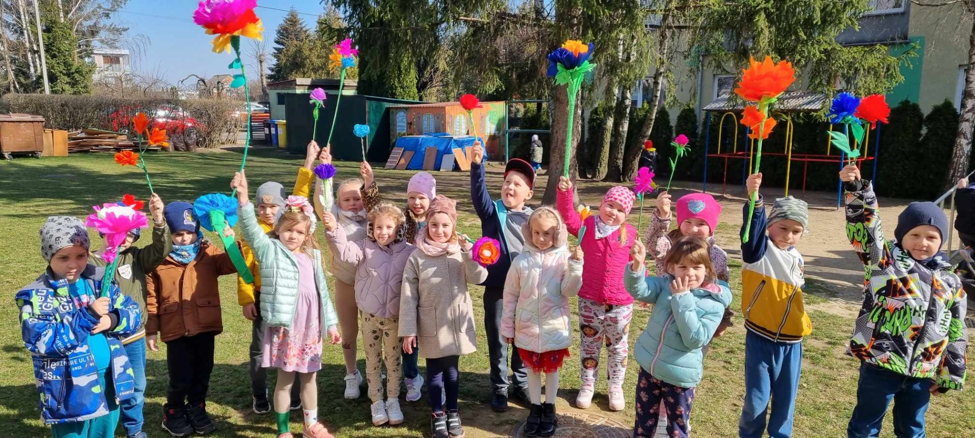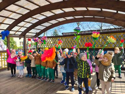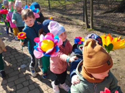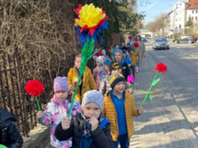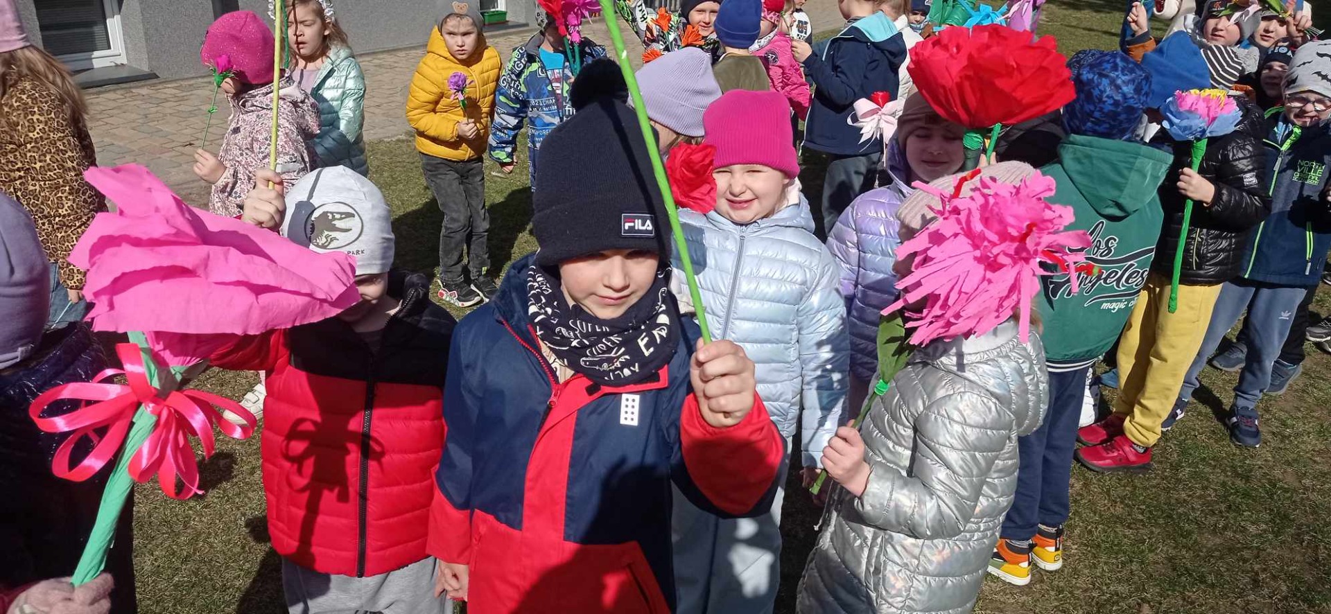 21 marca w pierwszy dzień kalendarzowej wiosny dzieci z wszystkich grup wyruszyły barwnym korowodem, aby powitać wiosnę.