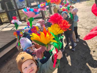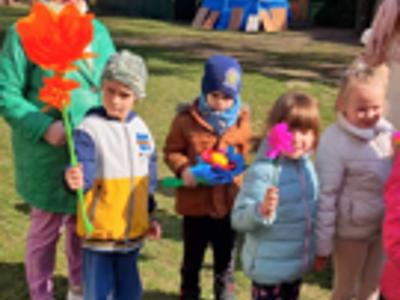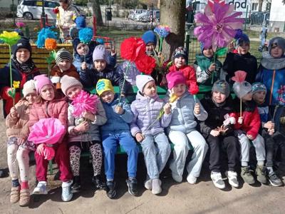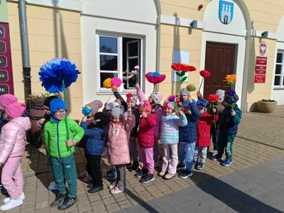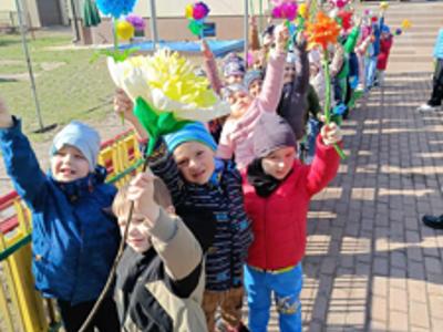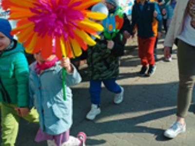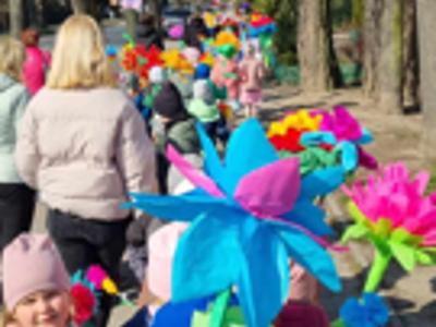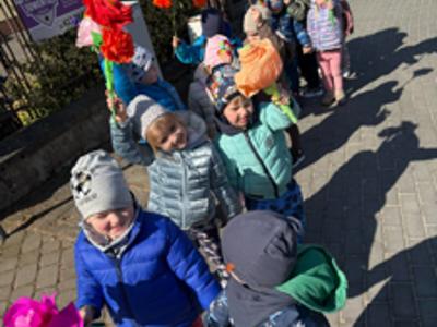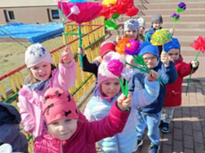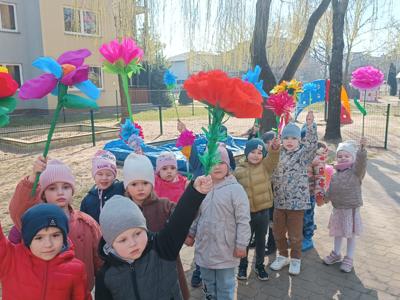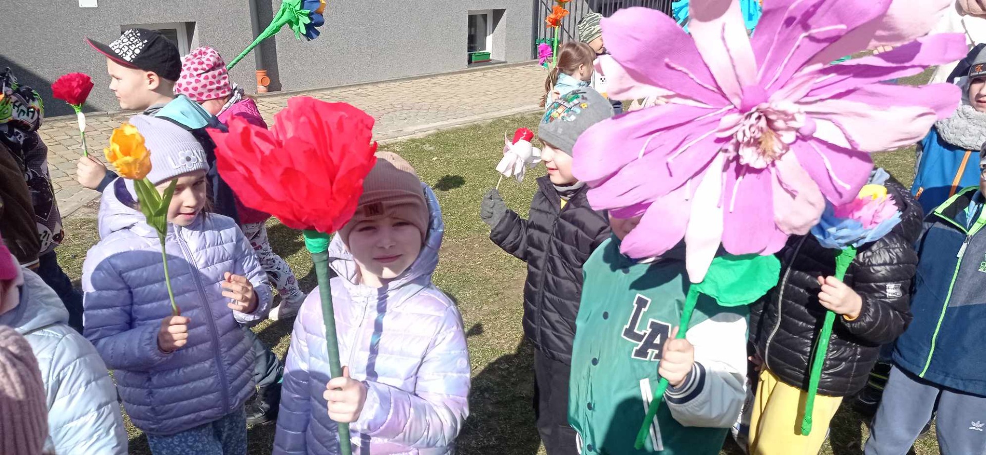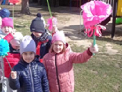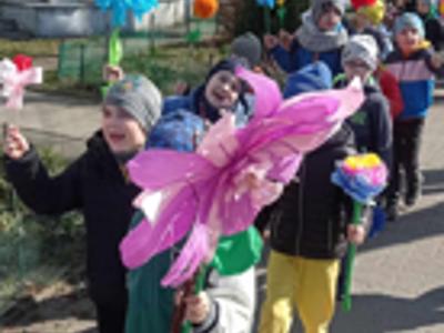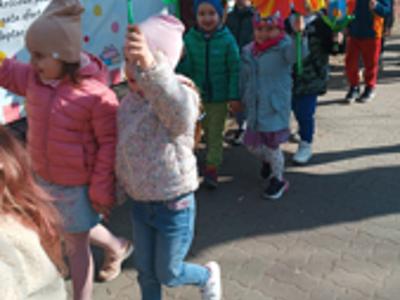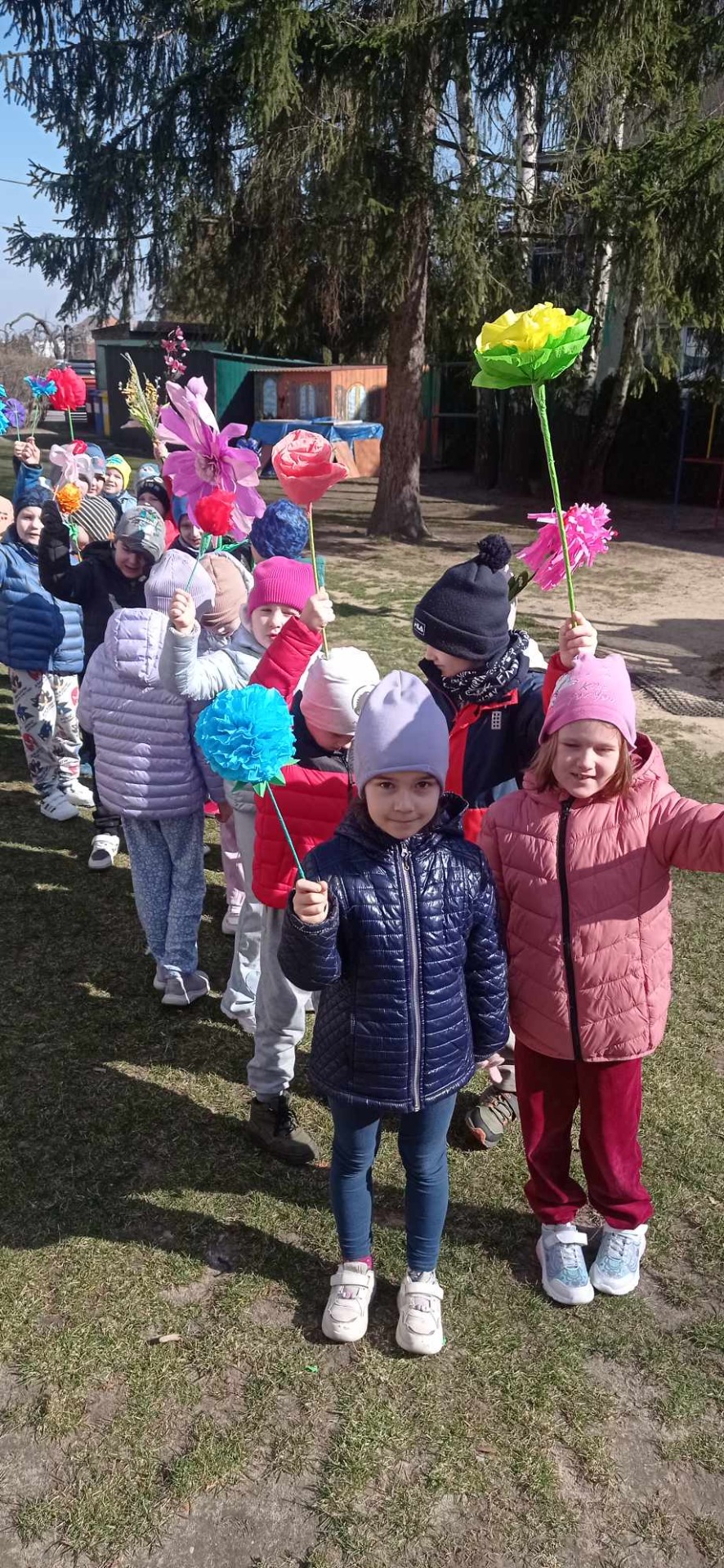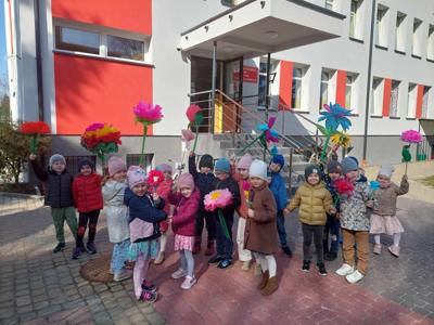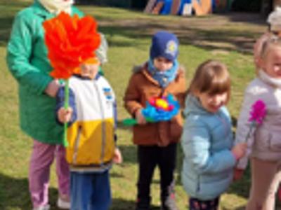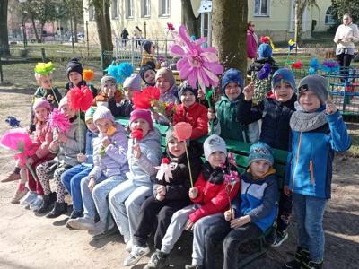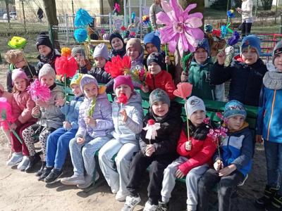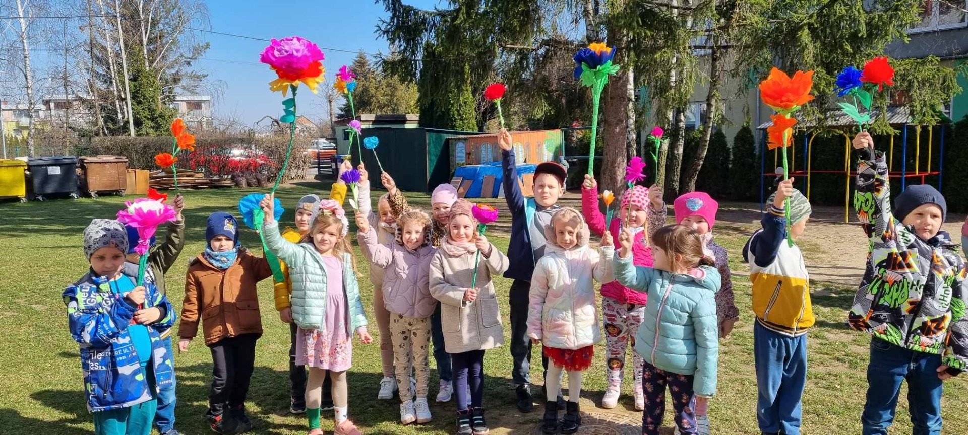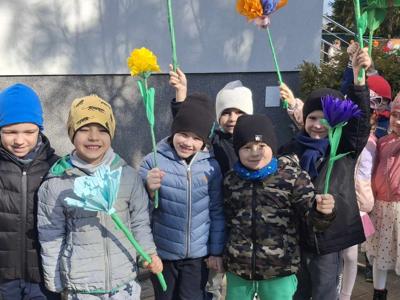 21 marca w pierwszy dzień kalendarzowej wiosny dzieci z wszystkich grup wyruszyły barwnym korowodem, aby powitać wiosnę.