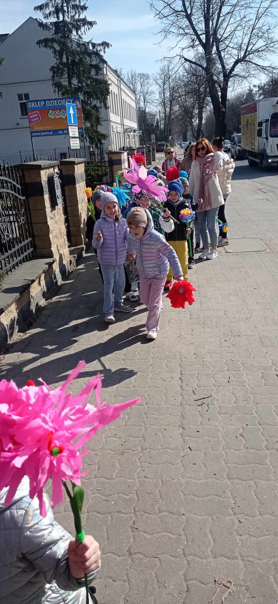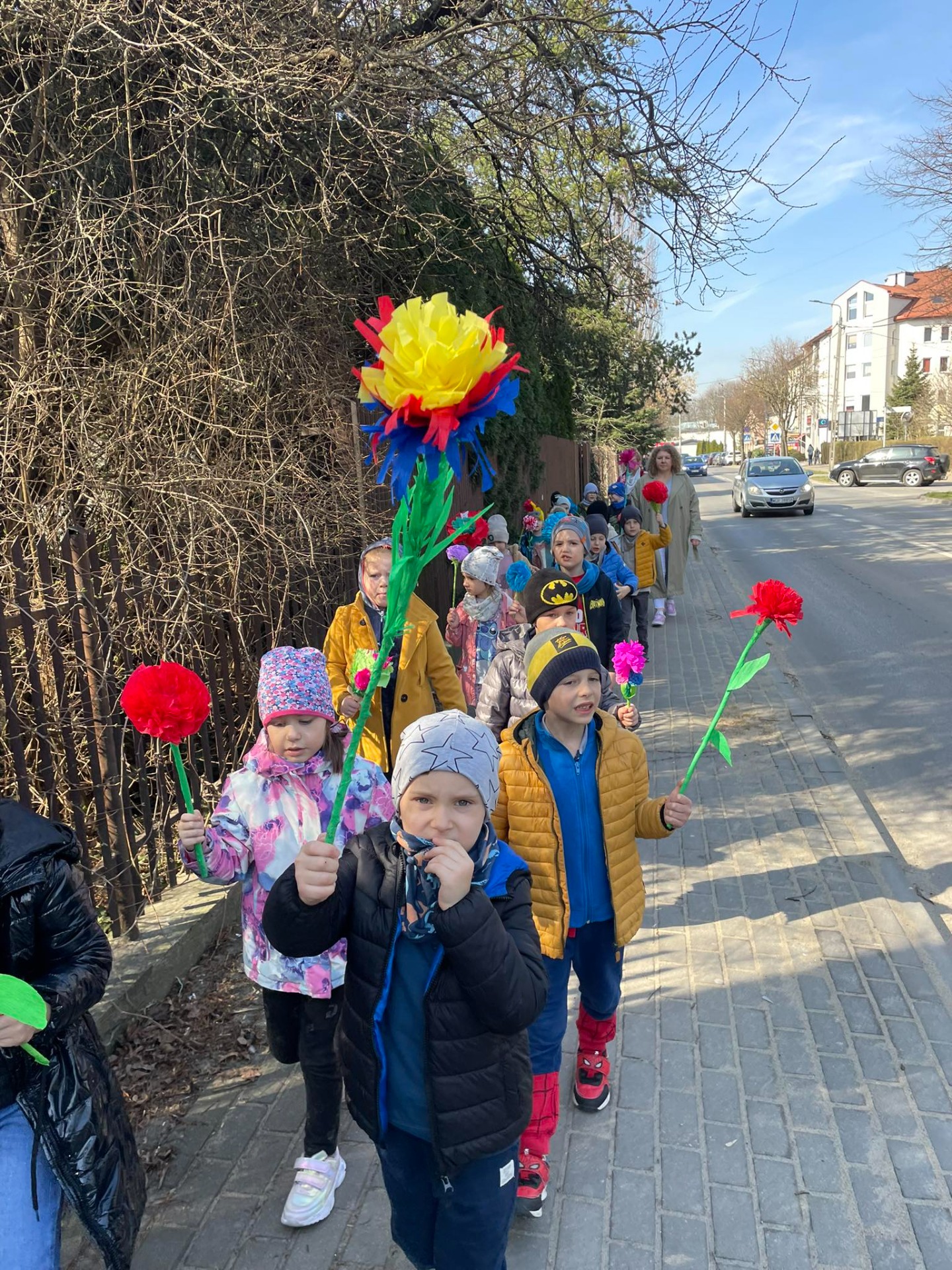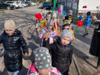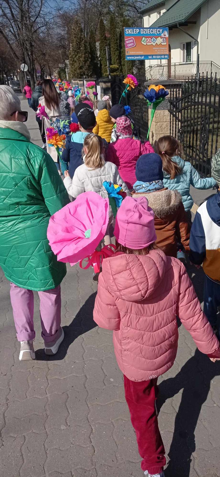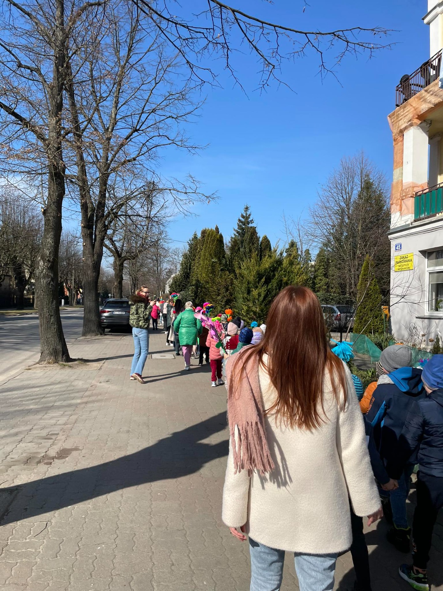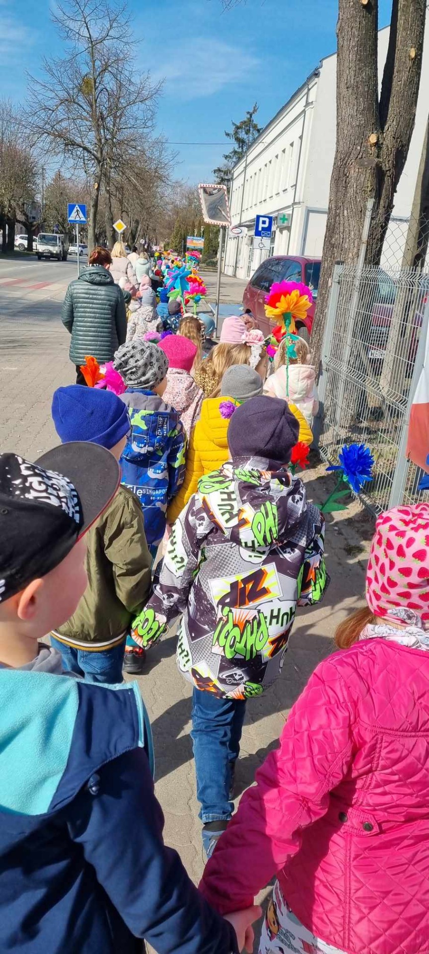Podczas marszu dzieci śpiewały wiosenne piosenki, dzięki którym nasz korowód nie pozostał niezauważony.
