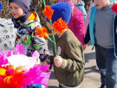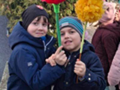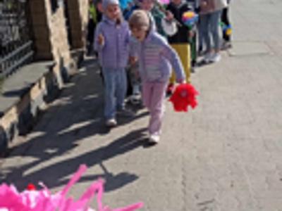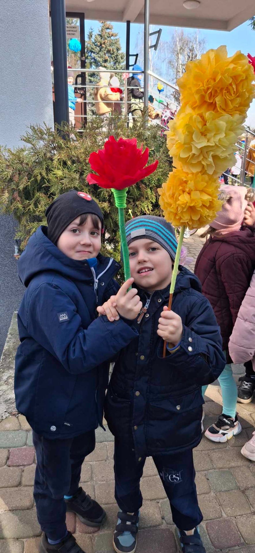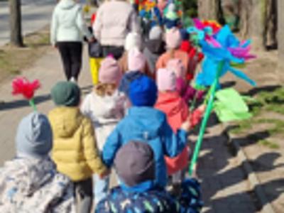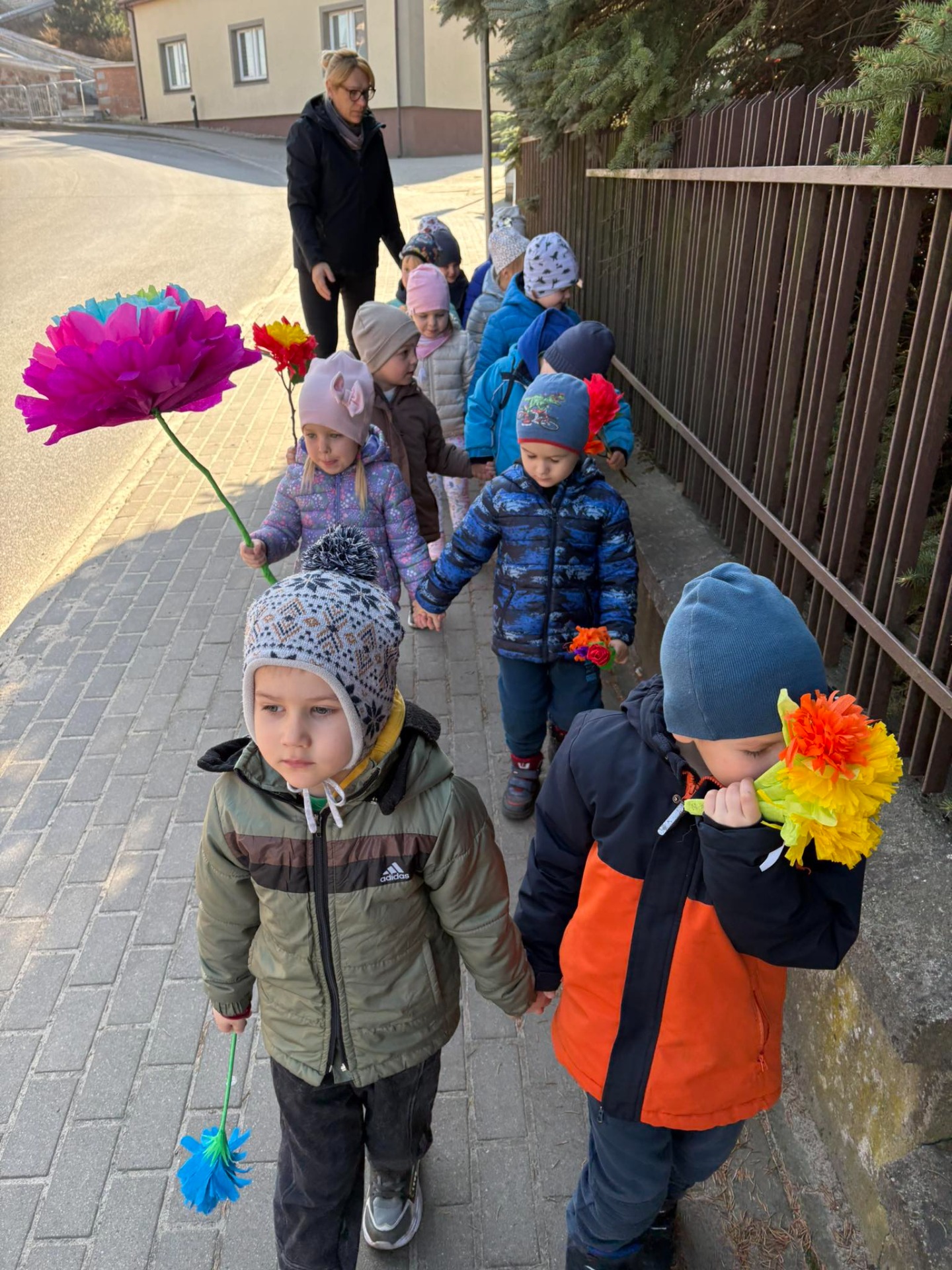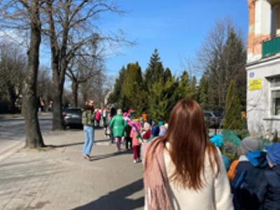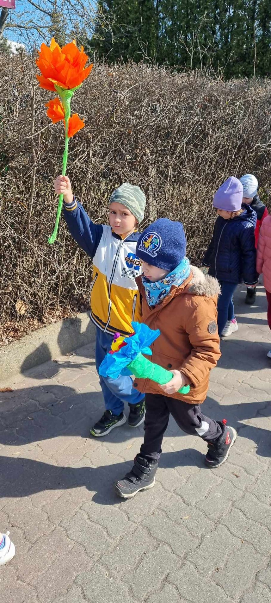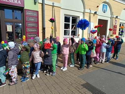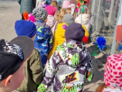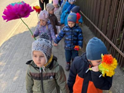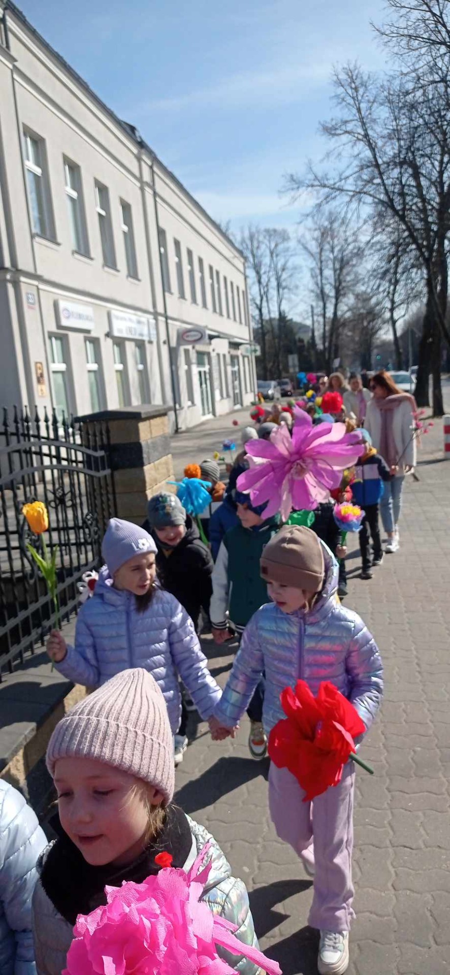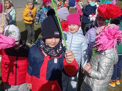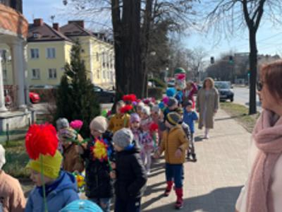 Podczas marszu dzieci śpiewały wiosenne piosenki, dzięki którym nasz korowód nie pozostał niezauważony.
