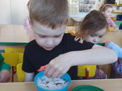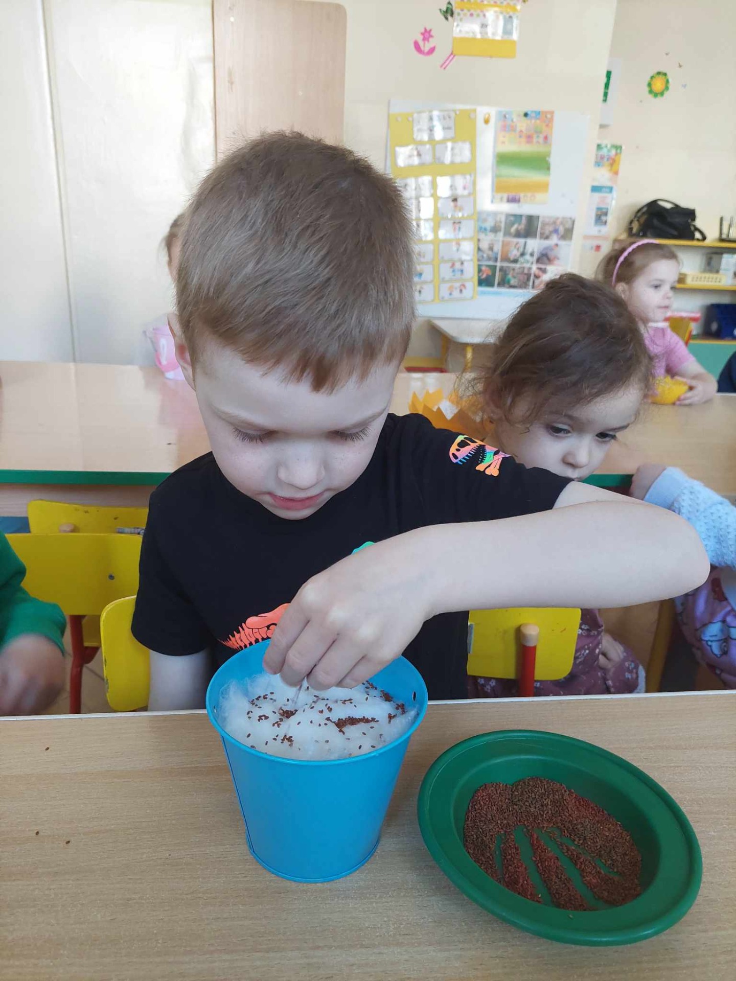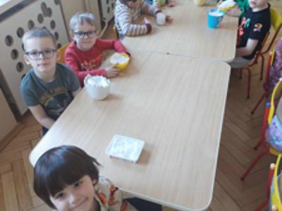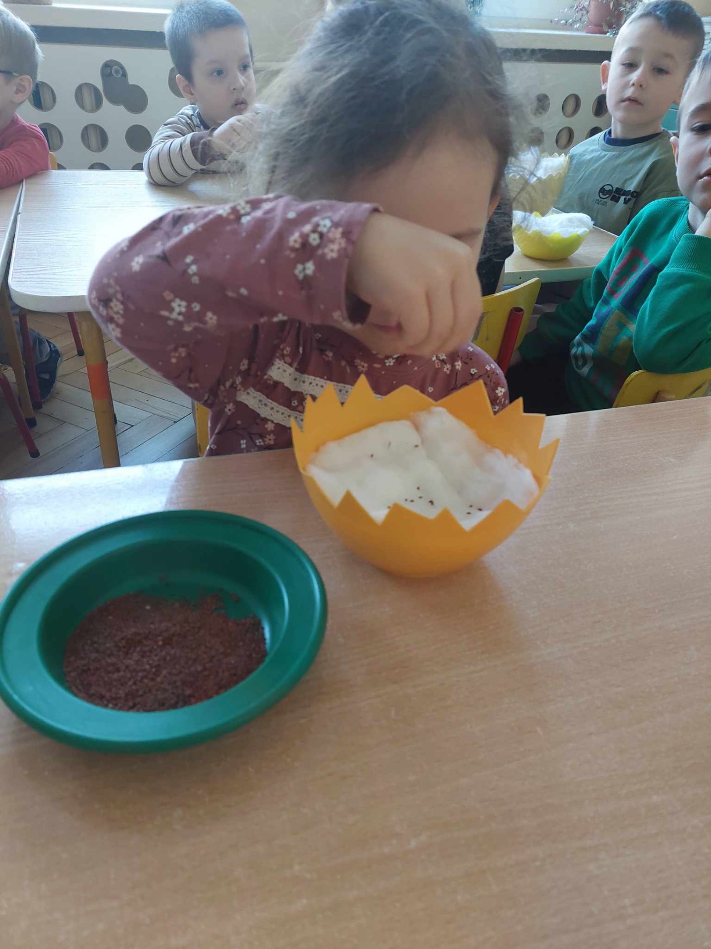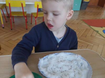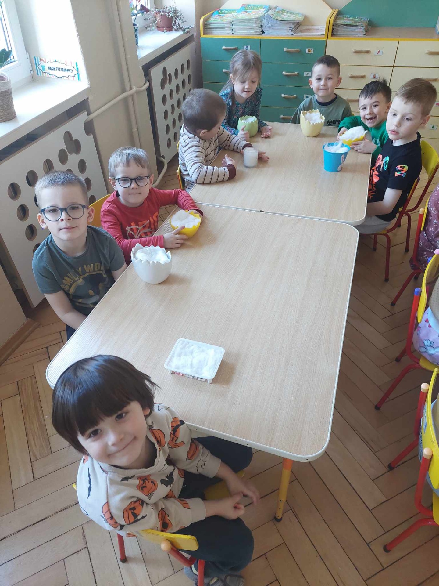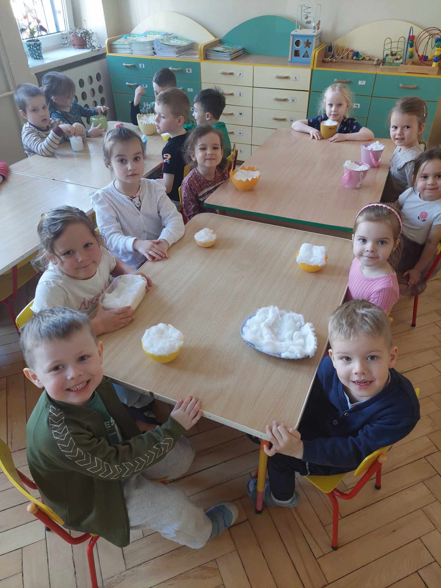 Dzieci z radością i dużym zaangażowaniem zasiały zdrową i przepyszną rzeżuchę. Przedszkolaki doskonale poradziły sobie z zadaniem. Potrzebowały do tego małych plastikowych pojemników, waty kosmetycznej, nasion rzeżuchy oraz wody. Teraz codziennie będą ją podlewać i obserwować jak rośnie.
