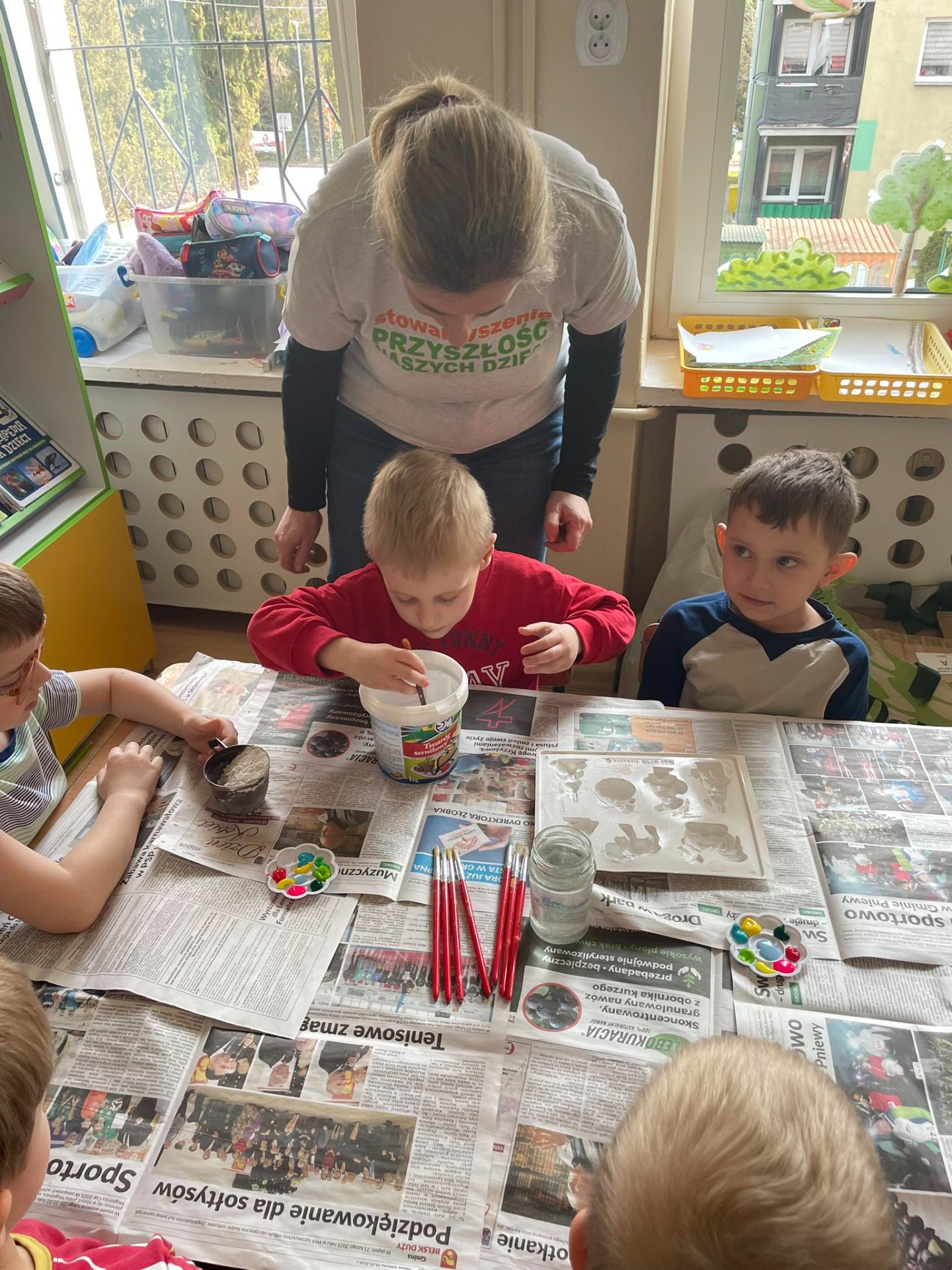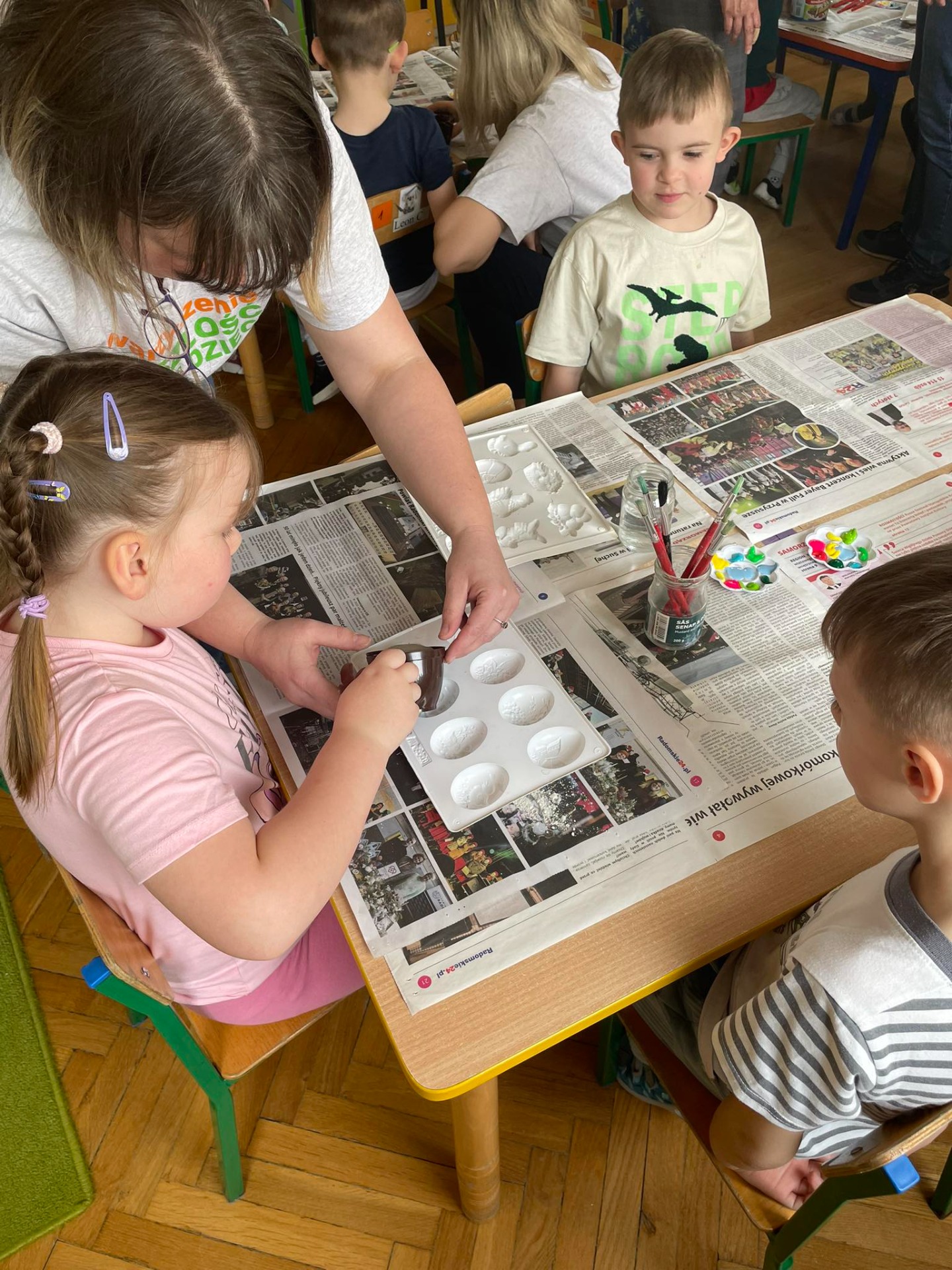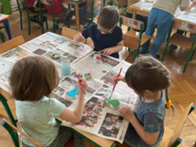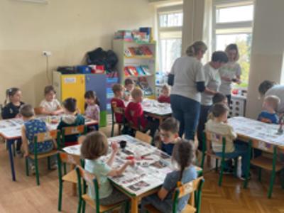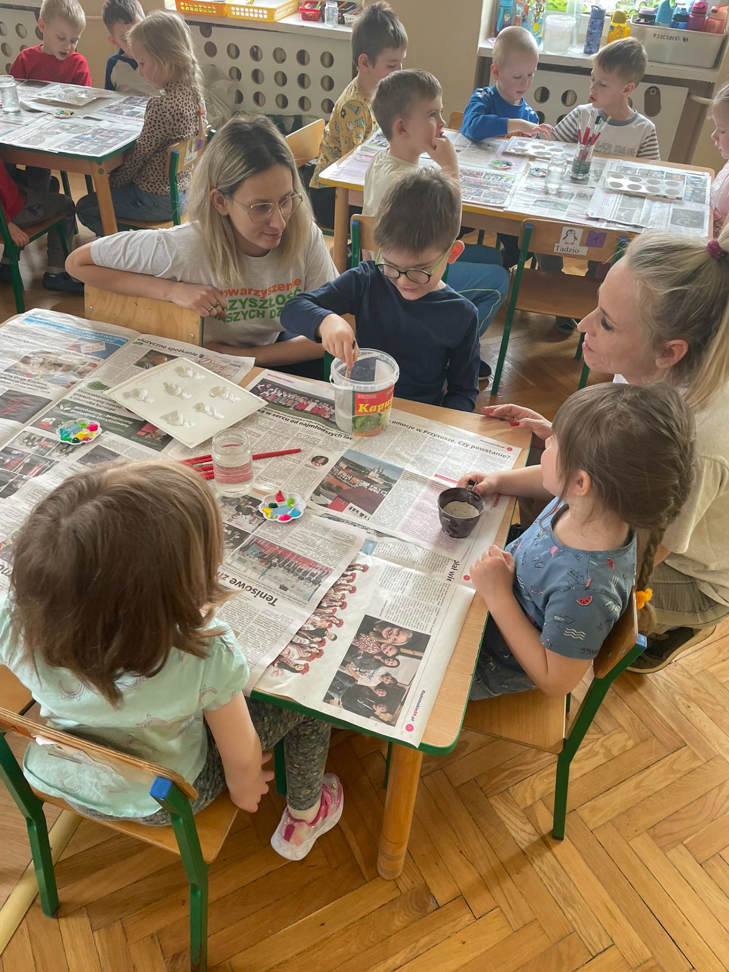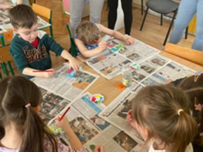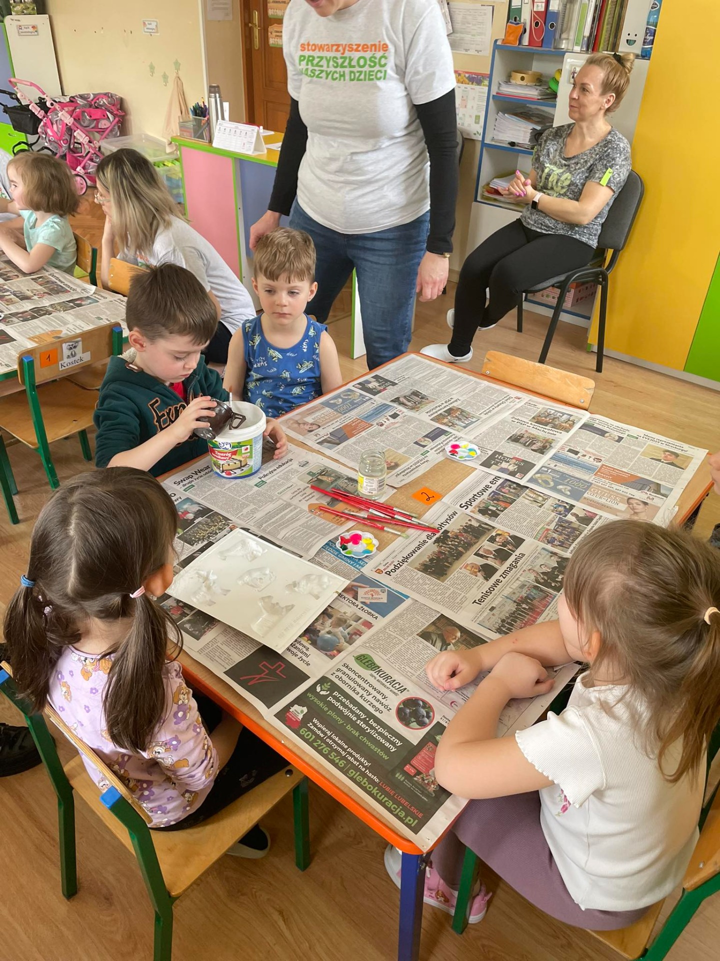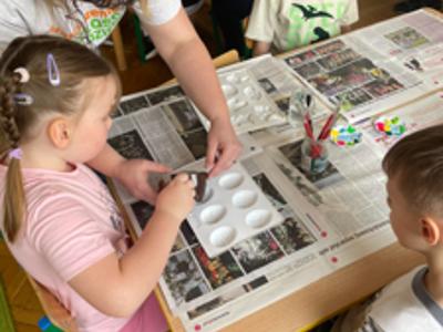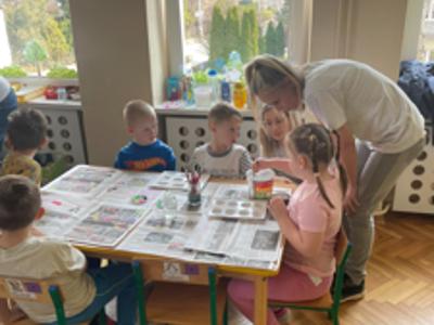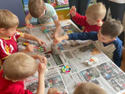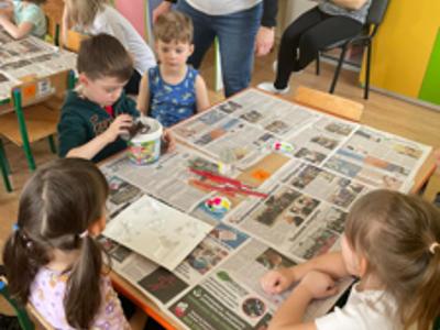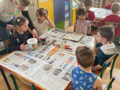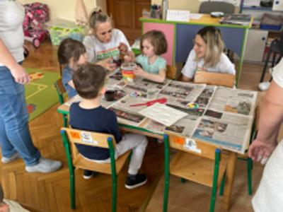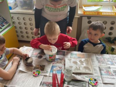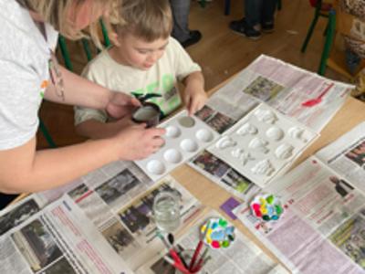 Warsztaty wielkanocne „ GIPSOWE FIGURKI” w grupie Pszczółki zorganizowane przez Rodziców, prowadzone przez Stowarzyszenie Przyszłość Naszych Dzieci.