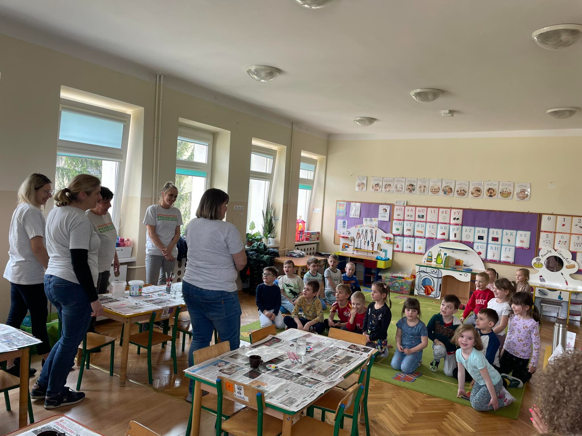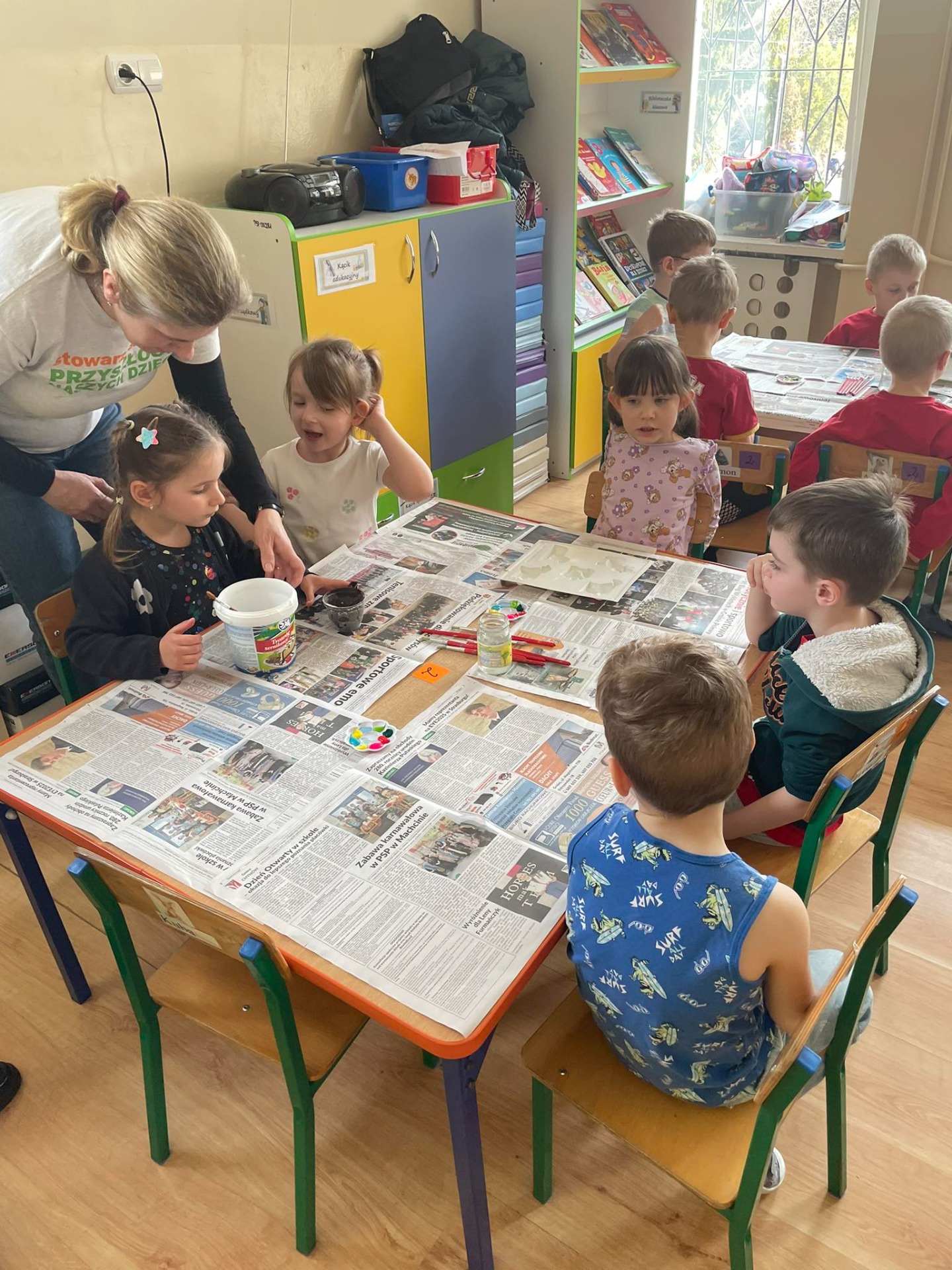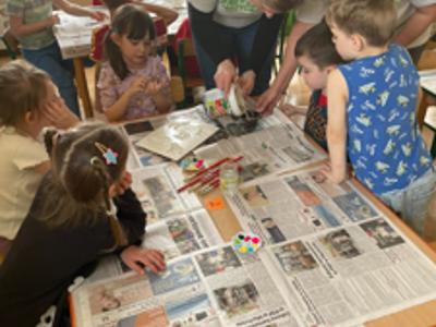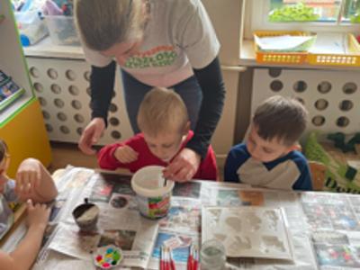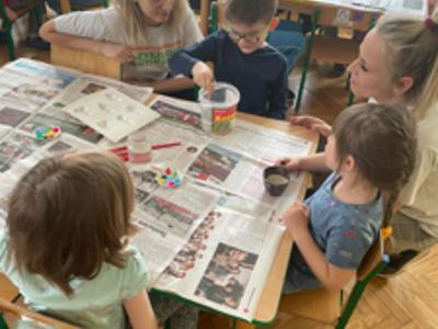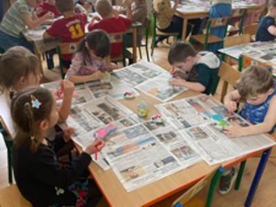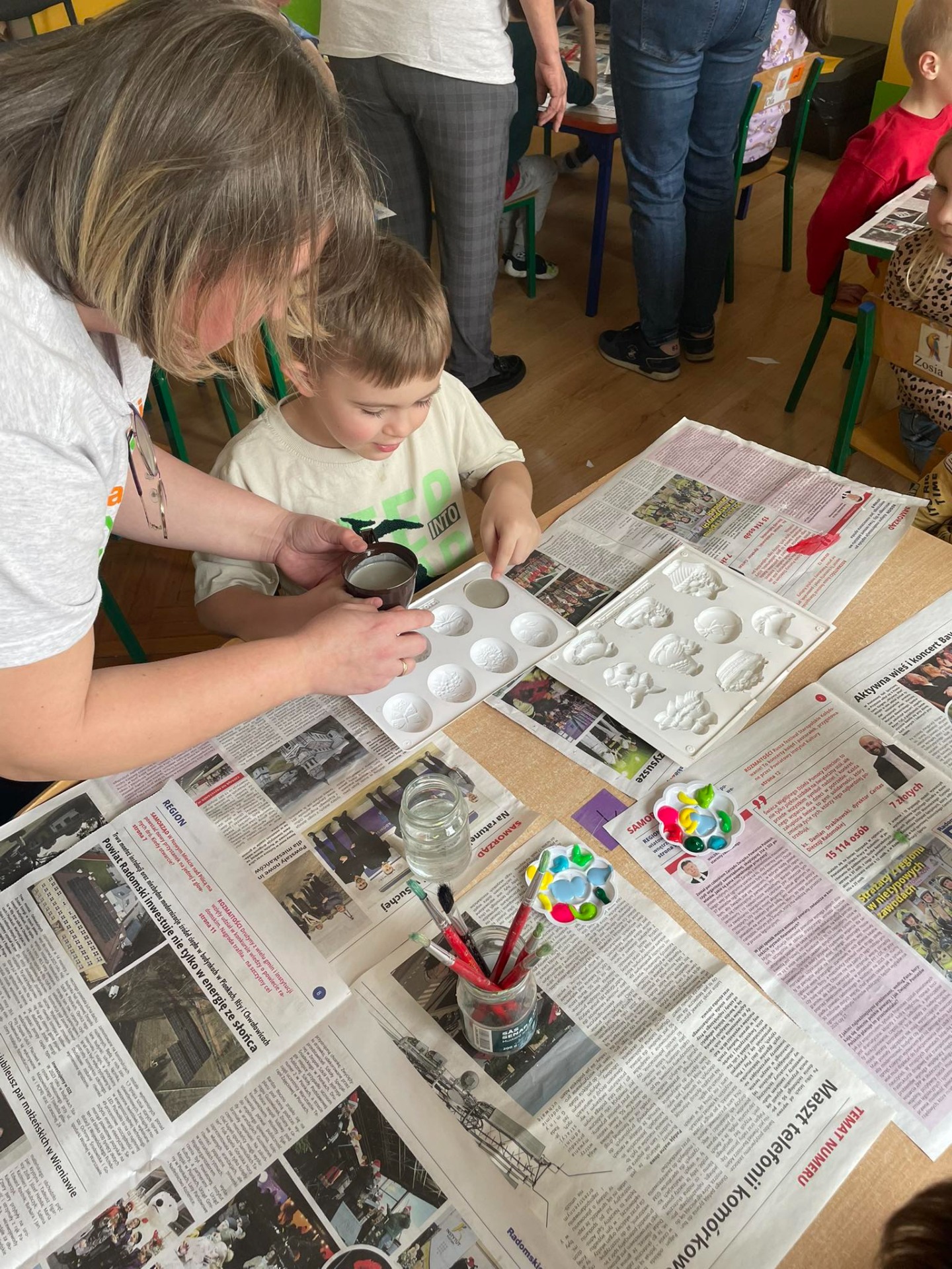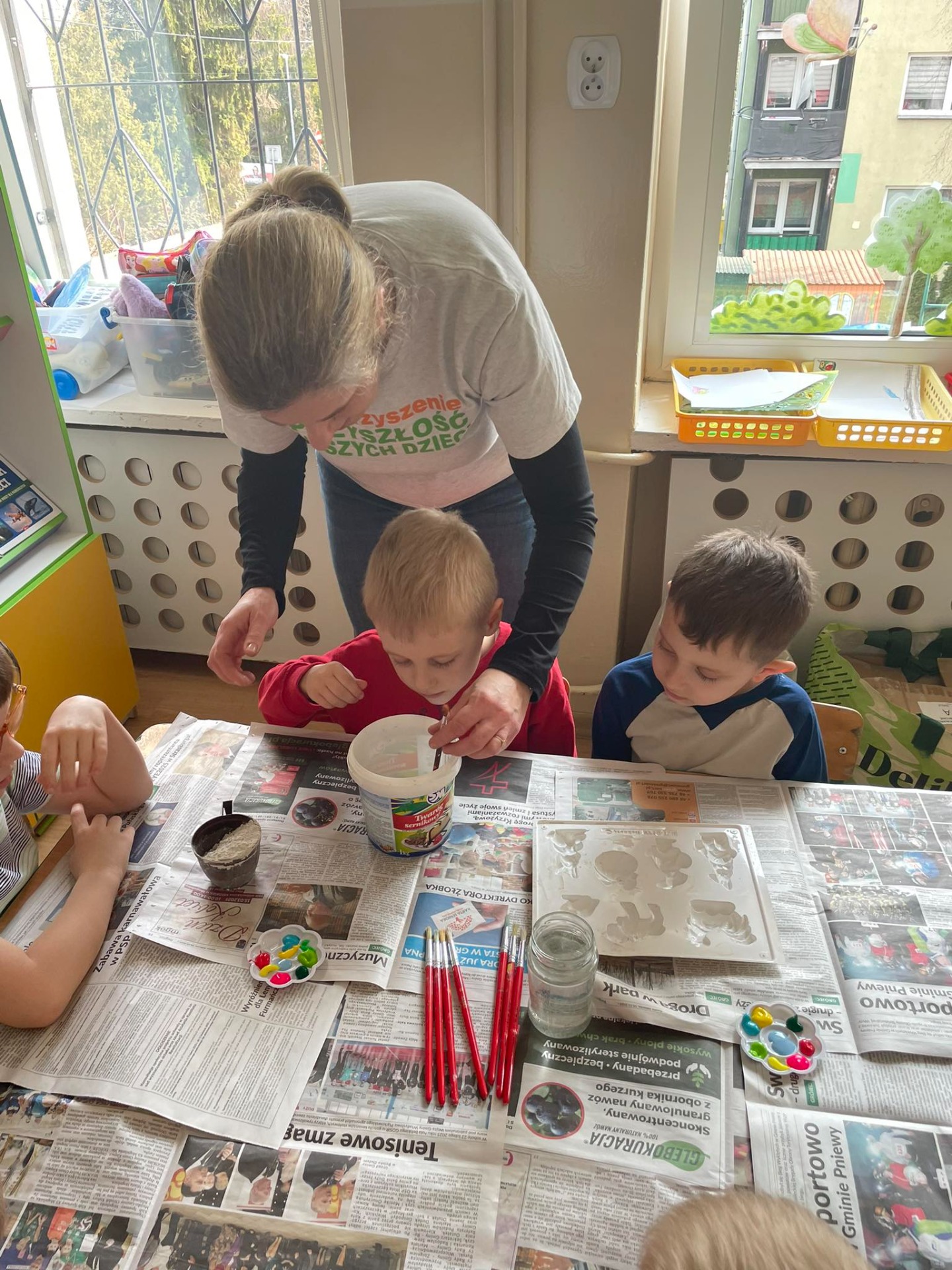 Warsztaty wielkanocne „ GIPSOWE FIGURKI” w grupie Pszczółki zorganizowane przez Rodziców, prowadzone przez Stowarzyszenie Przyszłość Naszych Dzieci.