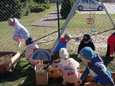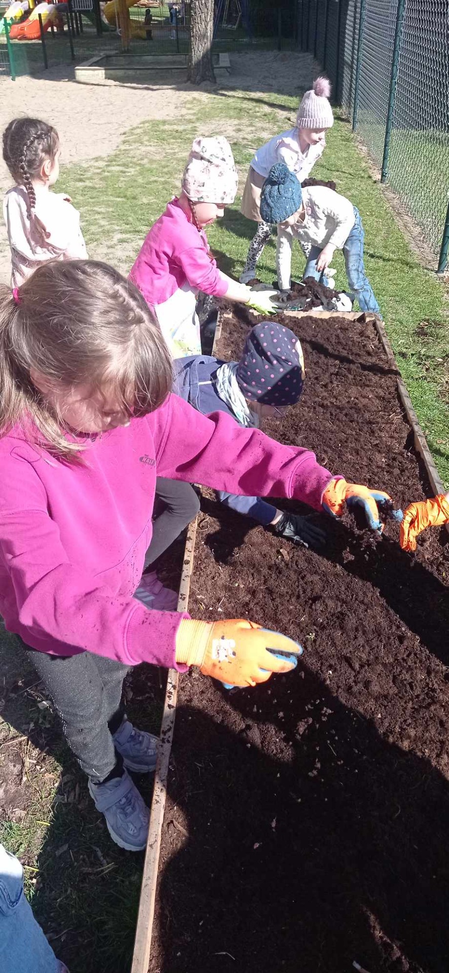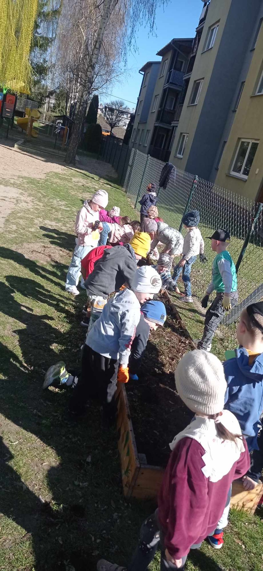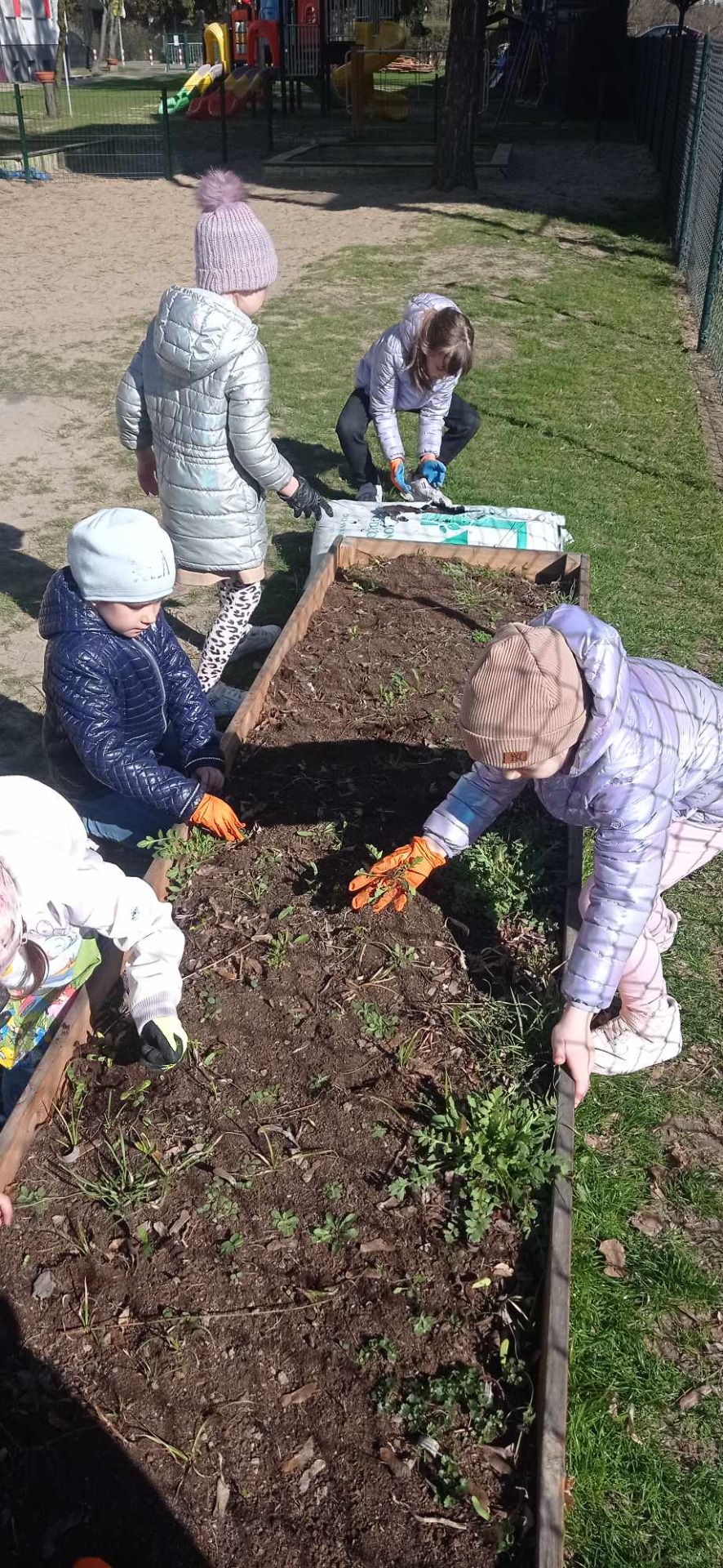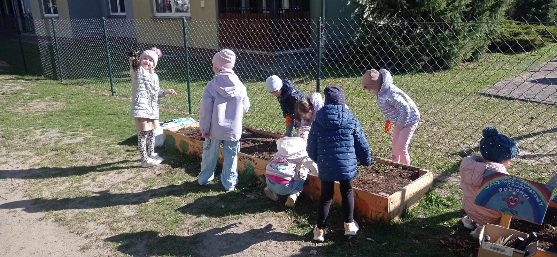 🌻🌻🌱🌱W ubiegłym tygodniu, korzystając z pięknej pogody☀️, Poziomki zajęły się pracami w ogrodzie. Z dużym zaangażowaniem i skrupulatnością uporządkowały podwyższone grządki. W jednej z nich zasiały kwiatową łączkę🌻🌷🌱, która już niebawem będzie wabiła motyle i owady zapylające🐝🐞🦋. Druga z grządek obsadzona zostanie sadzonkami warzyw🍅🫛, które już czekają w sali (pielęgnowane przez dzieci) na właściwy czas. Niebawem wszyscy będziemy mogli podziwiać efekty pracy Poziomek 🌻🌻🌱🌱☀️ A przed małymi ogrodnikami codzienne podlewanie💧💧 i doglądanie przedszkolnego ogródka 🙂