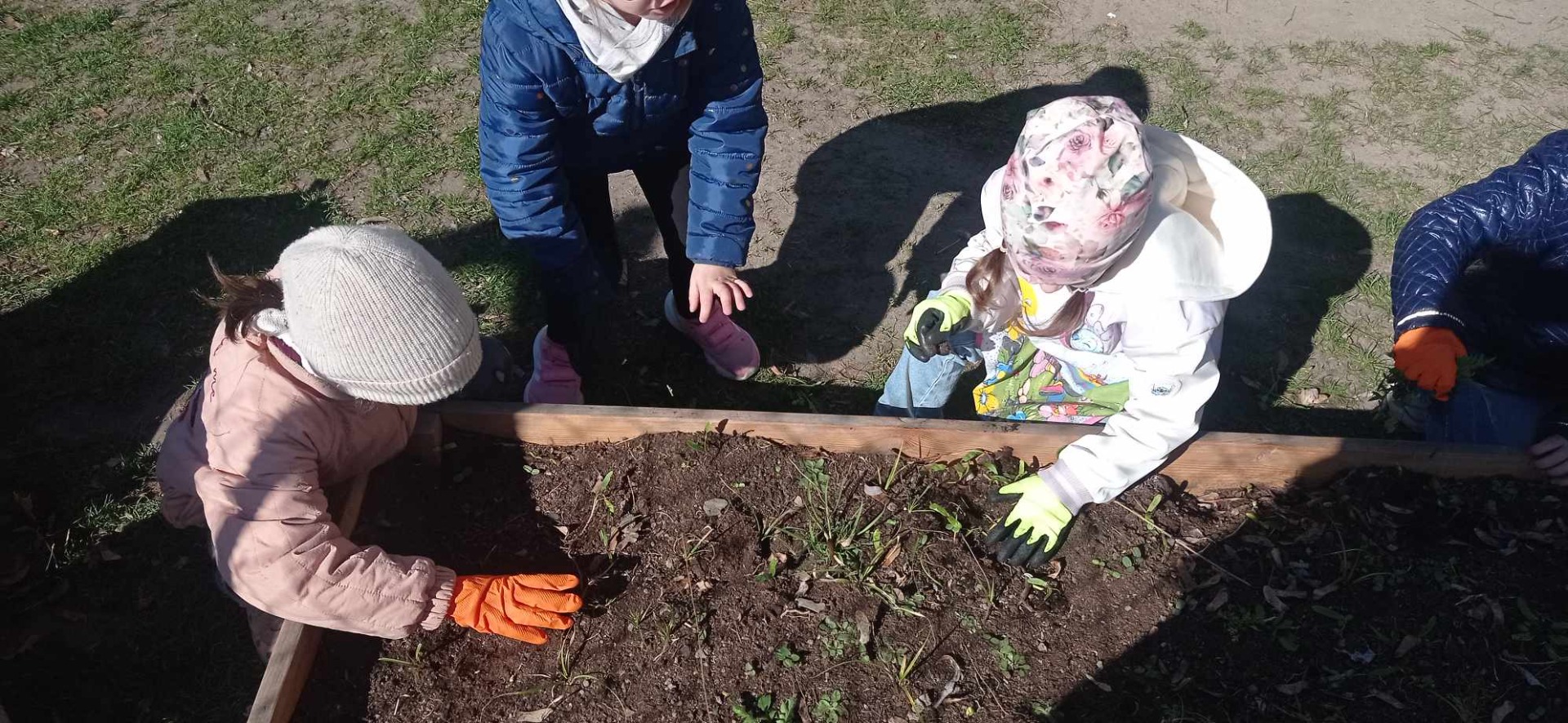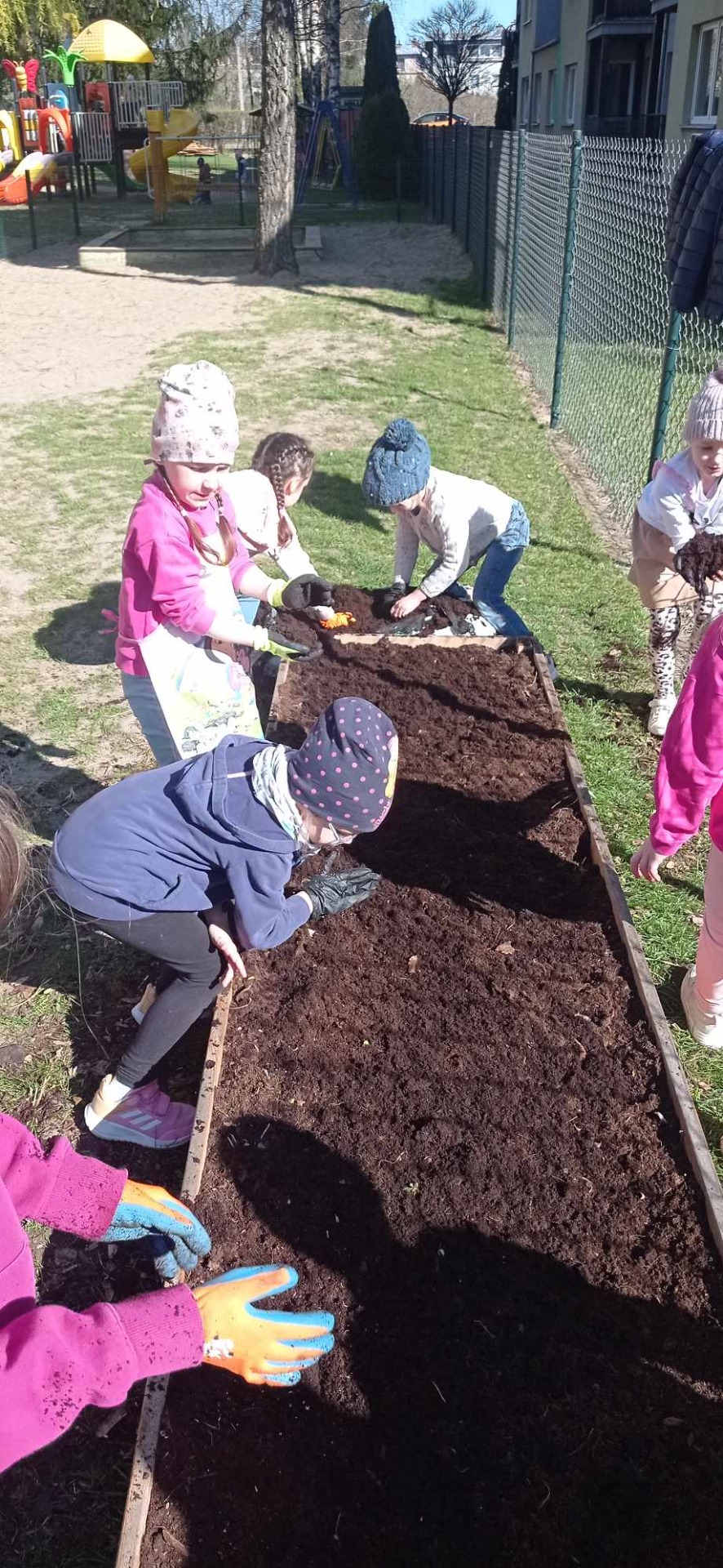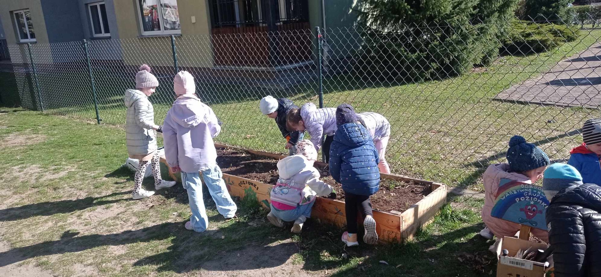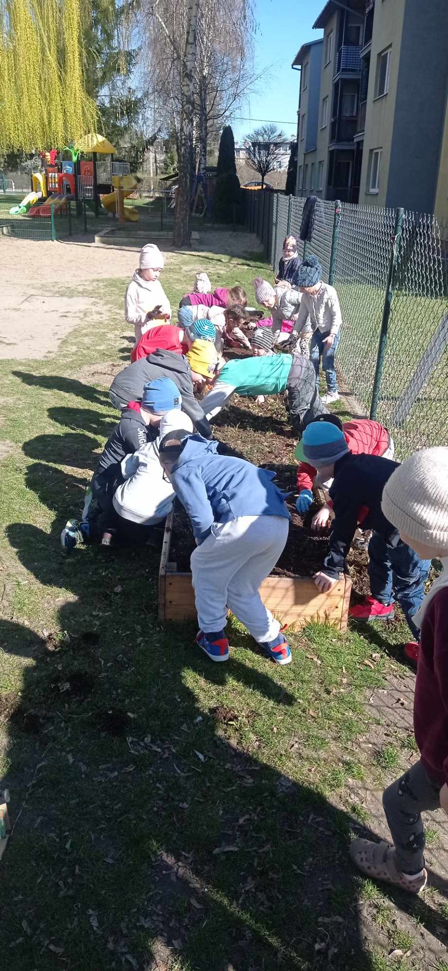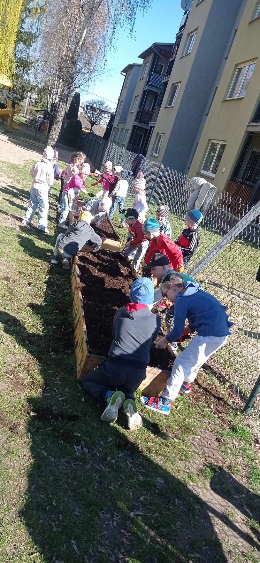 🌻🌻🌱🌱W ubiegłym tygodniu, korzystając z pięknej pogody☀️, Poziomki zajęły się pracami w ogrodzie. Z dużym zaangażowaniem i skrupulatnością uporządkowały podwyższone grządki. W jednej z nich zasiały kwiatową łączkę🌻🌷🌱, która już niebawem będzie wabiła motyle i owady zapylające🐝🐞🦋. Druga z grządek obsadzona zostanie sadzonkami warzyw🍅🫛, które już czekają w sali (pielęgnowane przez dzieci) na właściwy czas. Niebawem wszyscy będziemy mogli podziwiać efekty pracy Poziomek 🌻🌻🌱🌱☀️ A przed małymi ogrodnikami codzienne podlewanie💧💧 i doglądanie przedszkolnego ogródka 🙂