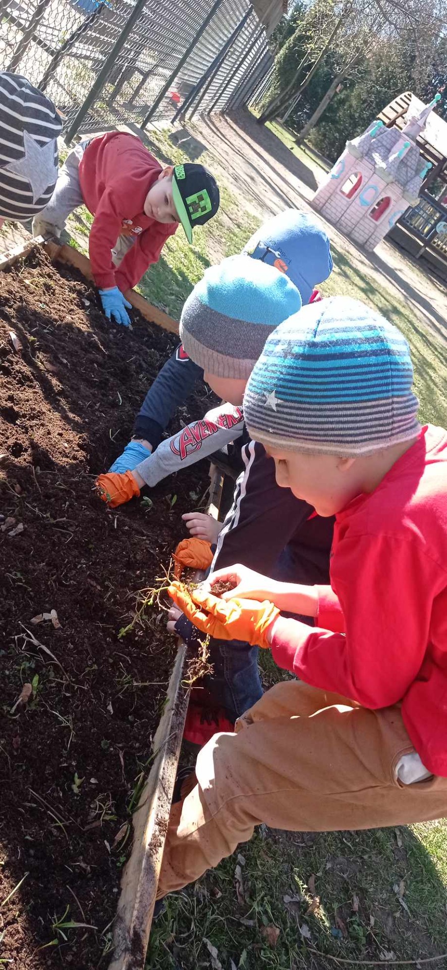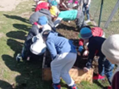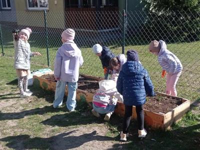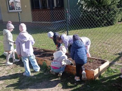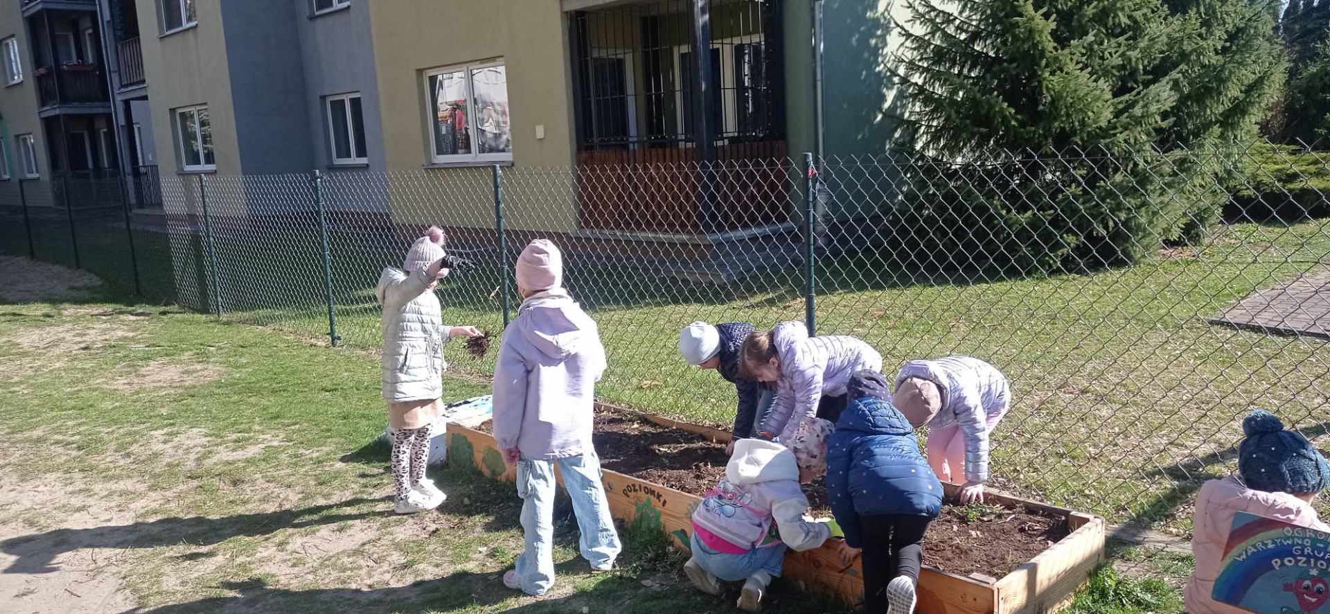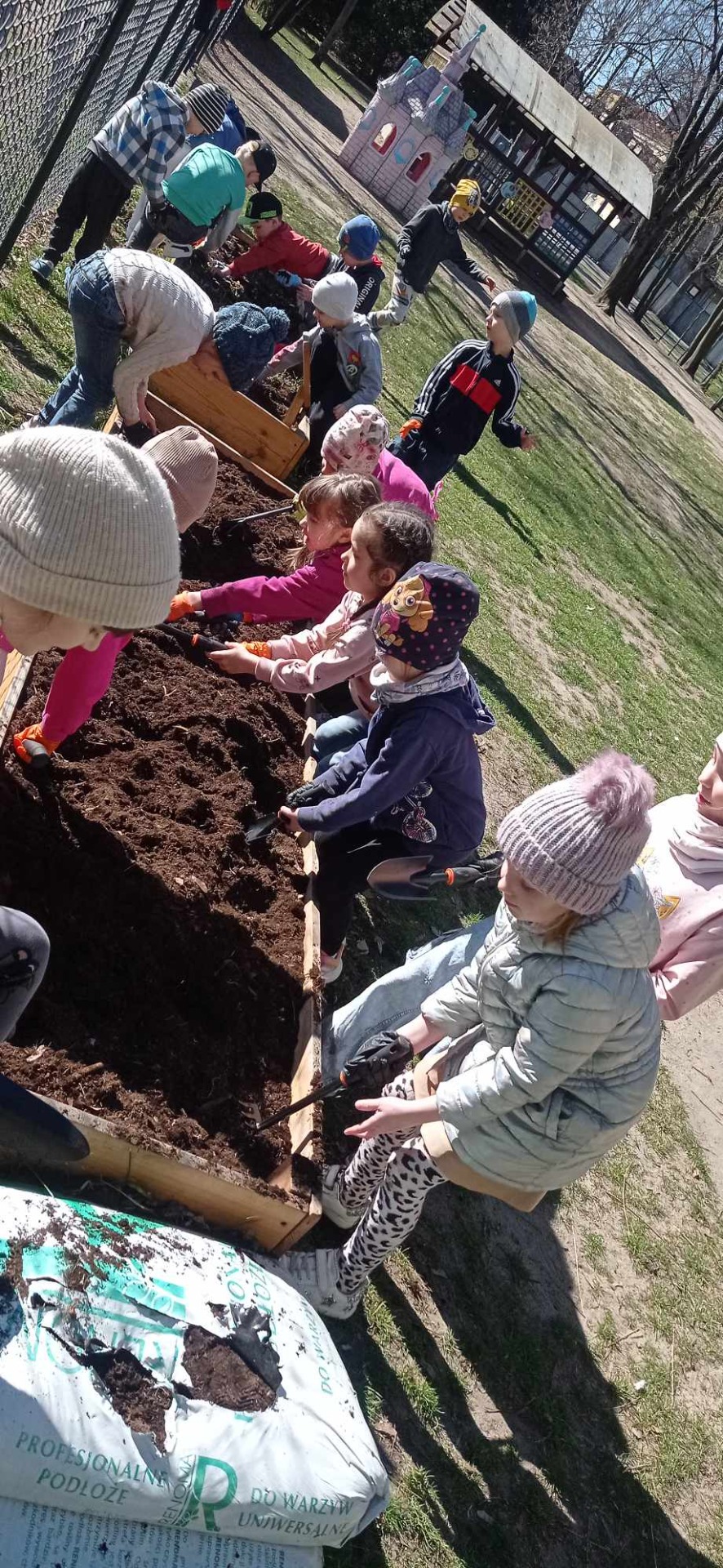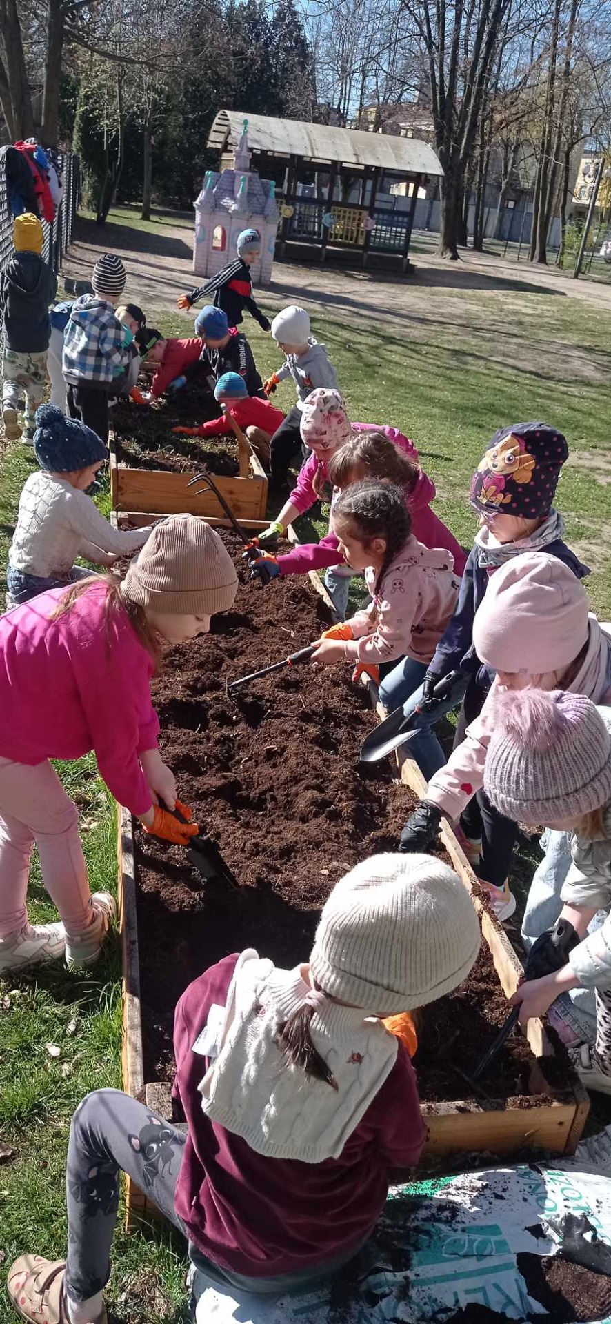 🌻🌻🌱🌱W ubiegłym tygodniu, korzystając z pięknej pogody☀️, Poziomki zajęły się pracami w ogrodzie. Z dużym zaangażowaniem i skrupulatnością uporządkowały podwyższone grządki. W jednej z nich zasiały kwiatową łączkę🌻🌷🌱, która już niebawem będzie wabiła motyle i owady zapylające🐝🐞🦋. Druga z grządek obsadzona zostanie sadzonkami warzyw🍅🫛, które już czekają w sali (pielęgnowane przez dzieci) na właściwy czas. Niebawem wszyscy będziemy mogli podziwiać efekty pracy Poziomek 🌻🌻🌱🌱☀️ A przed małymi ogrodnikami codzienne podlewanie💧💧 i doglądanie przedszkolnego ogródka 🙂