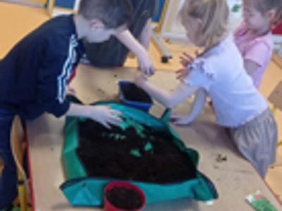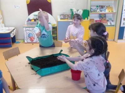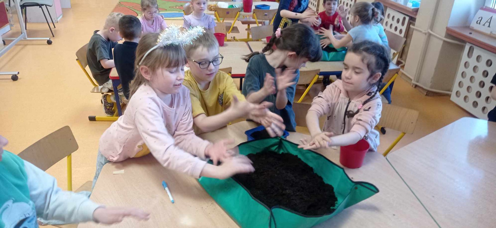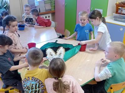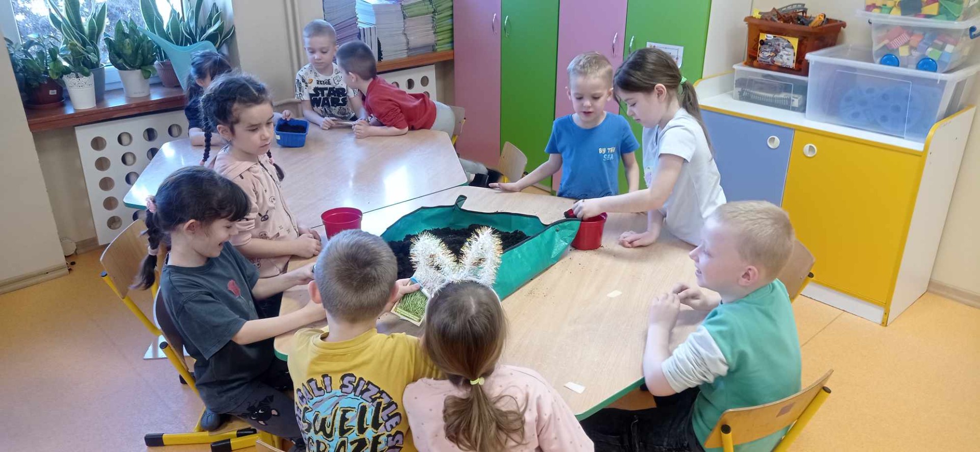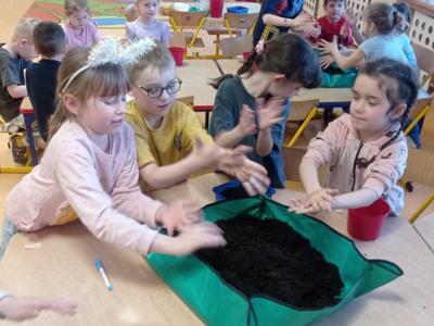 7.04.2025Zgodnie z tematem zajęć „Wiosna w sadzie i ogrodzie" dzieci założyły hodowlę owsa. Poznały kolejne etapy siania...