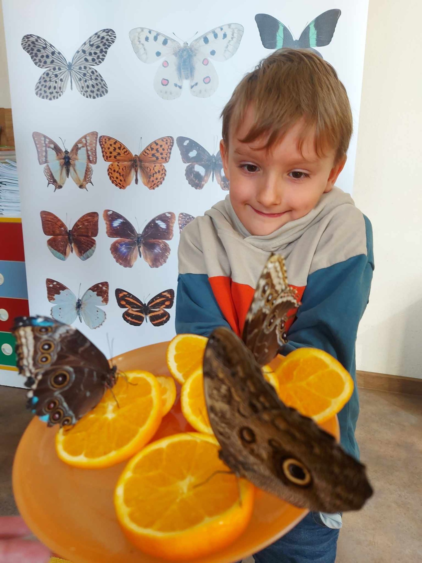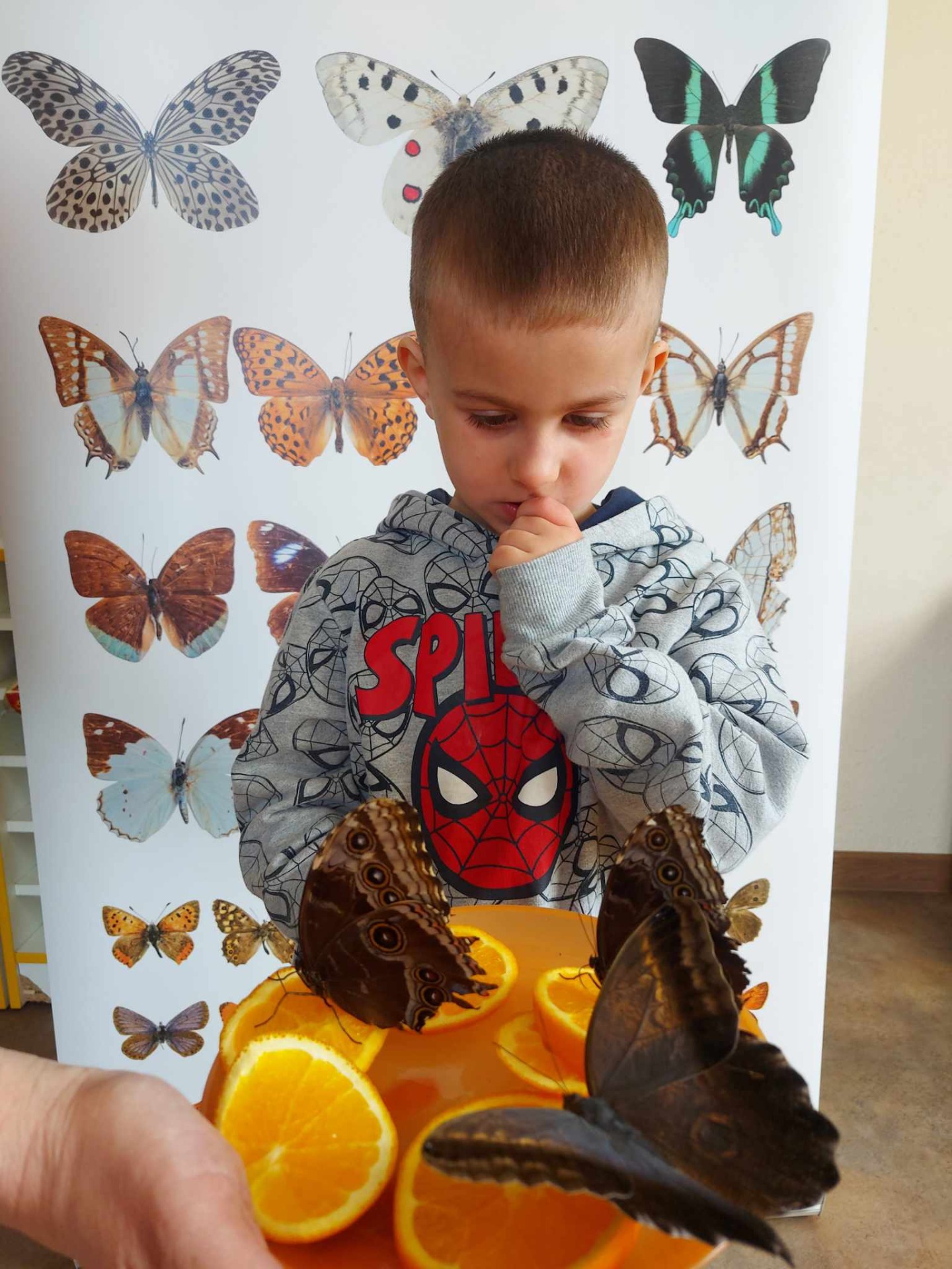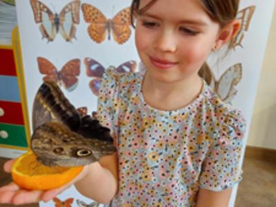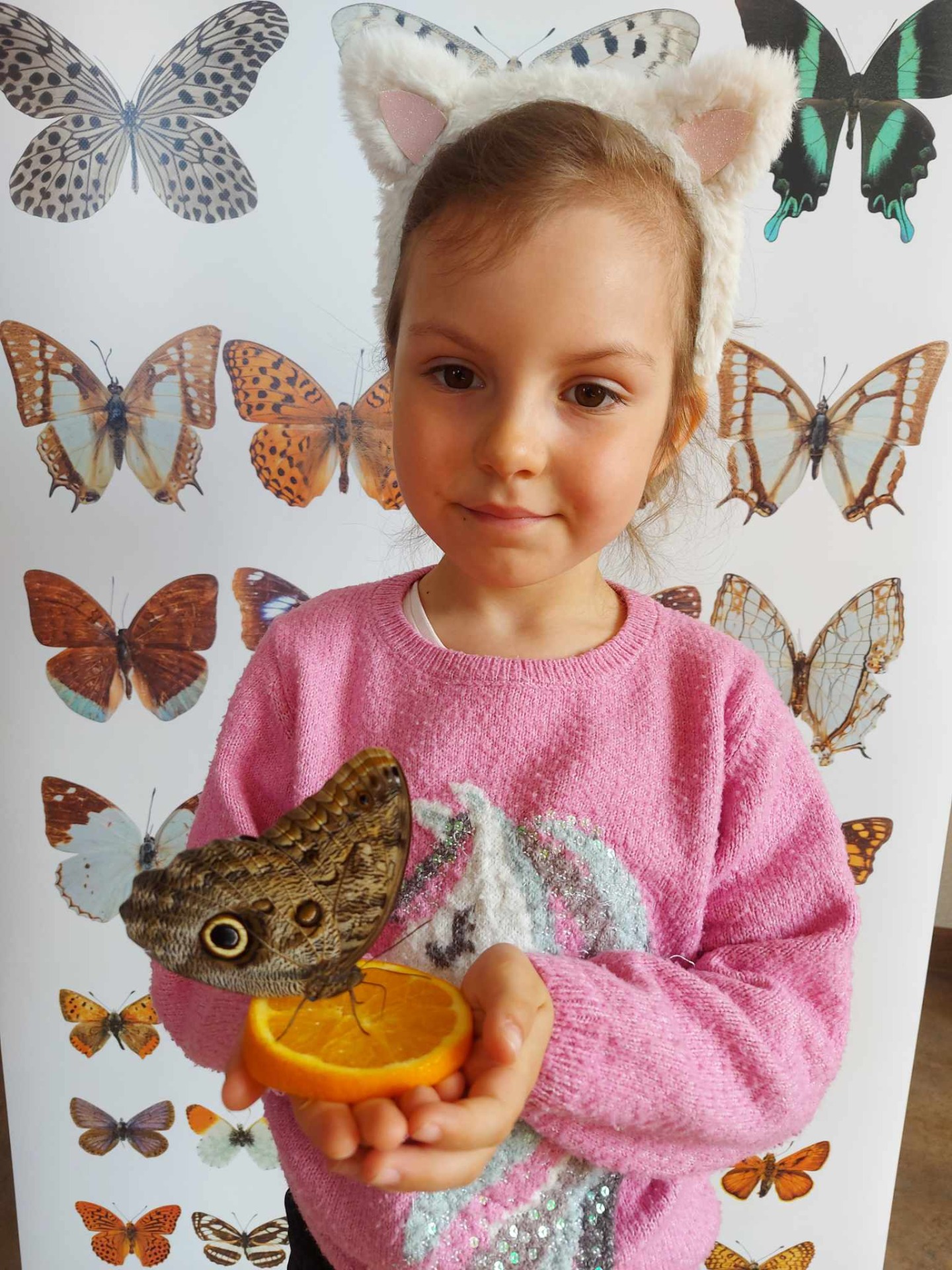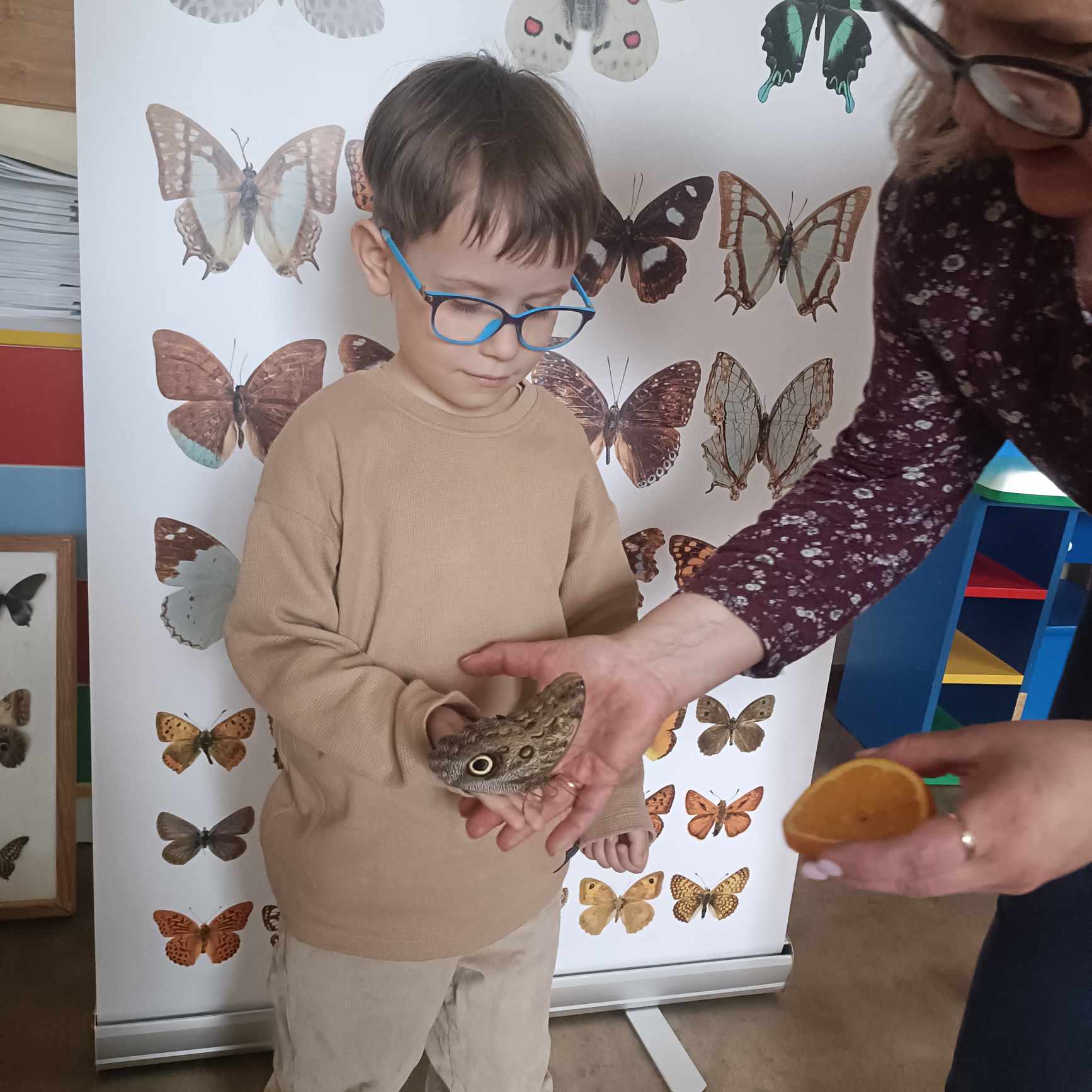 Podczas zajęć uczestnicy mogli z bliska podziwiać motyle, poznając ich różnorodność oraz cykl życia. Dzieci miały także możliwość obserwacji przez mikroskop, co pozwoliło im dostrzec detale, których nie widać gołym okiem. Warsztaty wzbogaciły również piękne ilustracje oraz eksponaty, a prowadząca w ciekawy sposób opowiadała o znaczeniu motyli w przyrodzie.