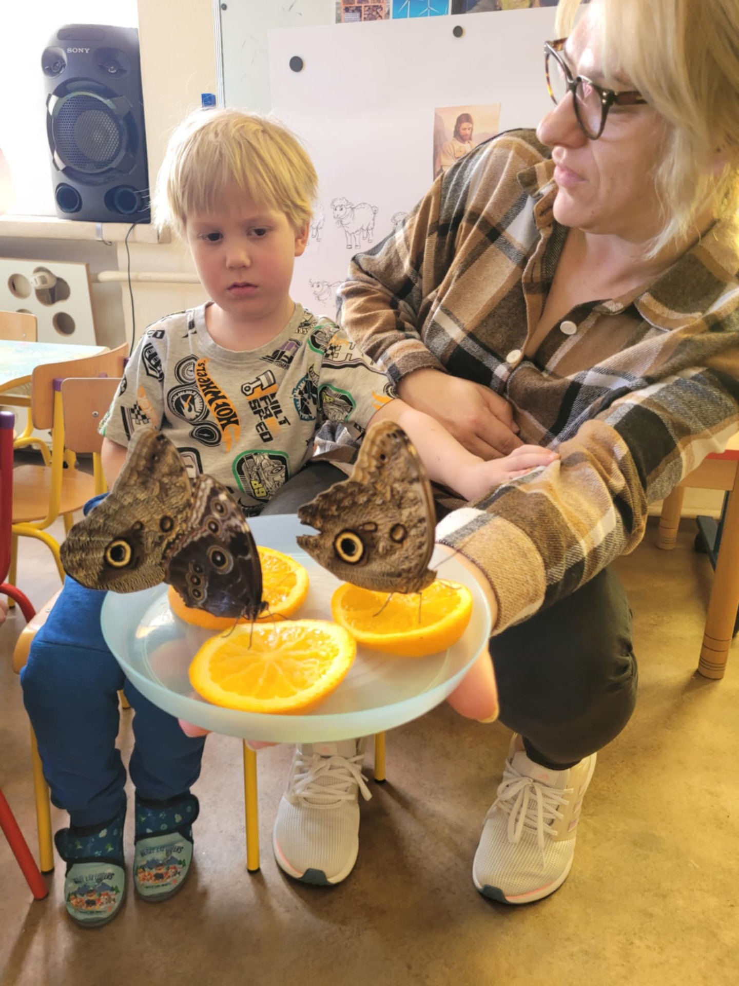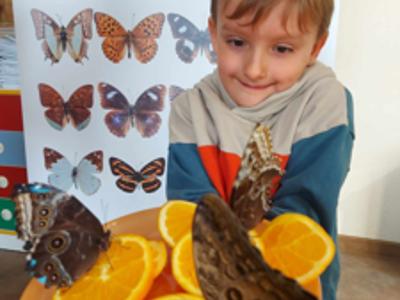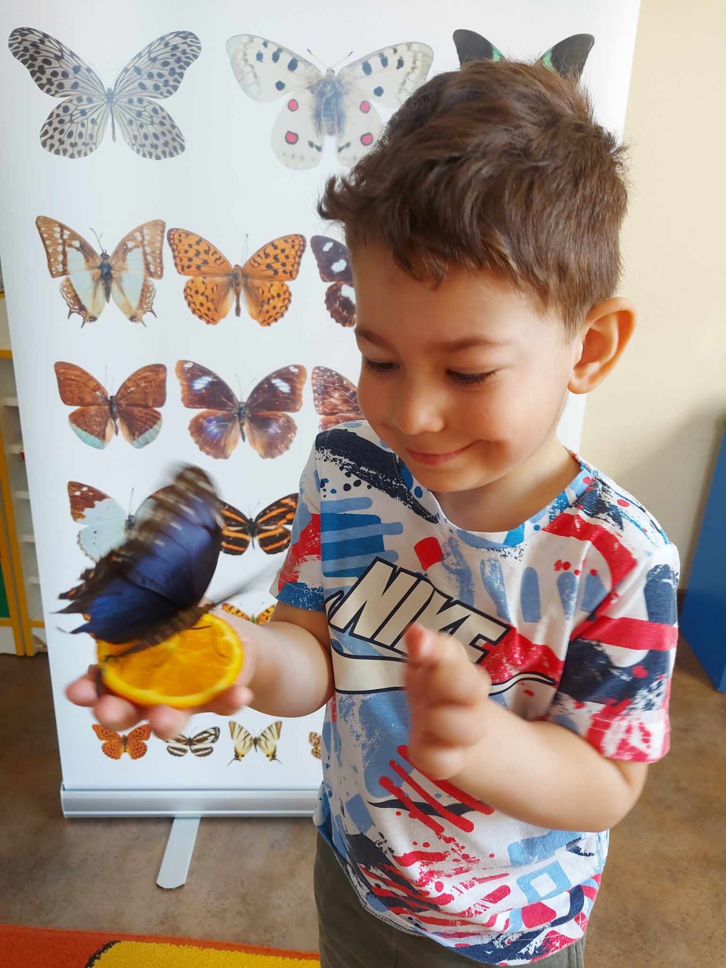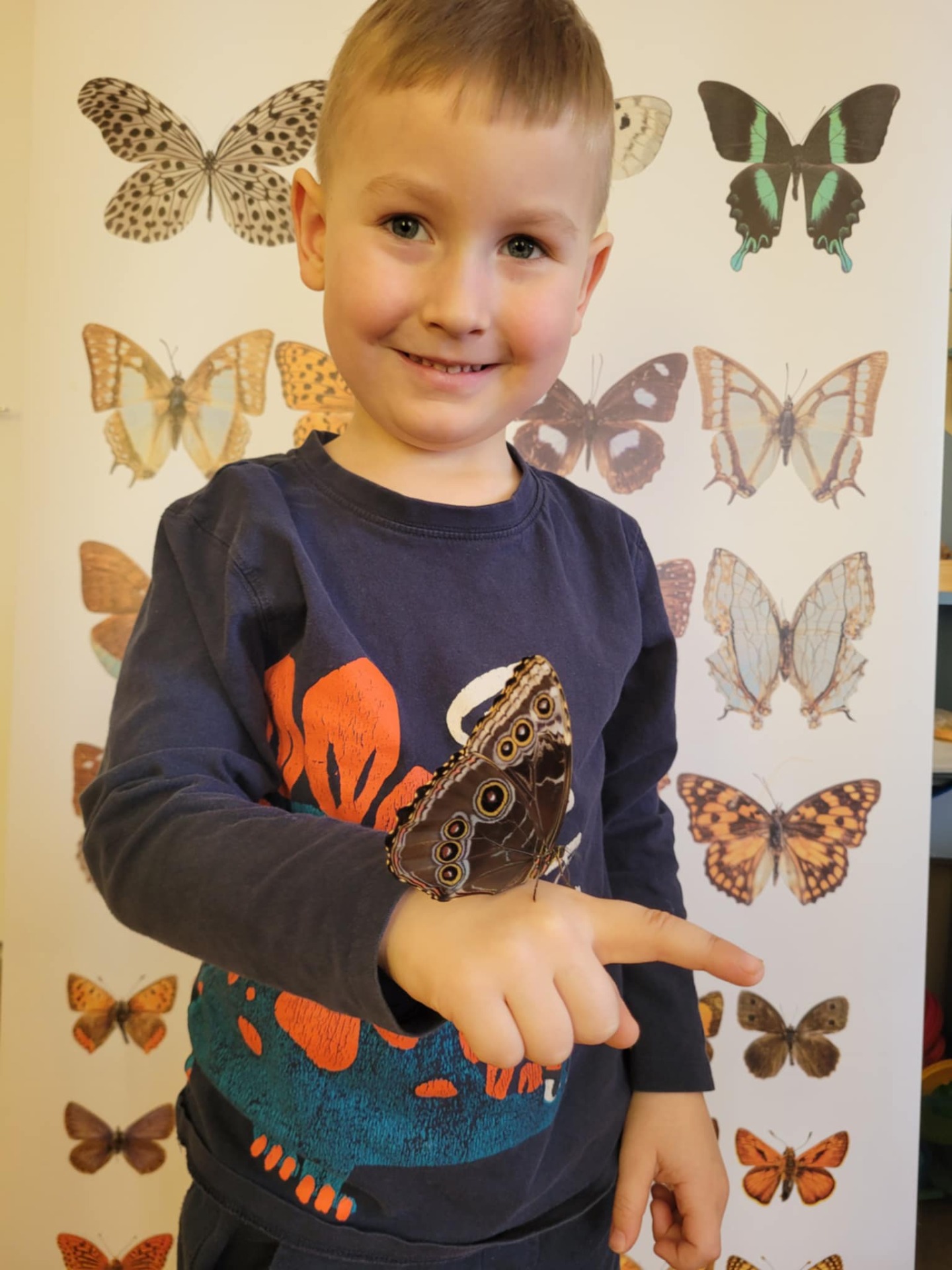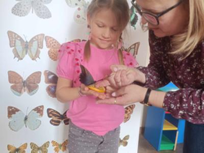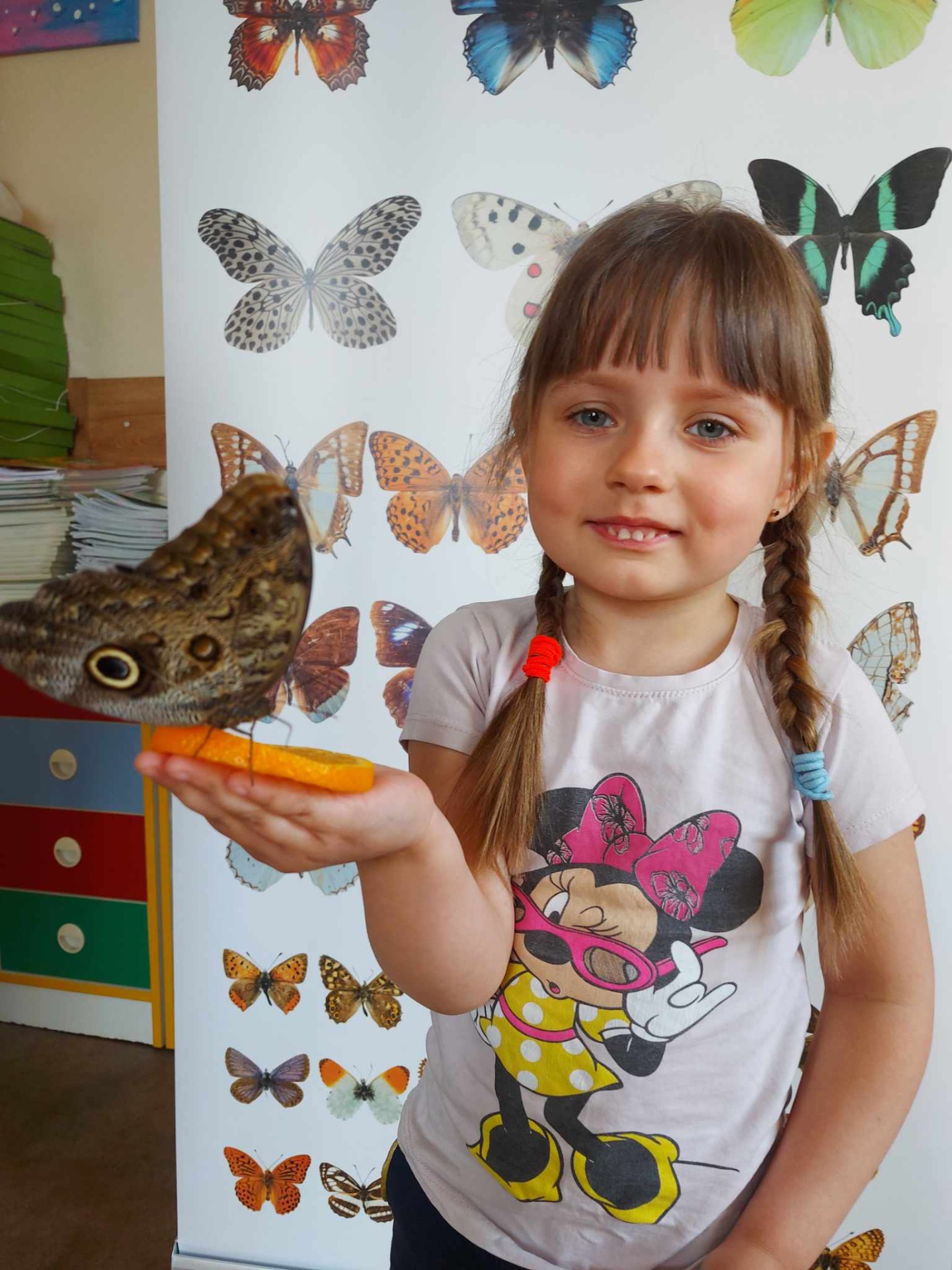 Podczas zajęć uczestnicy mogli z bliska podziwiać motyle, poznając ich różnorodność oraz cykl życia. Dzieci miały także możliwość obserwacji przez mikroskop, co pozwoliło im dostrzec detale, których nie widać gołym okiem. Warsztaty wzbogaciły również piękne ilustracje oraz eksponaty, a prowadząca w ciekawy sposób opowiadała o znaczeniu motyli w przyrodzie.